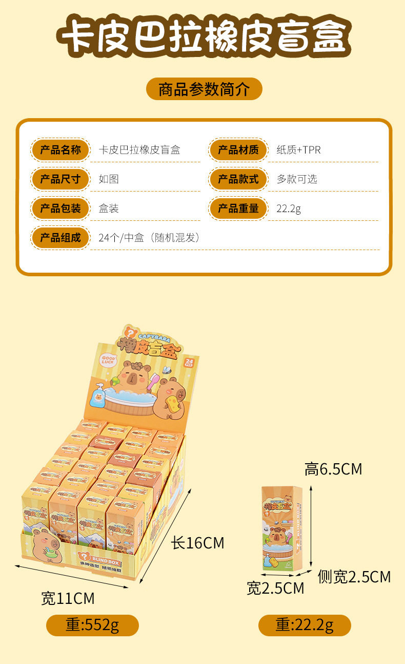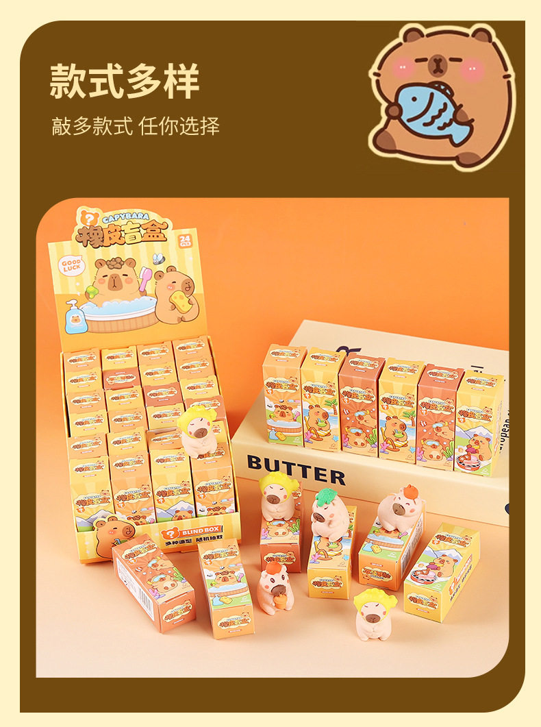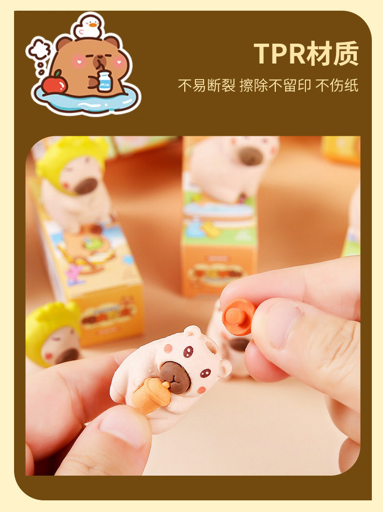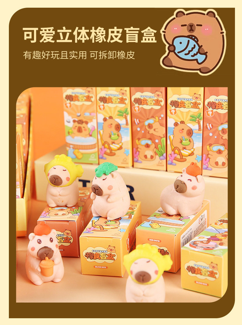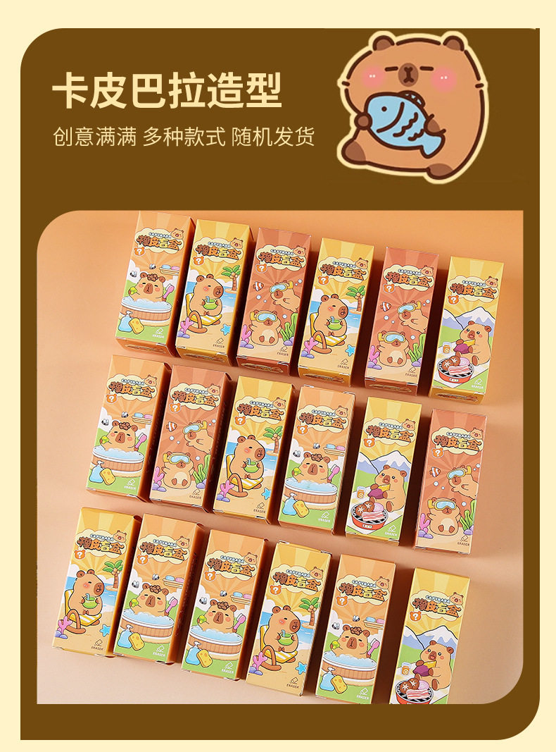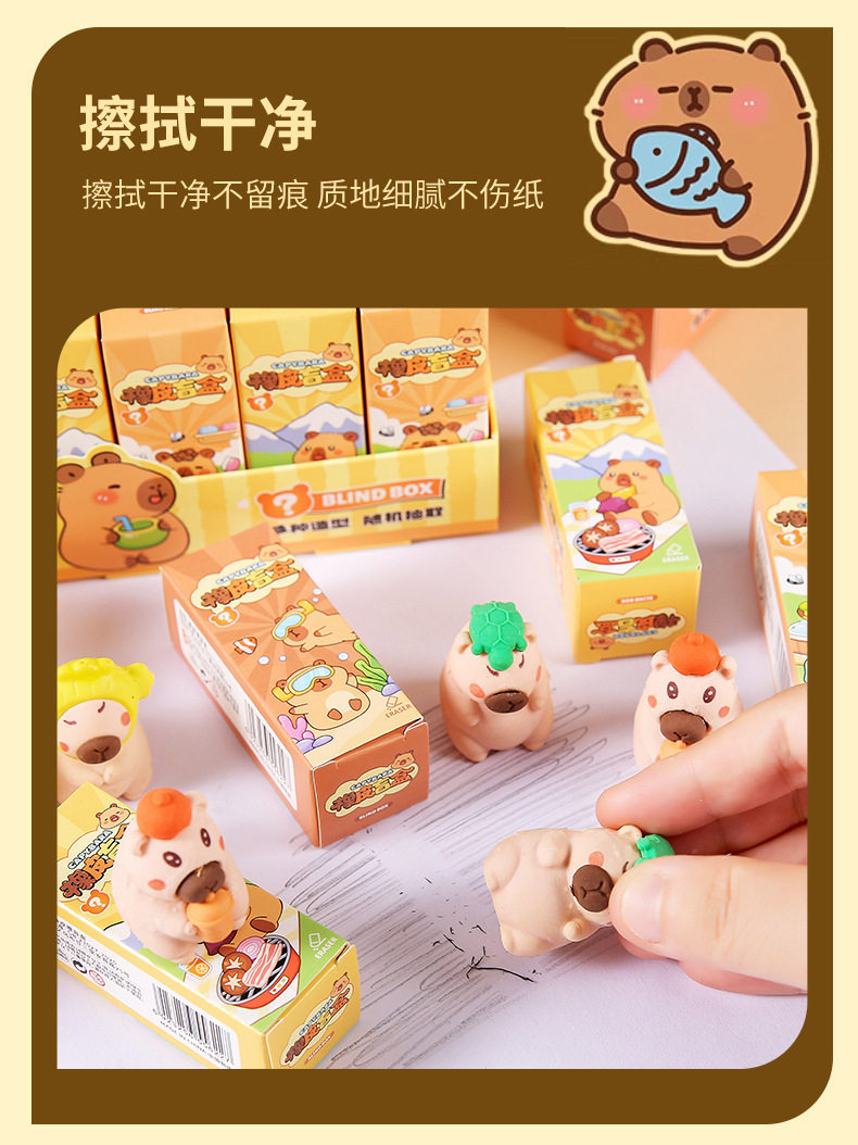 Kapibala Eraser Blind Box Children's Cartoon Capybara Eraser Primary School Students' Chip-Free Pencil Eraser Wholesale