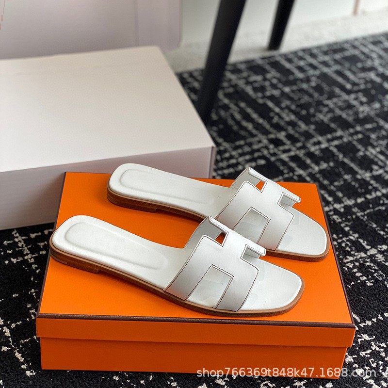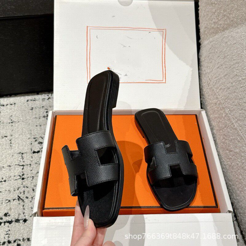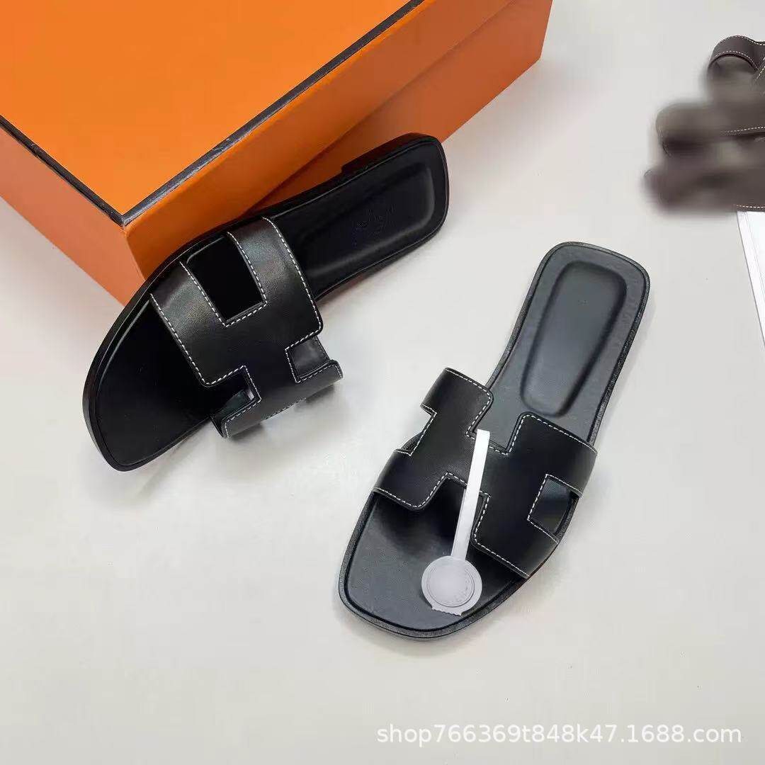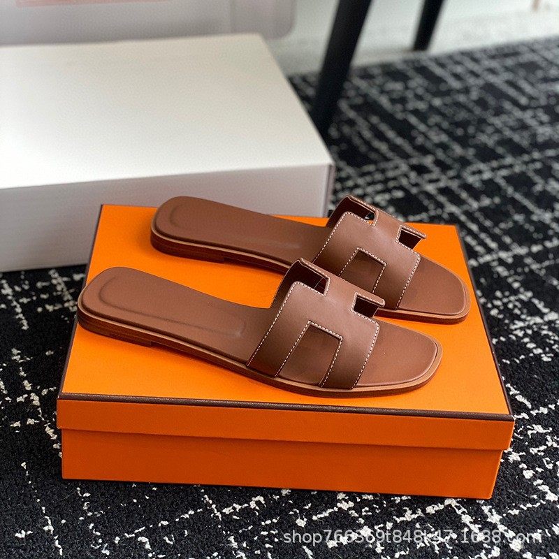 2025 New Top Ceiling Flash Sale Everything H Brand Girls' Palm Print Leather Square-Toe H-Shaped Beach Slippers Flat