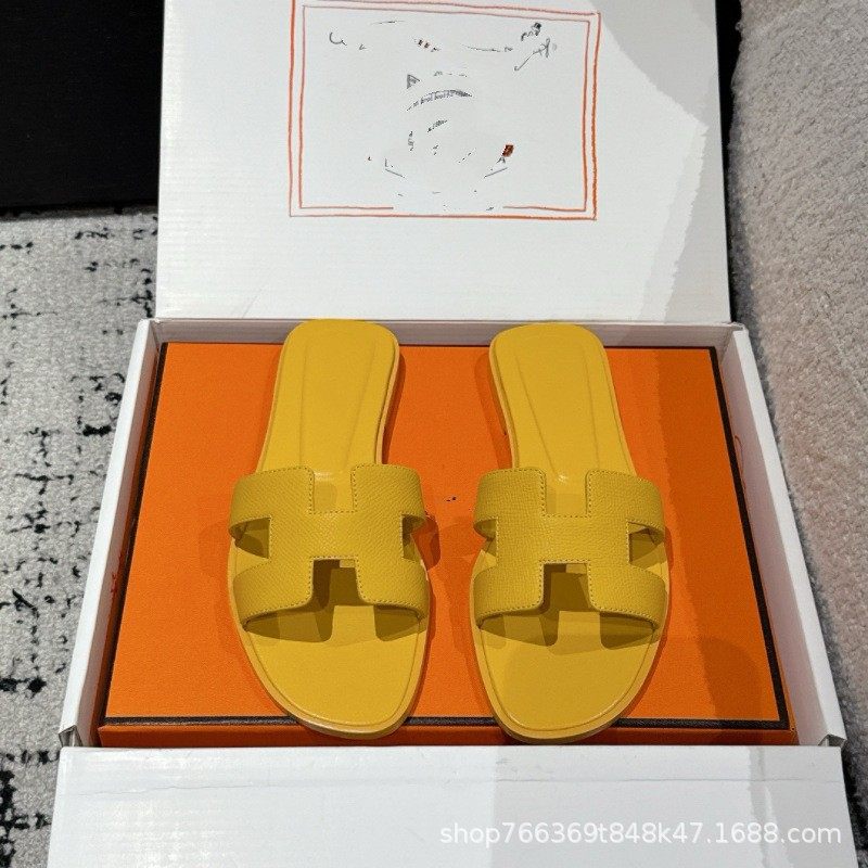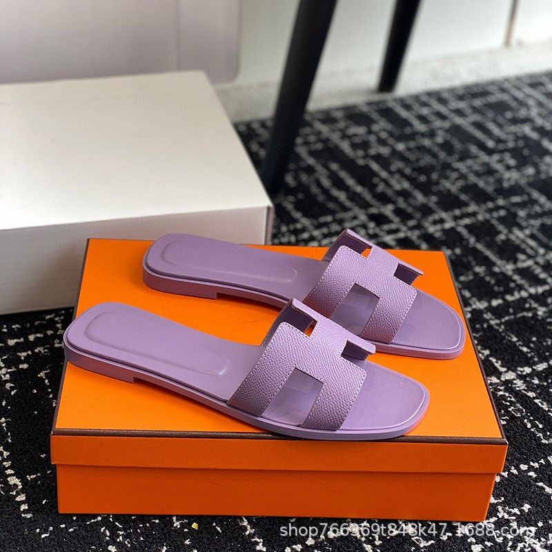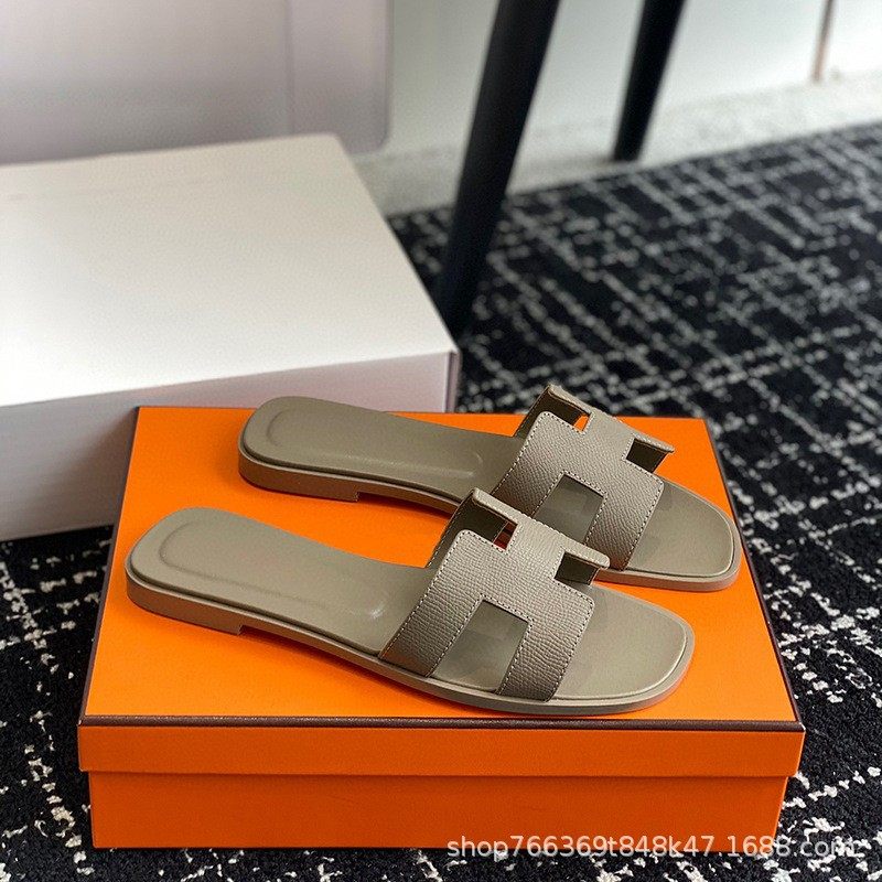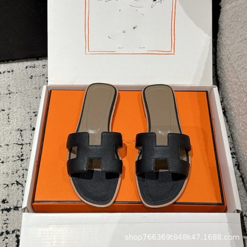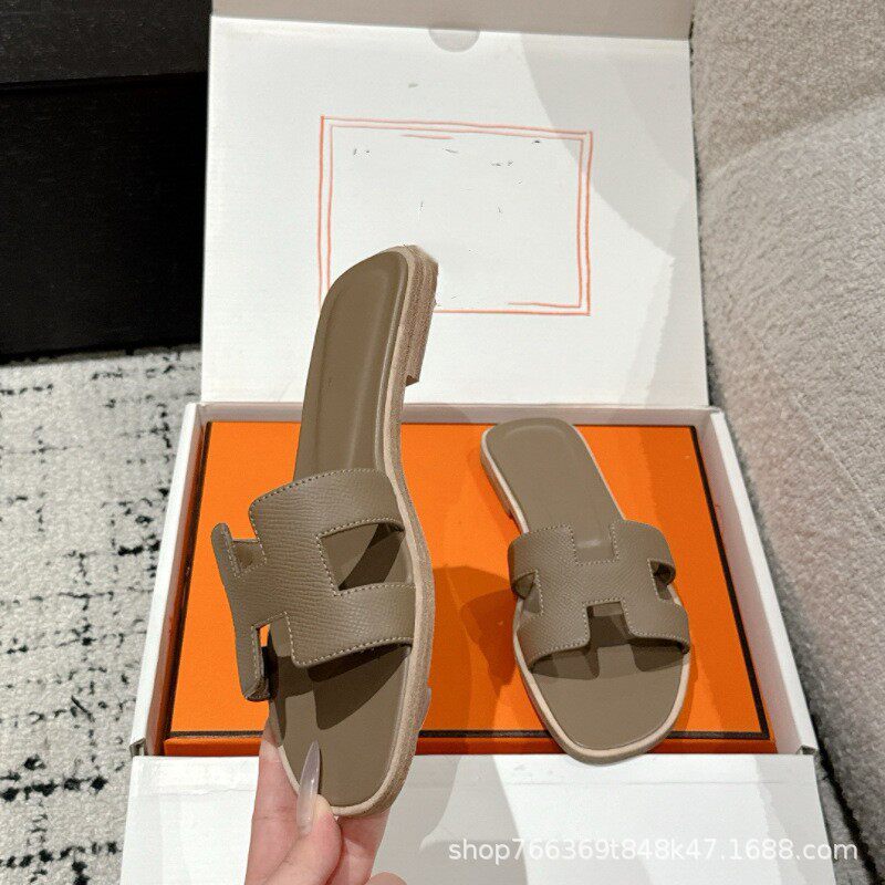 2025 New Top Ceiling Flash Sale Everything H Brand Girls' Palm Print Leather Square-Toe H-Shaped Beach Slippers Flat