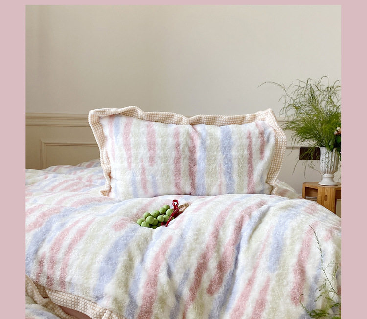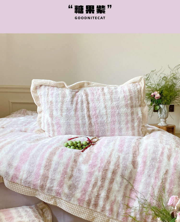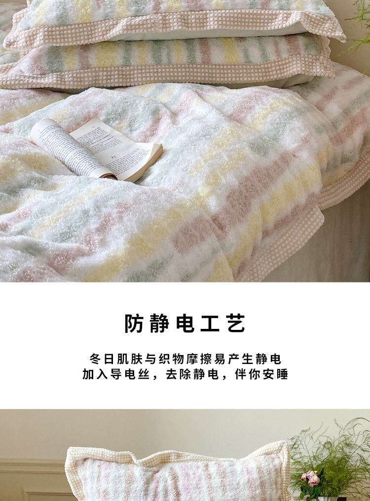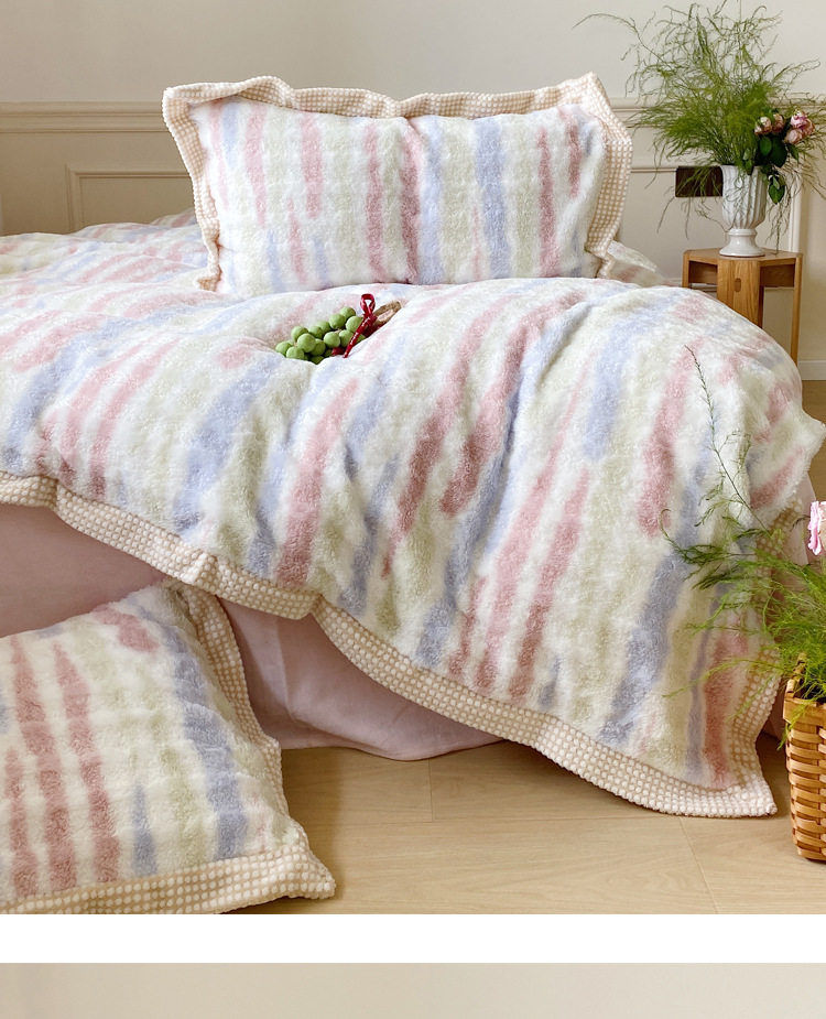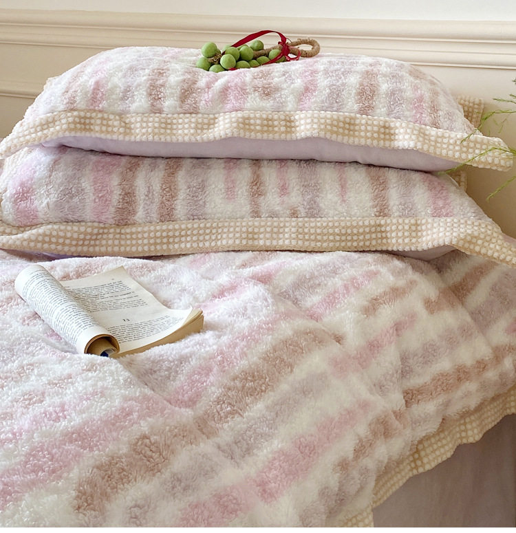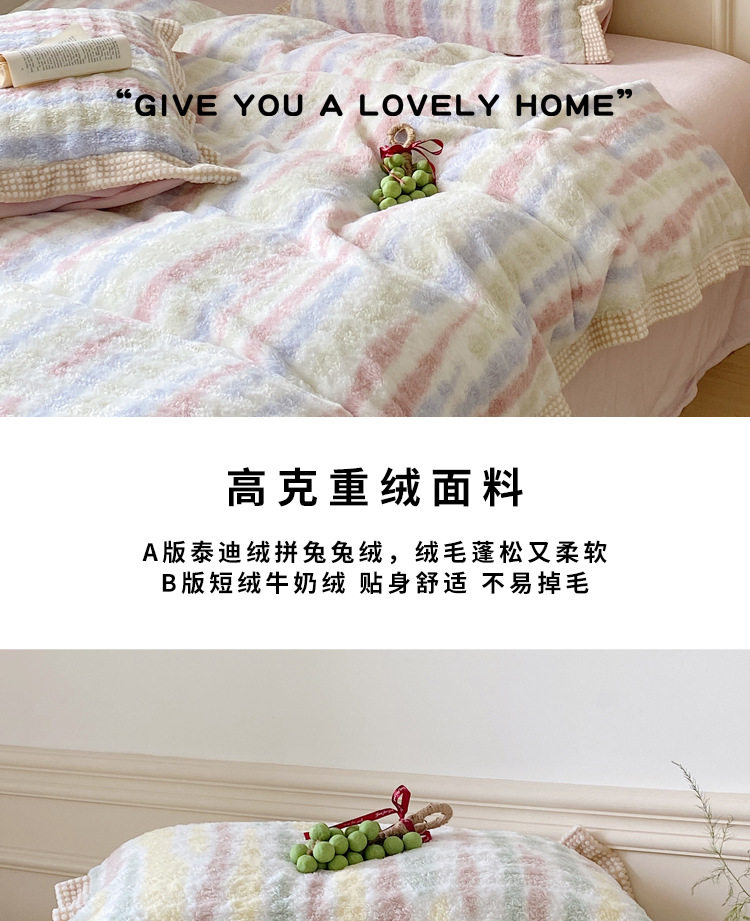 Ins Fresh Style A-Sided Teddy Fleece B-Sided Milk Fleece Thickened Warm Four-Piece Set Double-Sided Plush Three-Piece Set