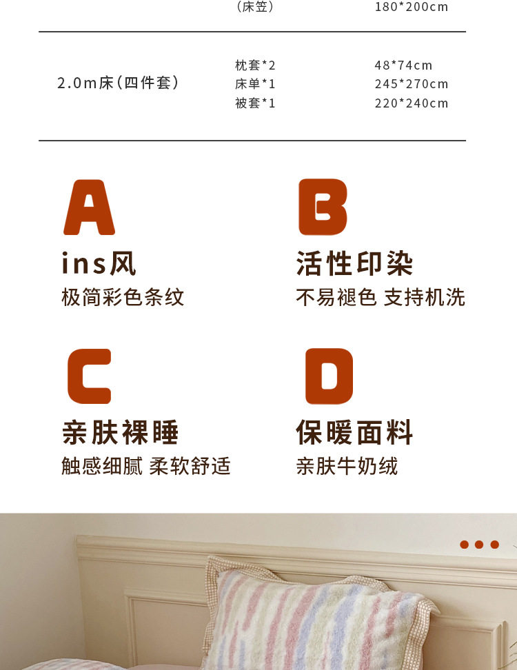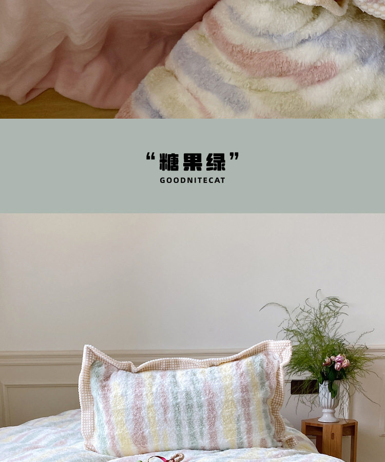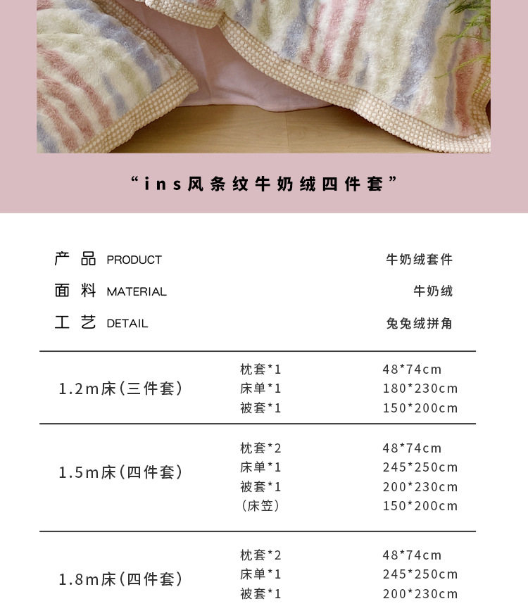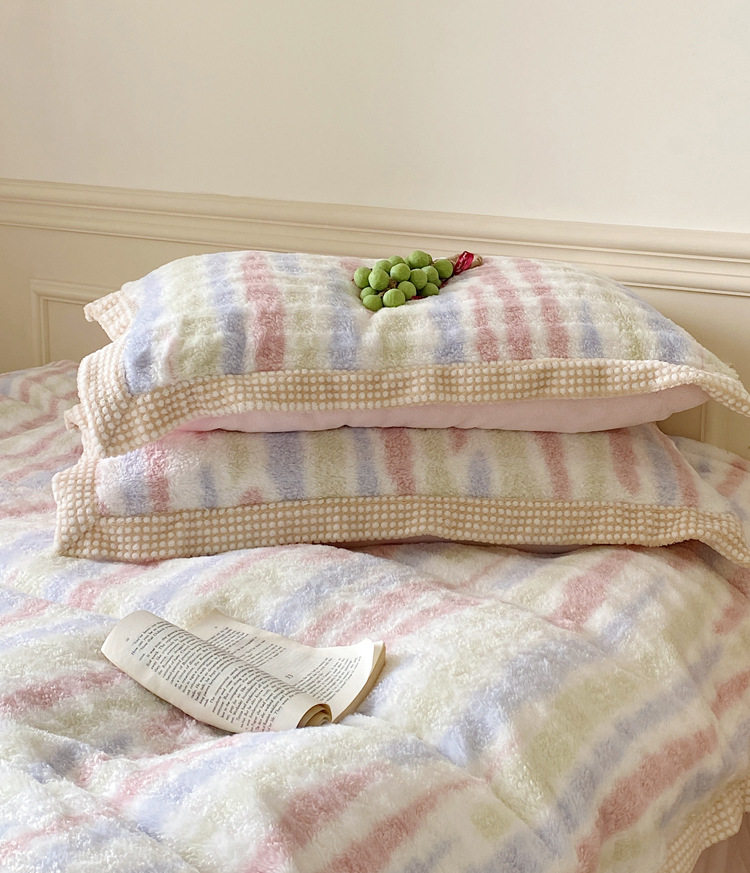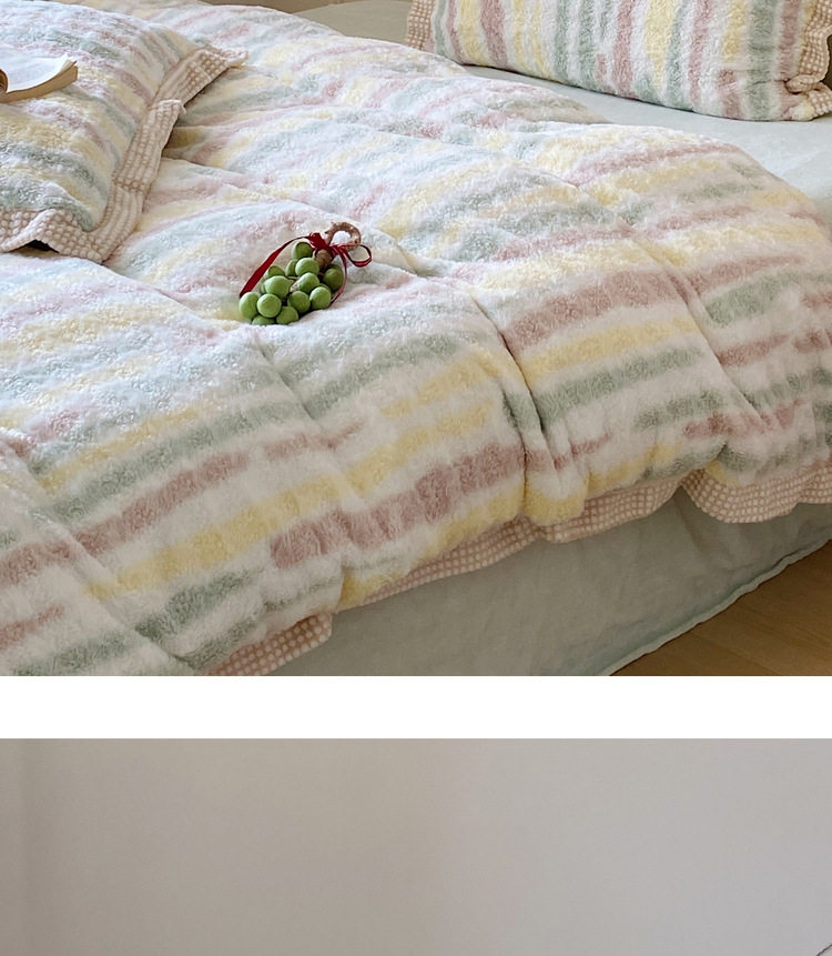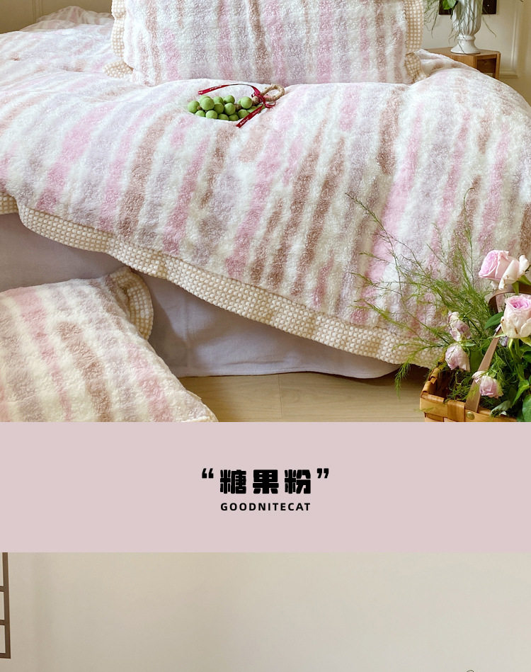 Ins Fresh Style A-Sided Teddy Fleece B-Sided Milk Fleece Thickened Warm Four-Piece Set Double-Sided Plush Three-Piece Set