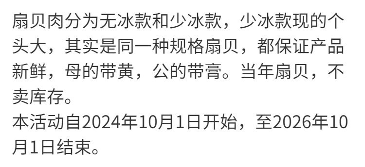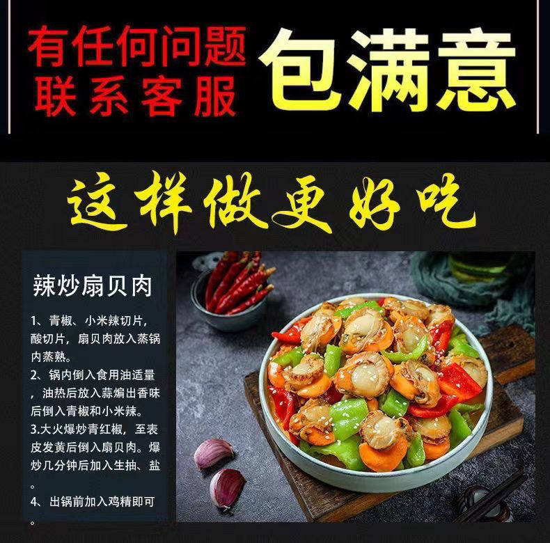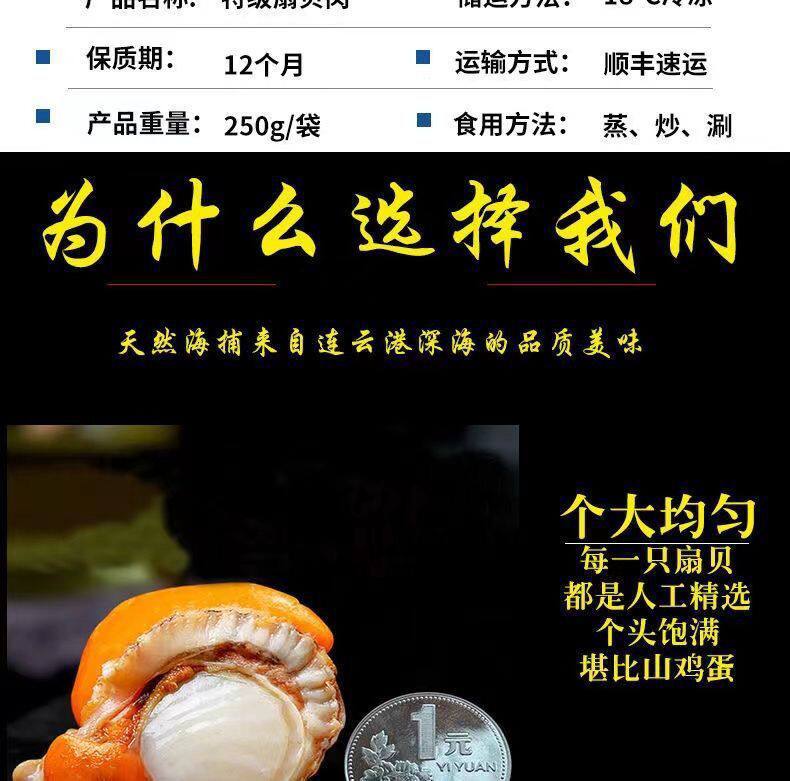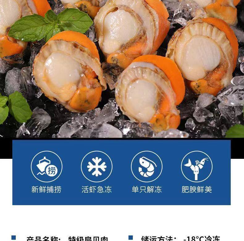 | Packaging specifications | Medium scallop meat 250g - low price,Large scallop meat 2.5kg [actual standard weight does not include box],Large scallop meat 1.5kg [weight does not include box],Medium scallop meat 2.5kg pack [actual standard weight does not include box],Medium scallop meat 1.5kg pack [actual standard weight does not include box],Extra large size 1.5kg [actual standard weight does not include box],Extra large size 2.5kg [actual standard weight does not include box] |