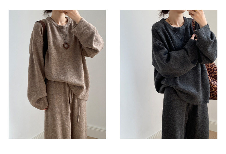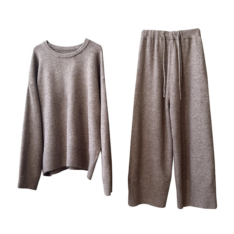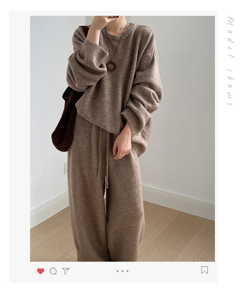 Yanshuang Soft and Waxy Loose Pullover Sweater Suit Pants Women's Autumn and Winter Korean Casual Knitted Pants Two-Piece Set P1015