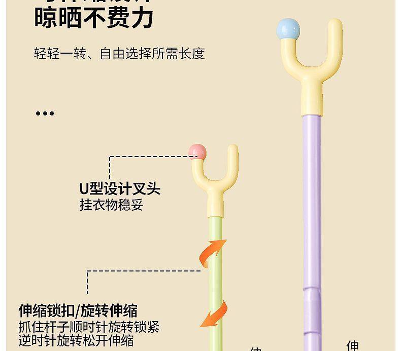 Household Retractable Clothes Rod, Personalized Creative Clothes Fork, Clothes Drying Rod, Balcony Clothes Rod