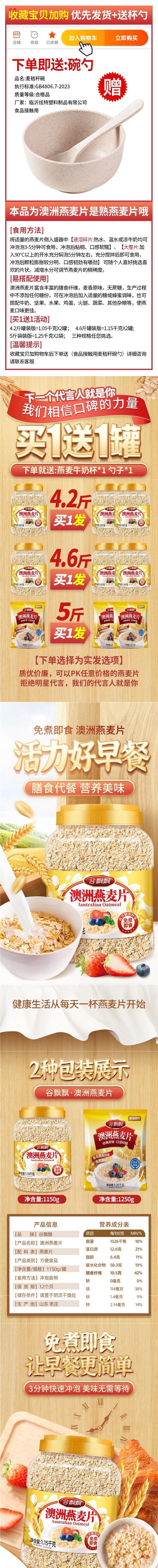 | Packaging specifications | Australian oats 1.25kg instant fragments 1 bag {soft and waxy taste, easy to brew} no gifts,Australian oats 1.25kg large whole pieces 1 bag {tasty and chewy, can be cooked into porridge and brewed} no gifts,Australian oats 2.1kg instant pieces 2 cans {soft and waxy taste, easy to brew} with free gifts,2 cans of australian oats 2.1kg large whole pieces {strong texture, can be cooked into porridge and brewed} with free gifts,1 can of instant pieces + 1 can of large whole pieces {australian oats 2.1kg combination pack} with free gifts,Australian oats 2.3kg instant pieces 2 cans {soft and waxy taste, easy to brew} with free gifts,2 cans of australian oats 2.3kg large whole pieces {strong texture, can be cooked into porridge and brewed} with free gifts,1 can of instant pieces + 1 can of large whole pieces {australian oats 2.3kg combination pack} with free gifts,Australian oats 2.5kg instant pieces 2 bags {soft and waxy taste, easy to brew} with free gifts,Australian oats 2.5kg large whole pieces 2 bags {tasty, can be cooked into porridge and brewed} with free gifts,1 bag of instant pieces + 1 bag of large whole pieces {australian oats 2.5kg combination bags} with free gifts |