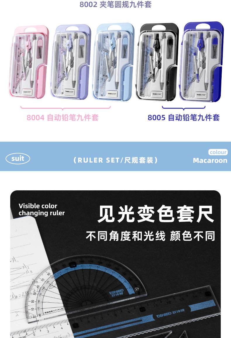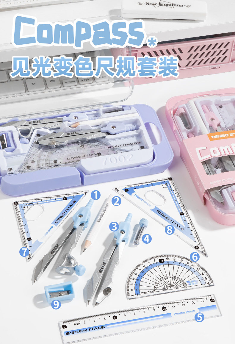 | Specifications | Purple [automatic pencil-ruler 8-piece set] discoloration upon exposure to light 8004,Blue [automatic pencil-ruler and gauge 8-piece set] photochromic 8004,Pink [automatic pencil-ruler 8-piece set] photochromic 8004 |