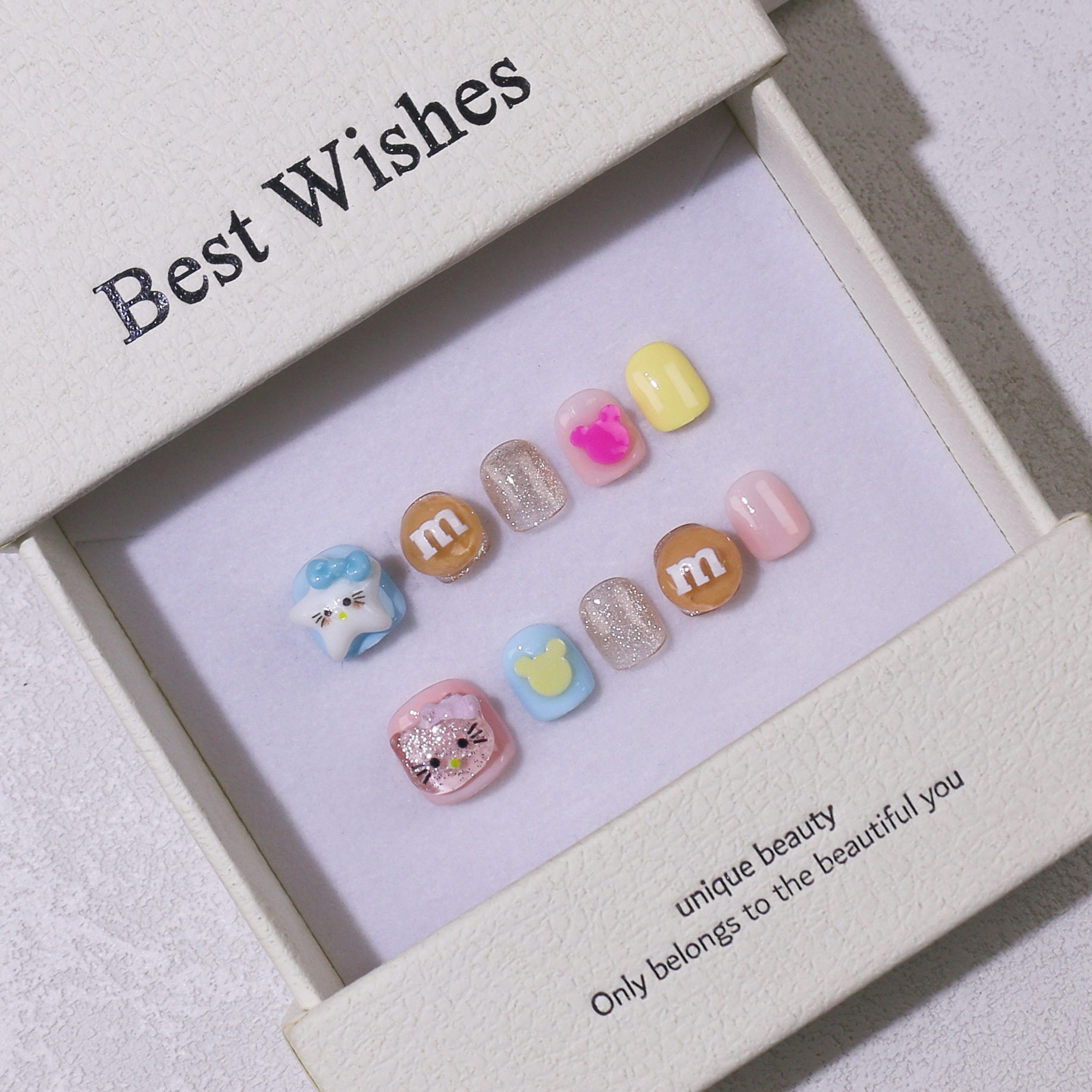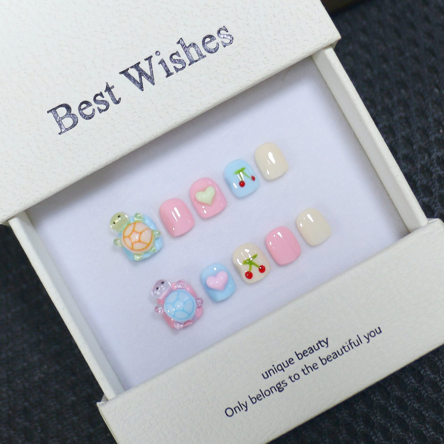 [Children's Nail Collection] New Pure Handmade Wearable Nails, Cute Cartoon Fake Nails, 3-12 Years Old, High-Quality Manicure