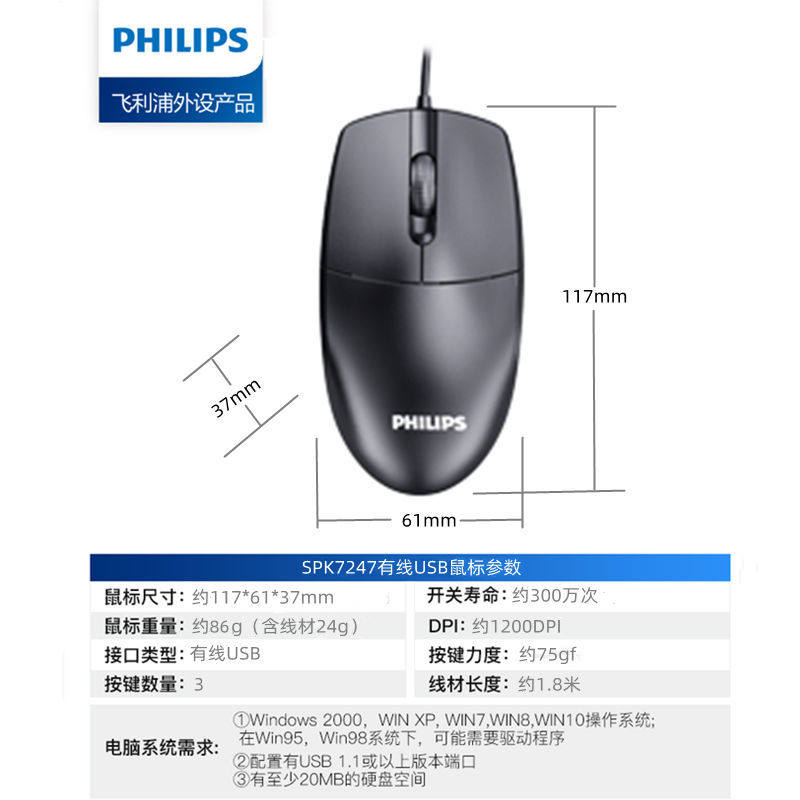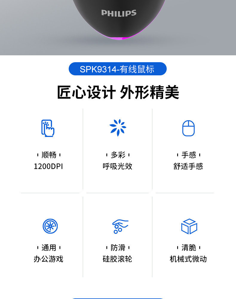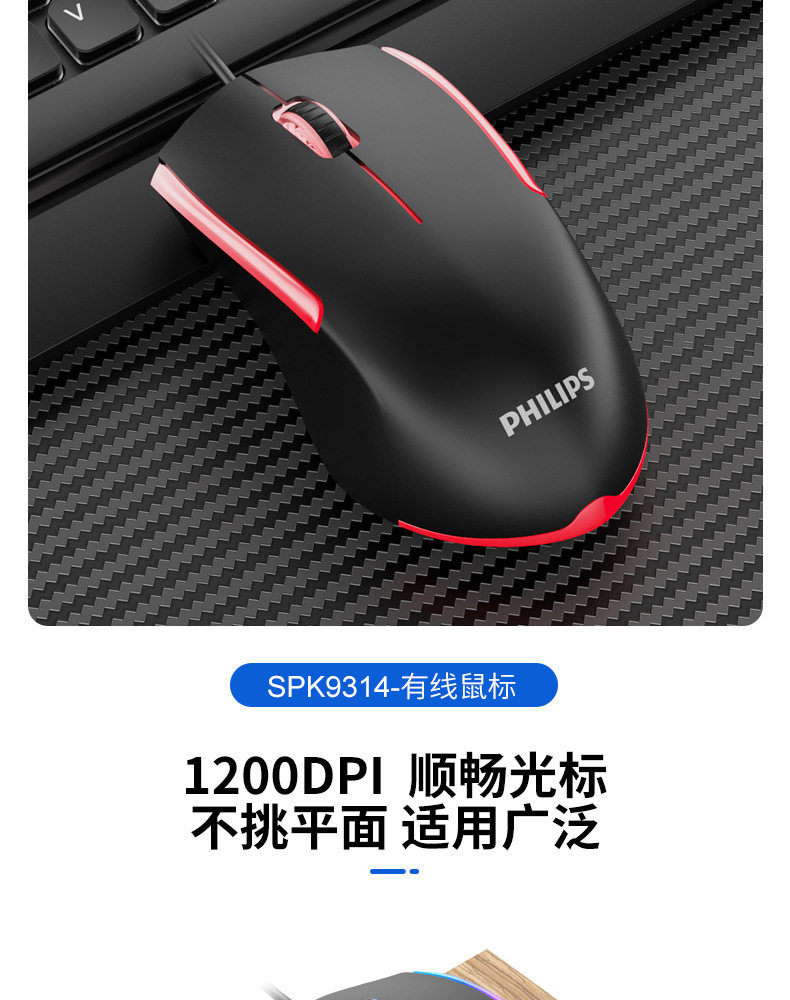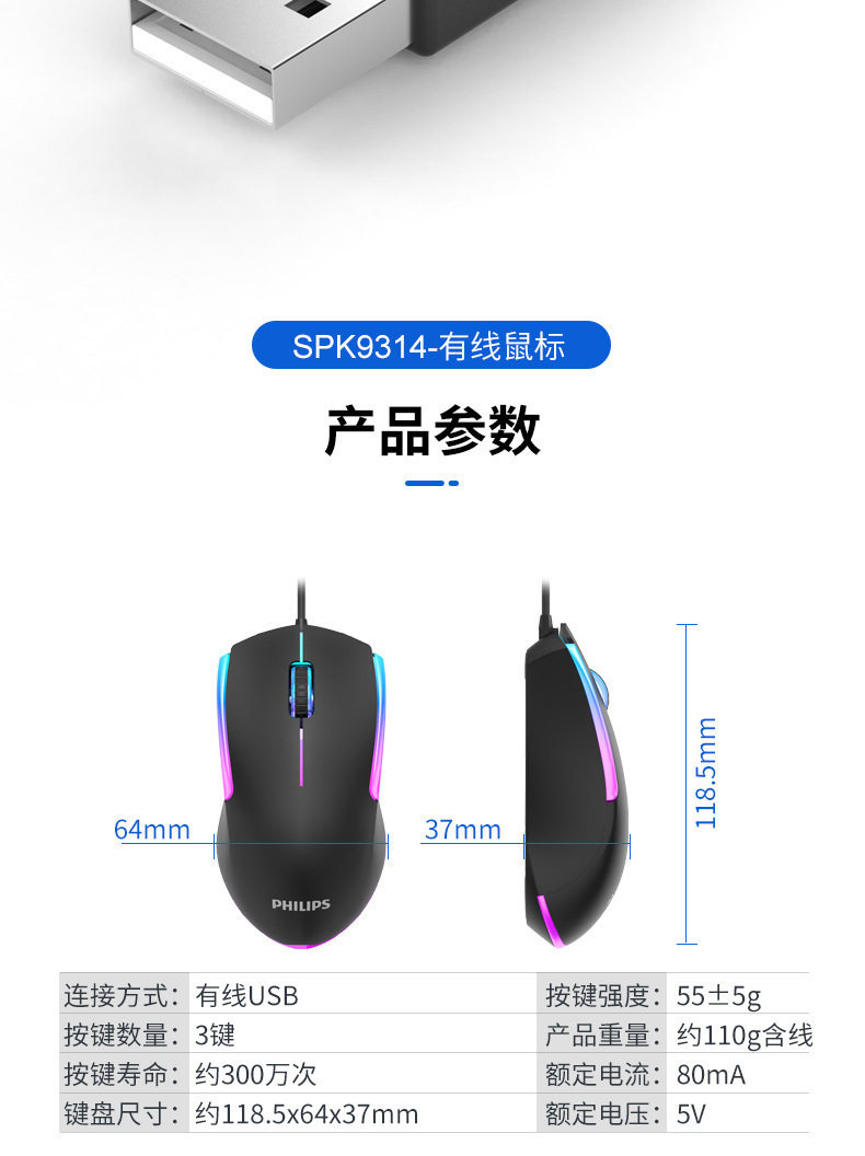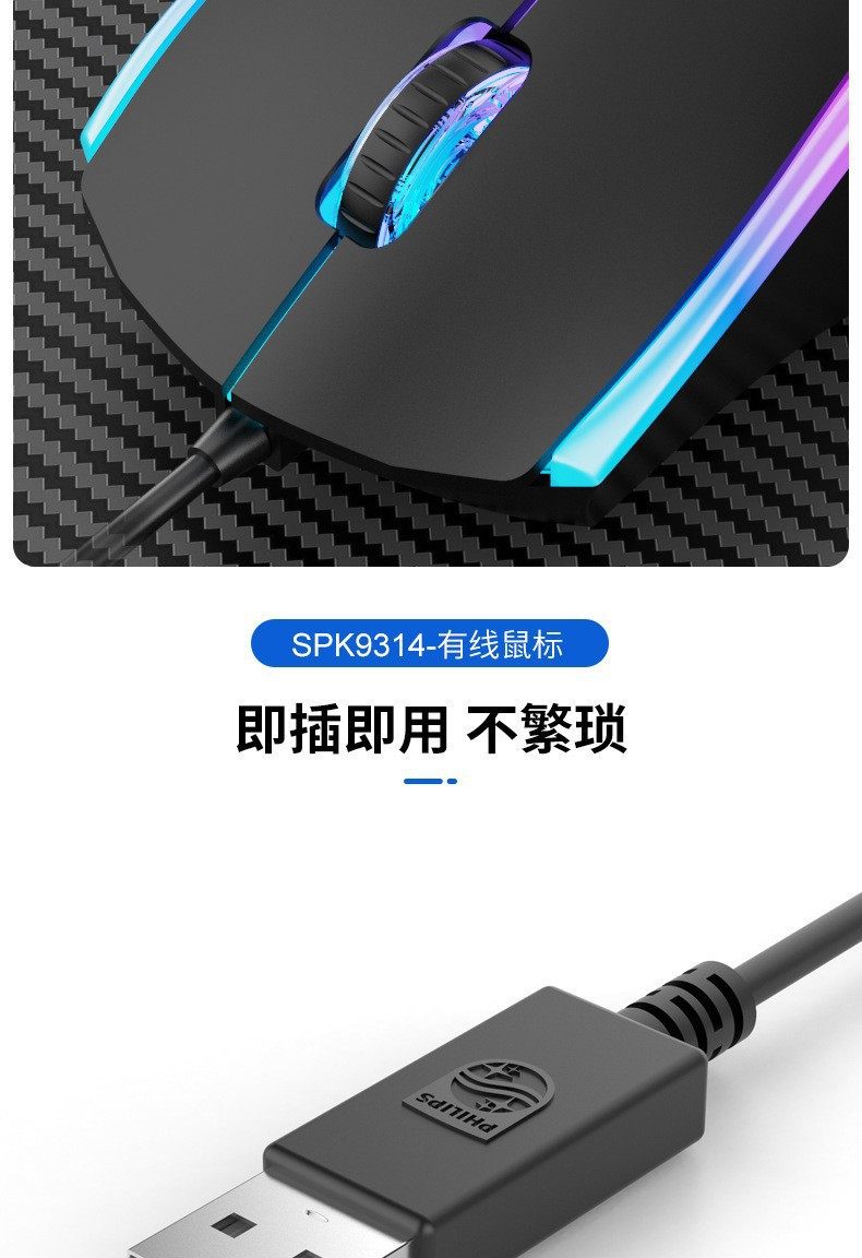Philips Spk9314 Business USB Wired Mouse for Computer, Laptop, Desktop All-In-One Machine, Luminous G314