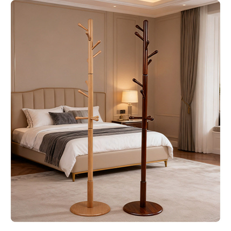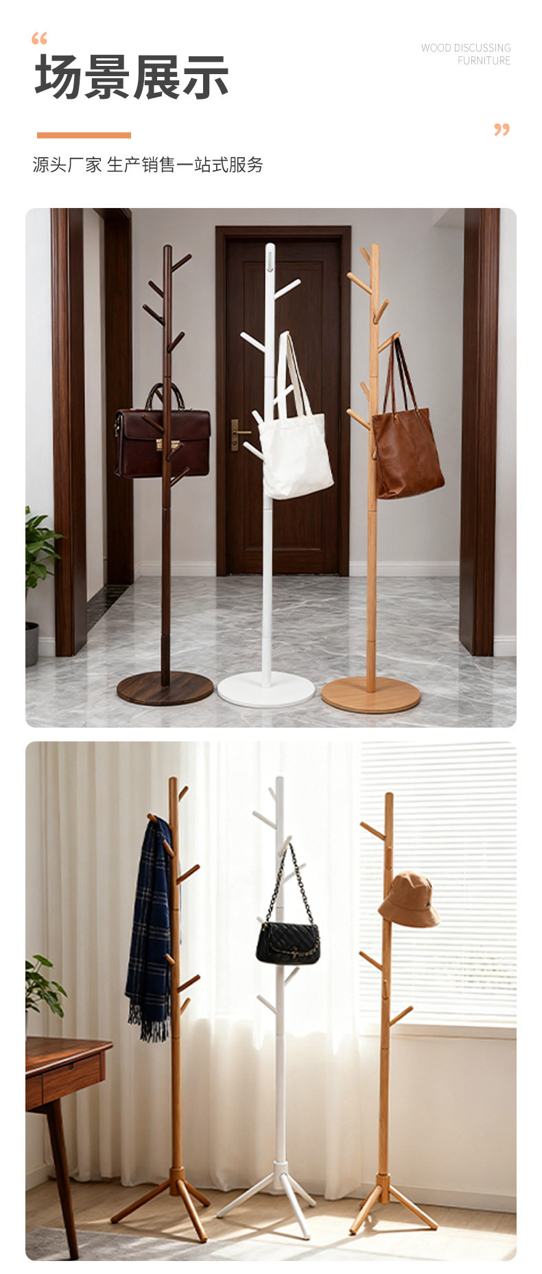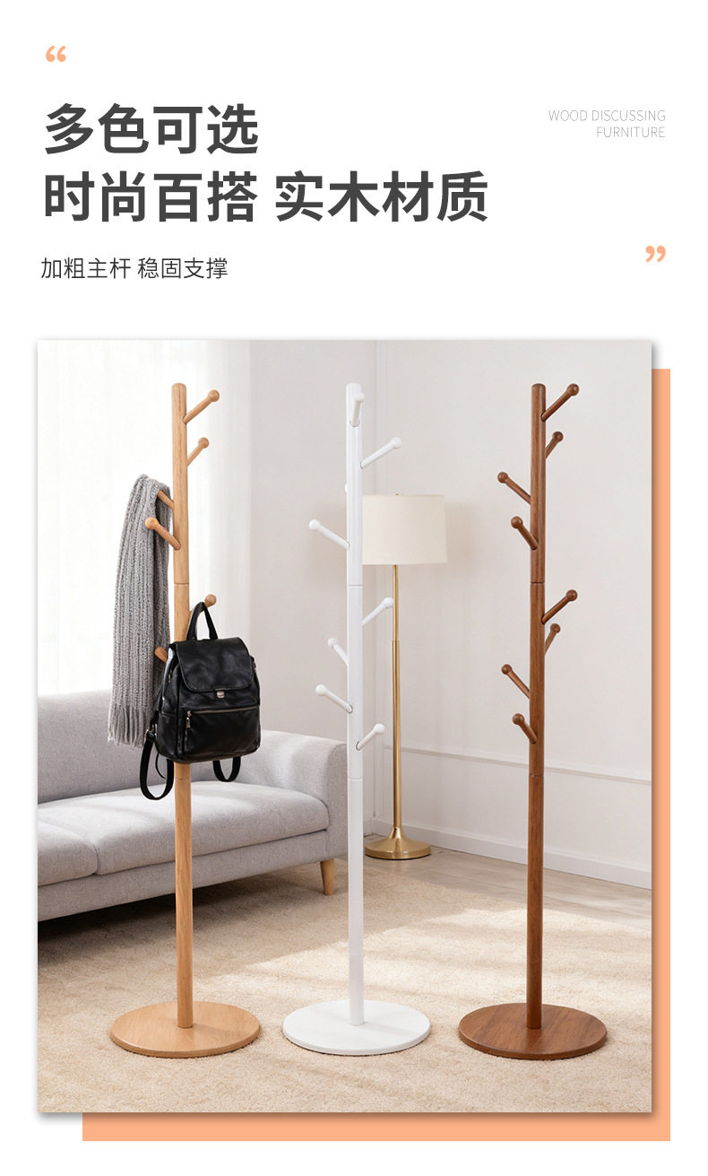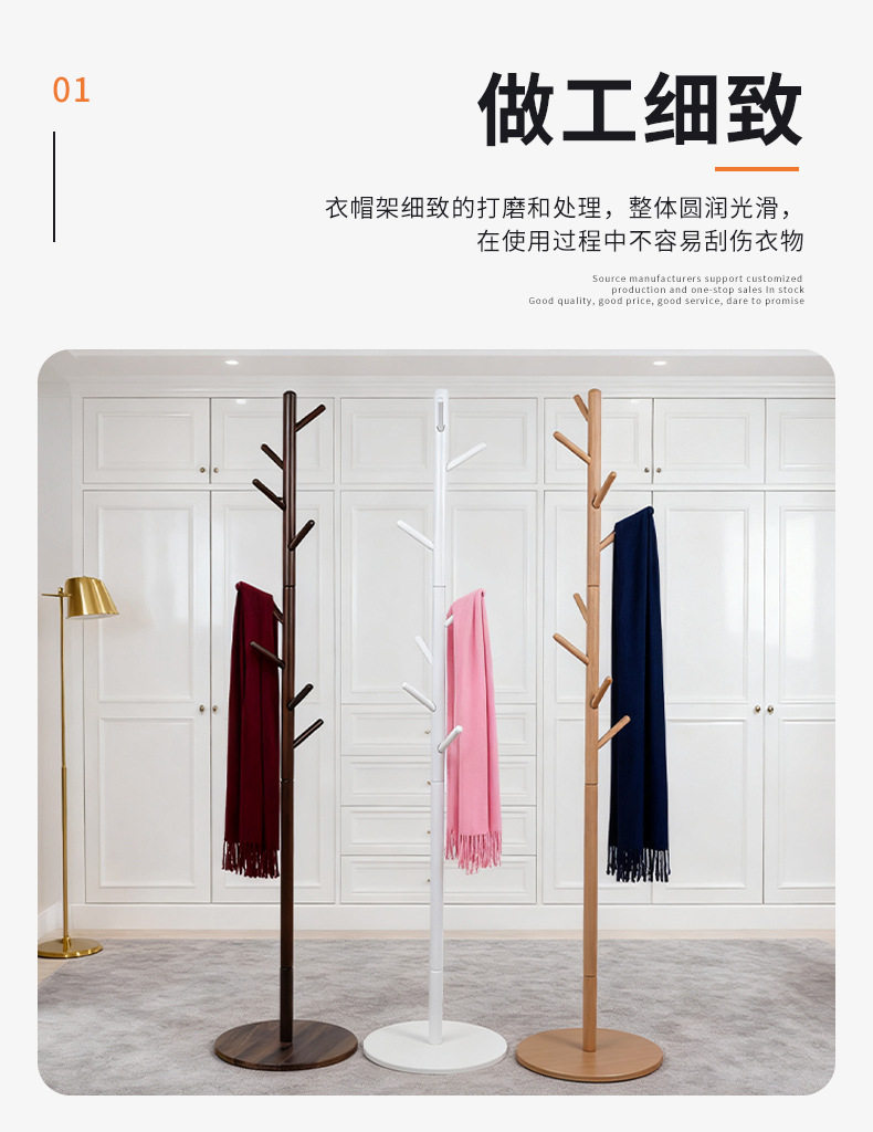 Multifunctional Vertical Simple Style Coat Rack Solid Wood Floor-Standing Coat Rack Bedroom Entrance Door Coat Rack Storage Rack Manufacturer