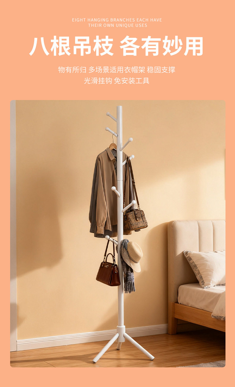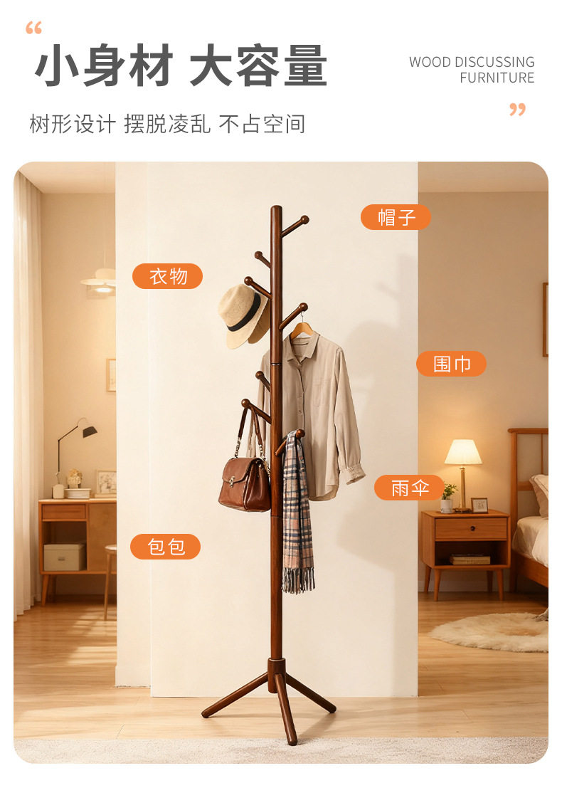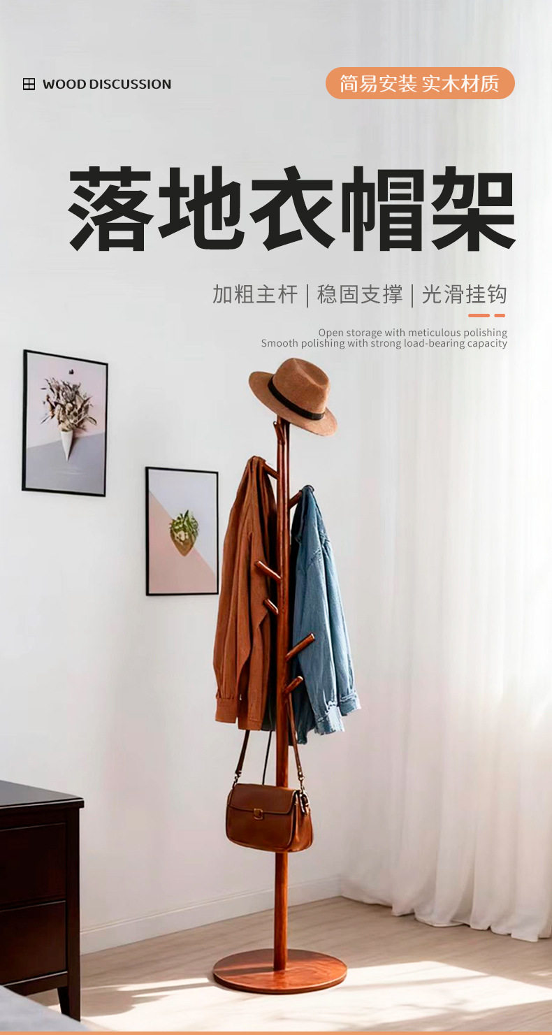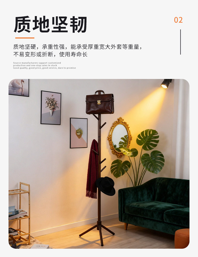 Multifunctional Vertical Simple Style Coat Rack Solid Wood Floor-Standing Coat Rack Bedroom Entrance Door Coat Rack Storage Rack Manufacturer