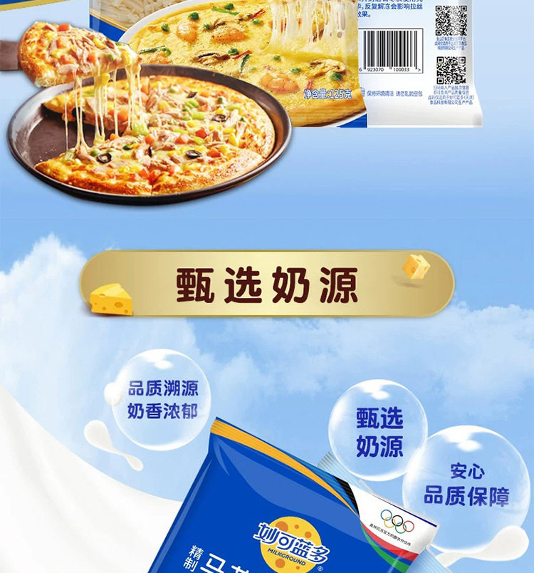 Lightning Specializes in Miao Ke Lan Duo Mozzarella Cheese Shreds 125g*10 Bags for Home Baking Ingredients