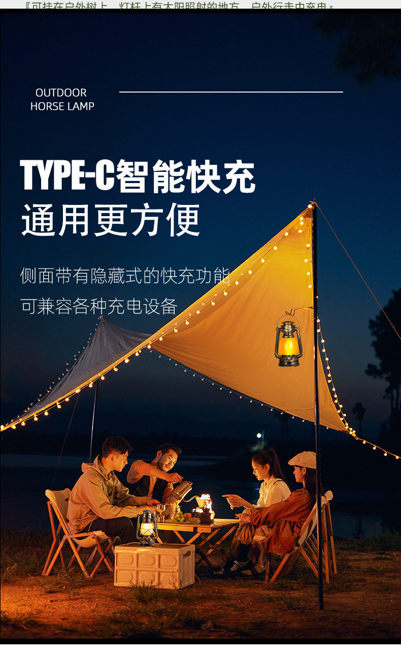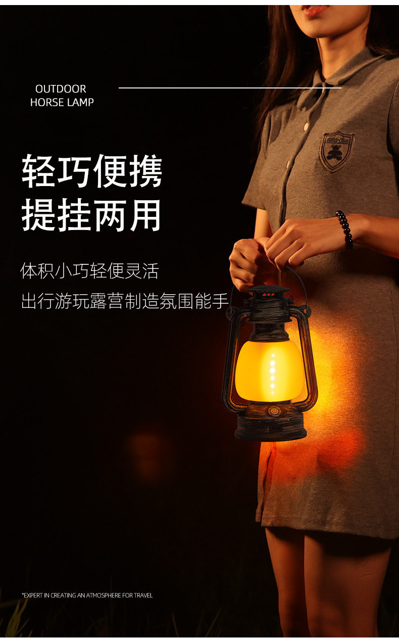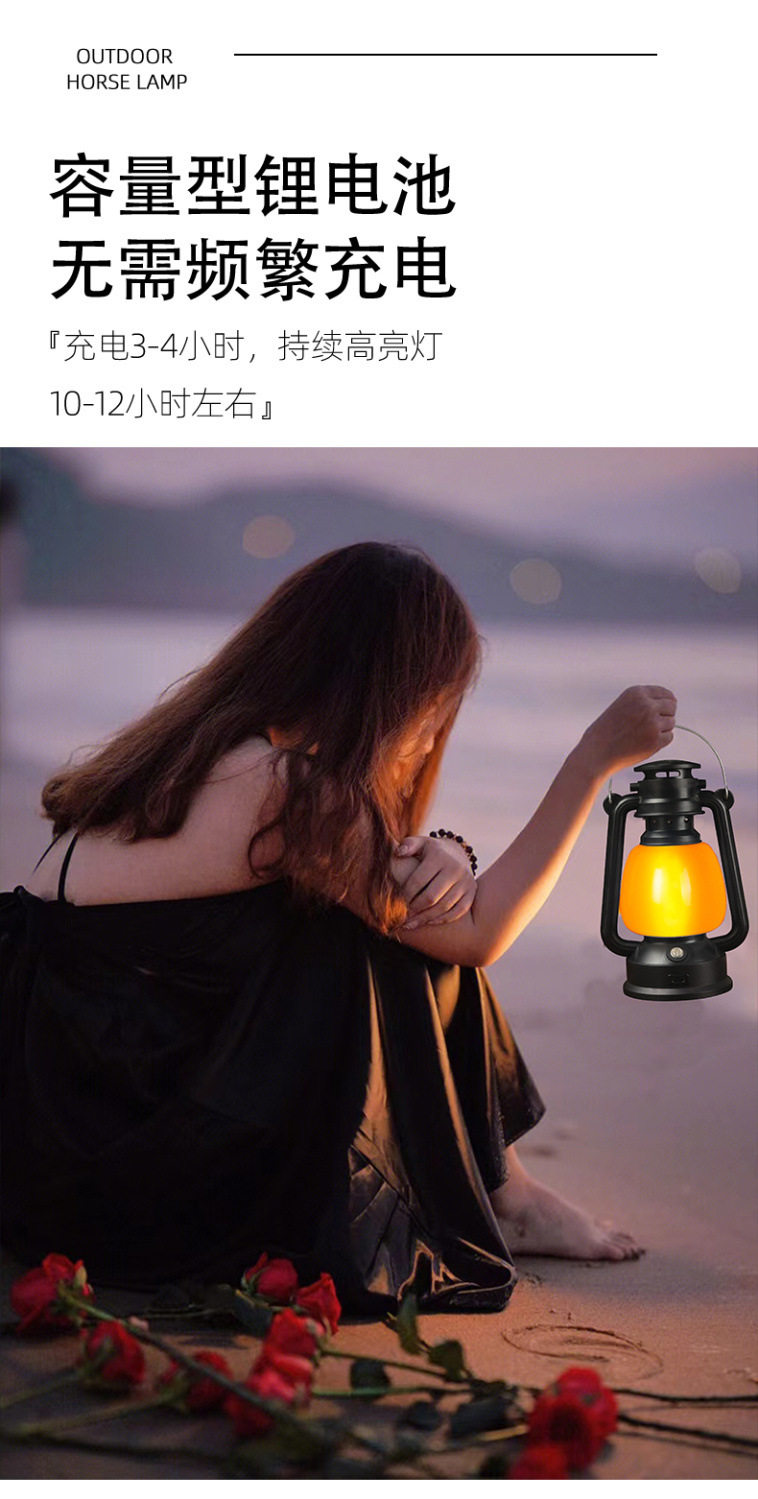 Camping Lantern Portable Retro Horse Lantern Rechargeable Outdoor Climbing Stall Indoor Night Light Tent Camp Atmosphere Lantern