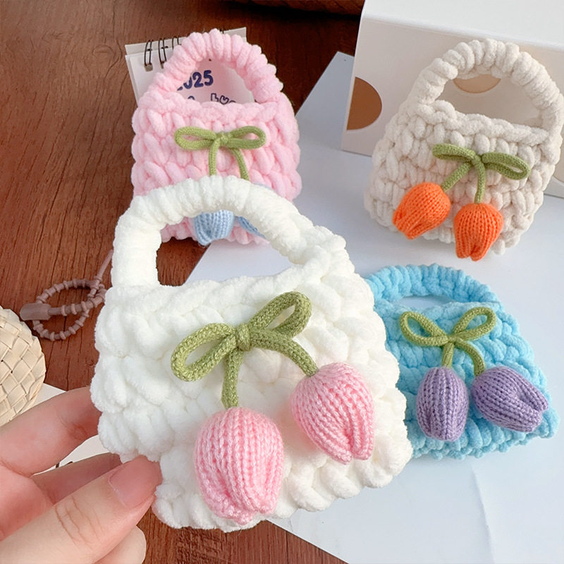 Cute Woven Flower Plush Female Mini Coin Purse Student School Bag Keychain Pendant Portable Headphone Bag