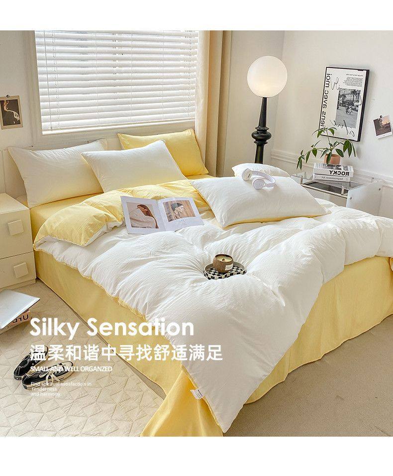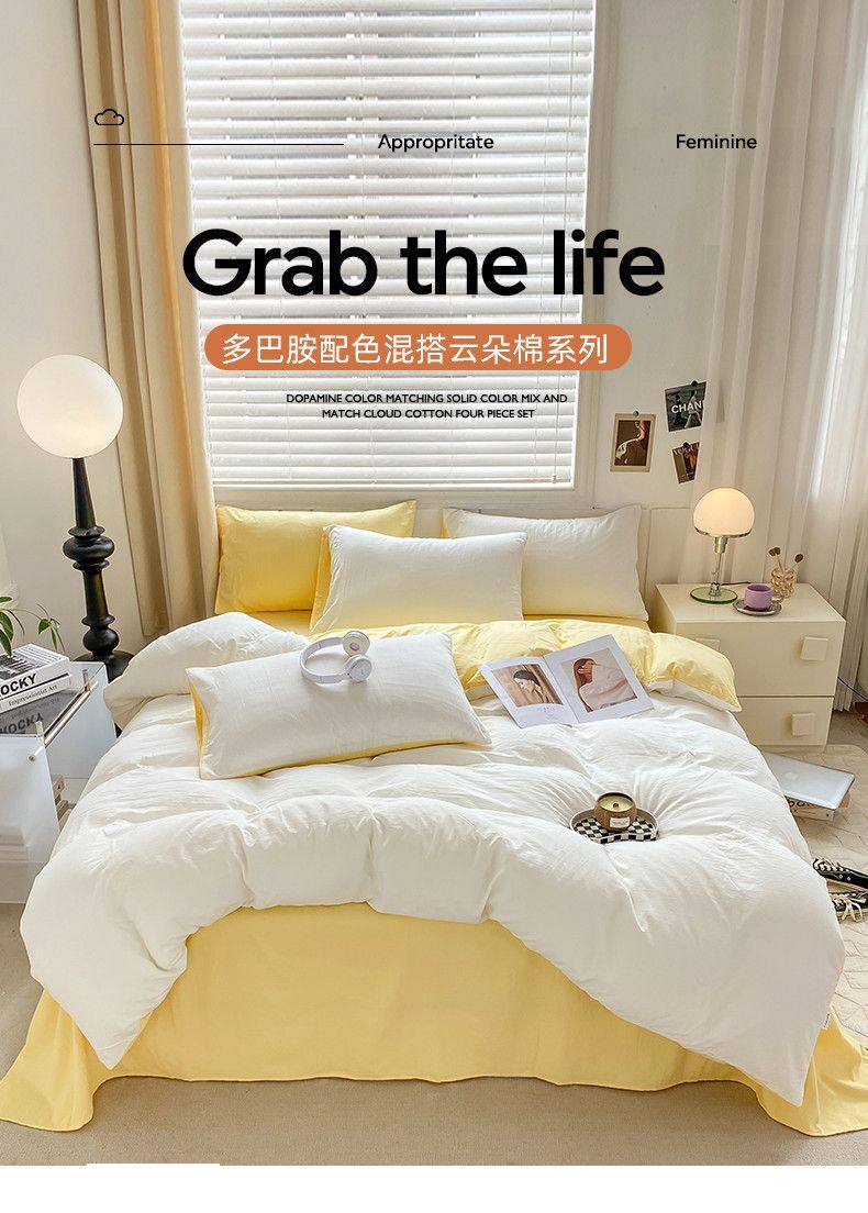 Maternity-Grade Ultra-Soft Cloud Washed Cotton Four-Piece Set, Thickened Bed Sheet, Dormitory Three-Piece Set, Bedding Set, Duvet Cover Factory