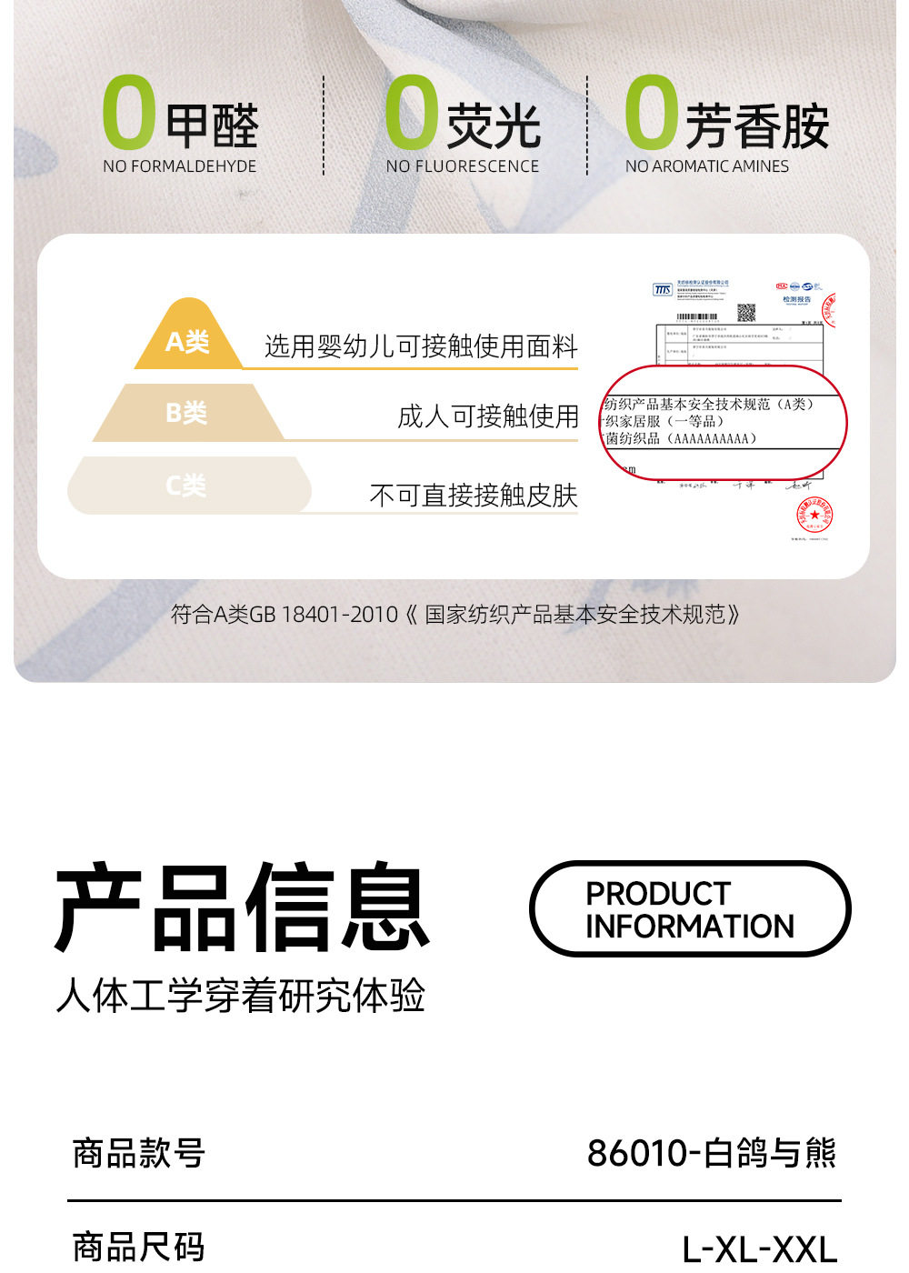 | Main fabric composition | Inner layer: 100% cotton. middle layer: 100% polyester fiber |