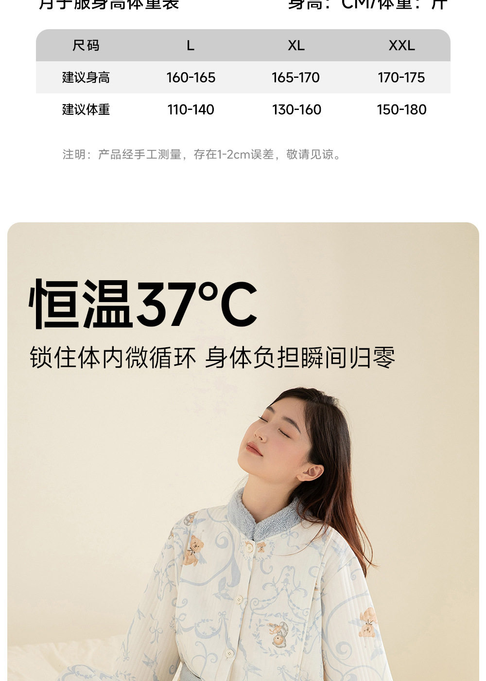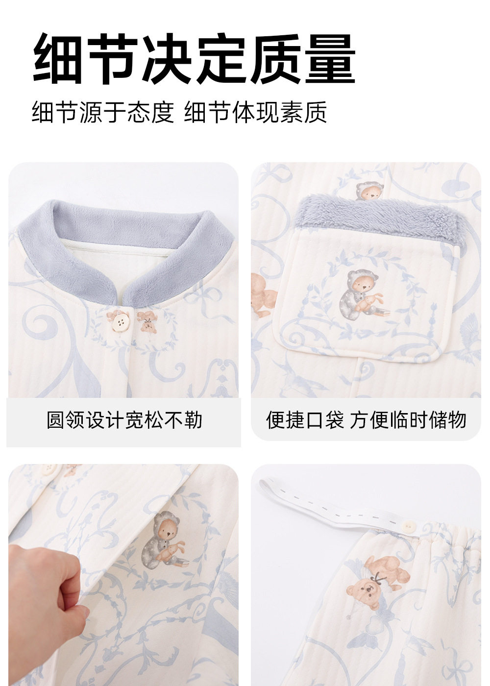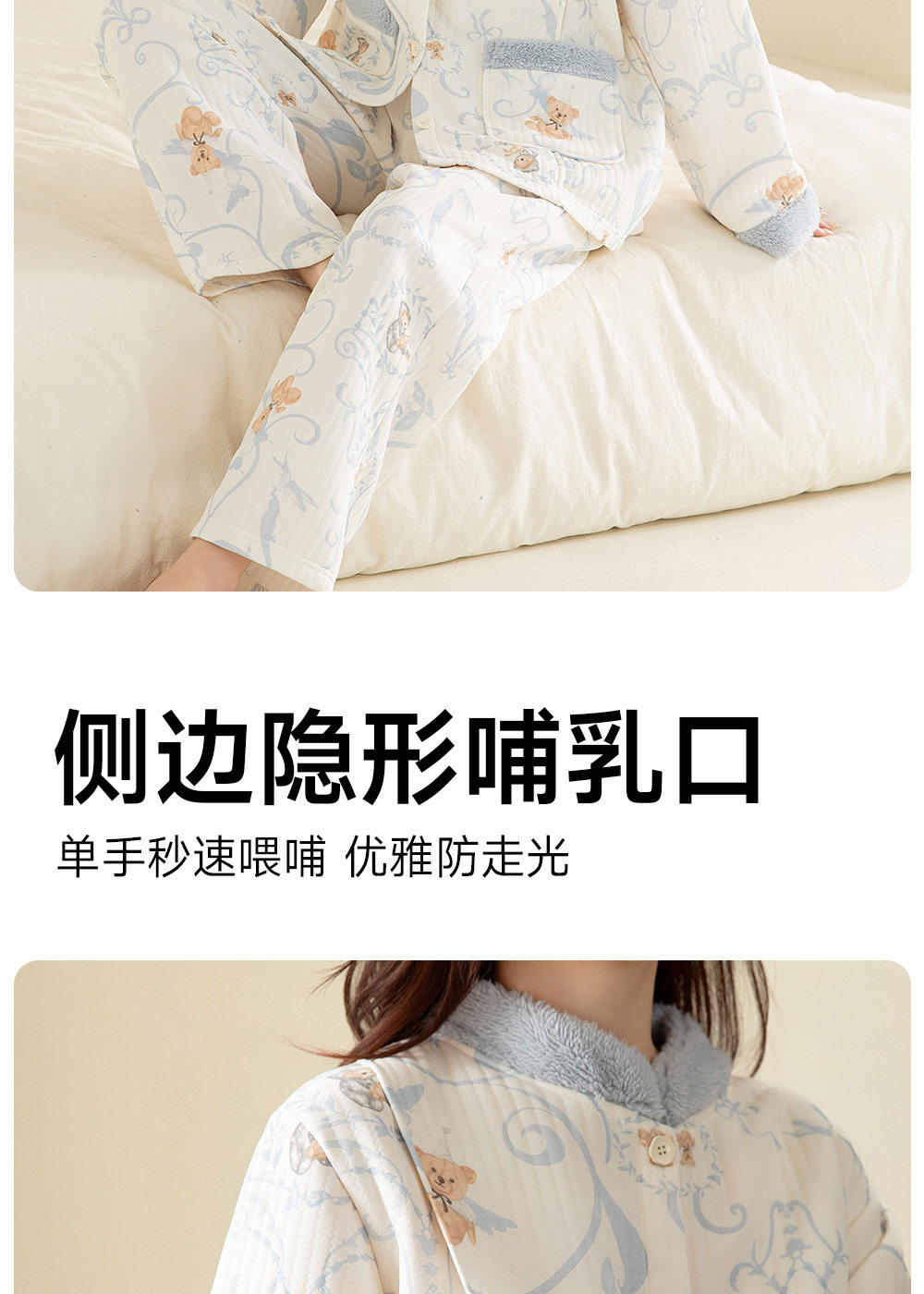 2025 Winter New Product Class a Pure Cotton Sandwich Air Cotton Confinement Clothing 10A Antibacterial Maternity Round Neck Cardigan Maternity Feeding