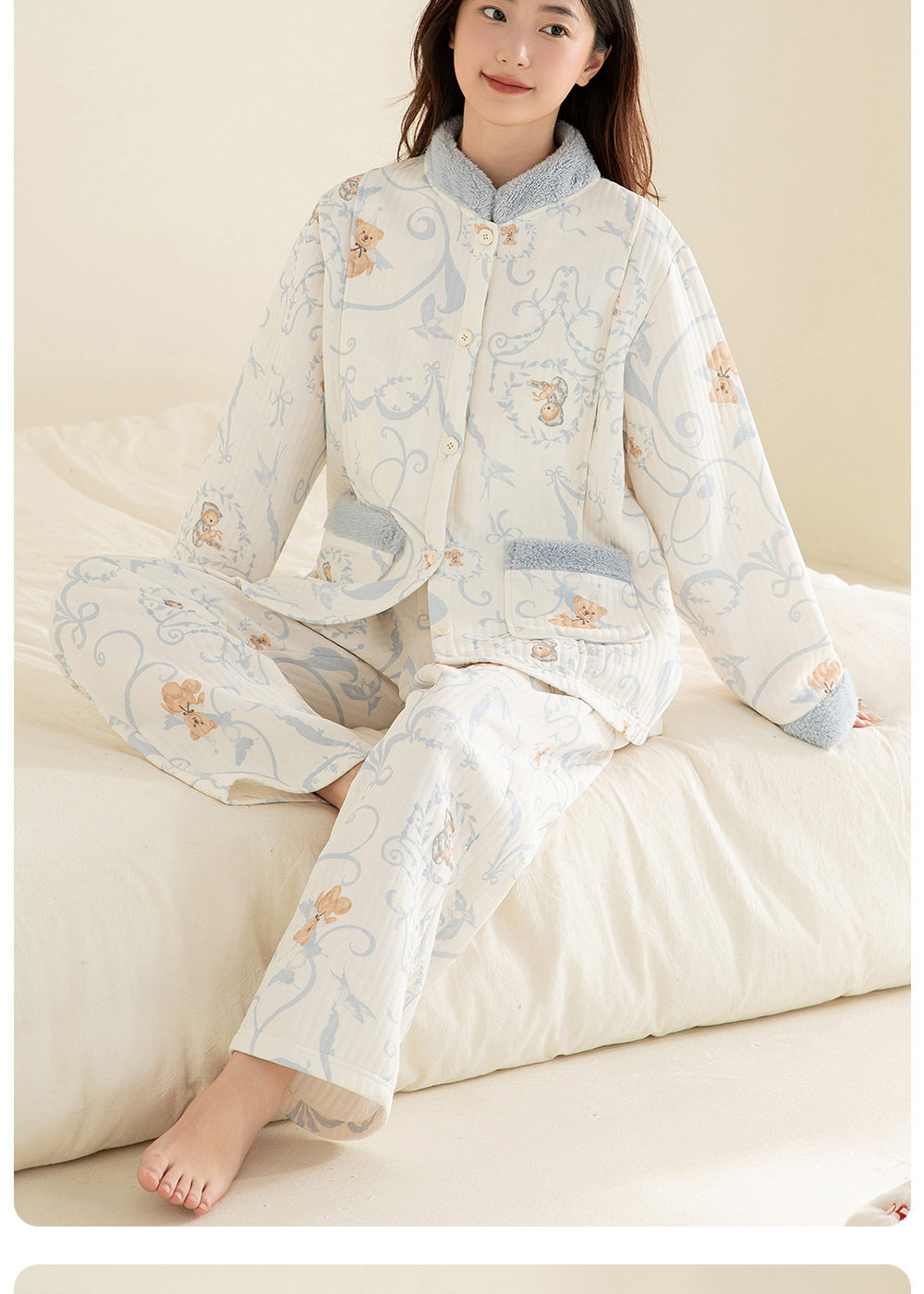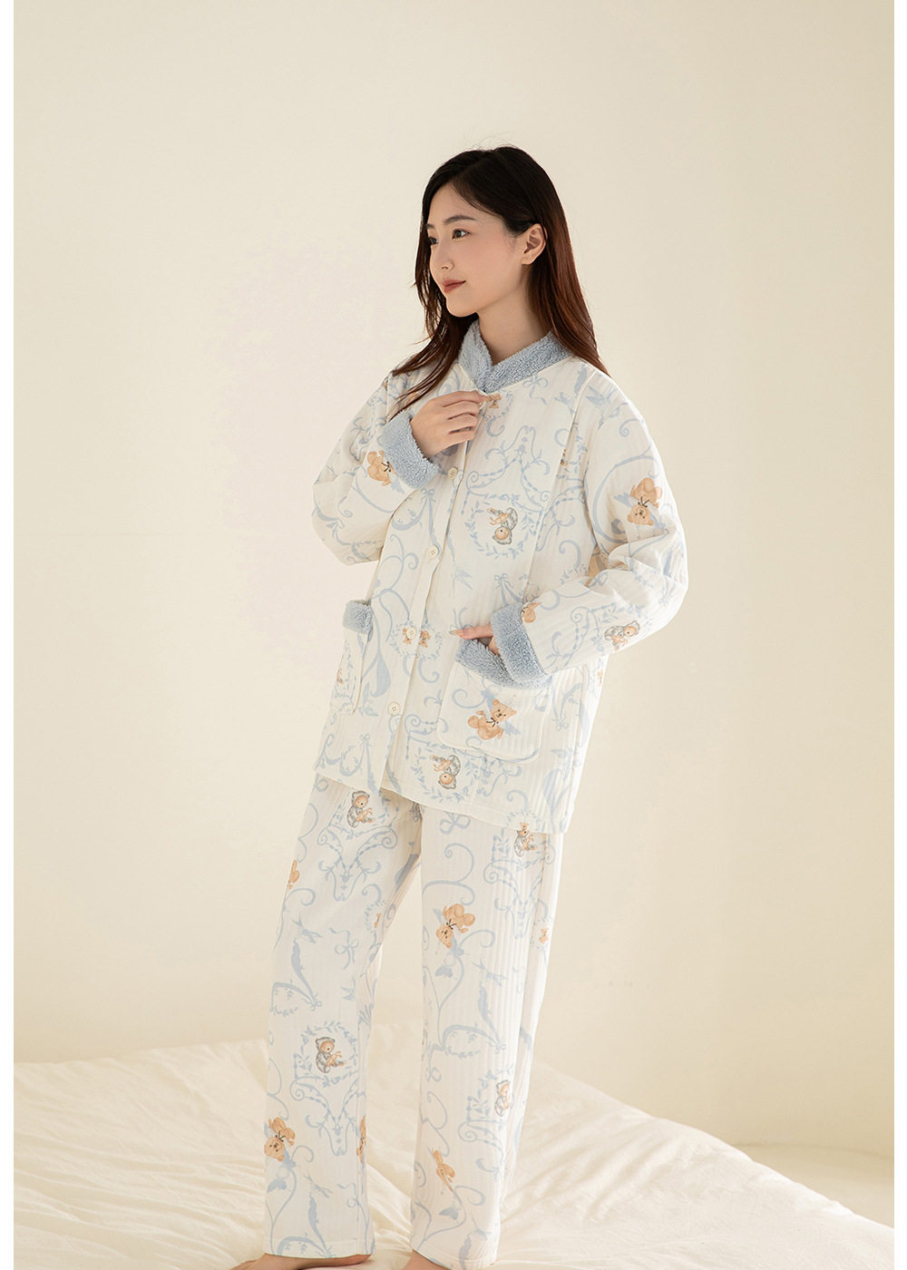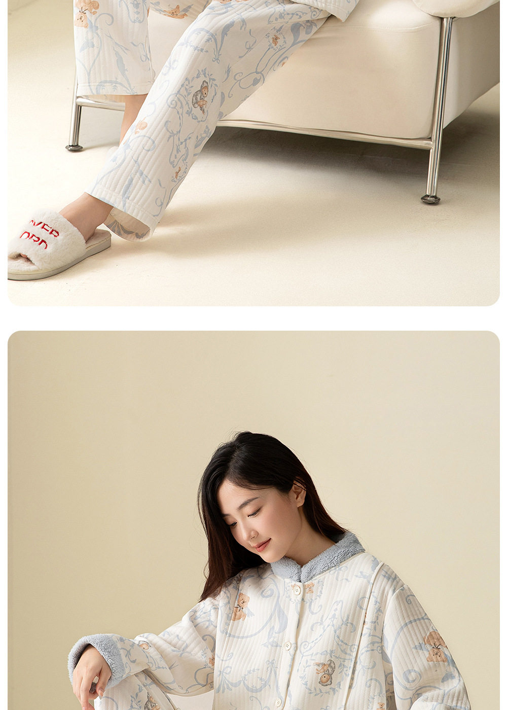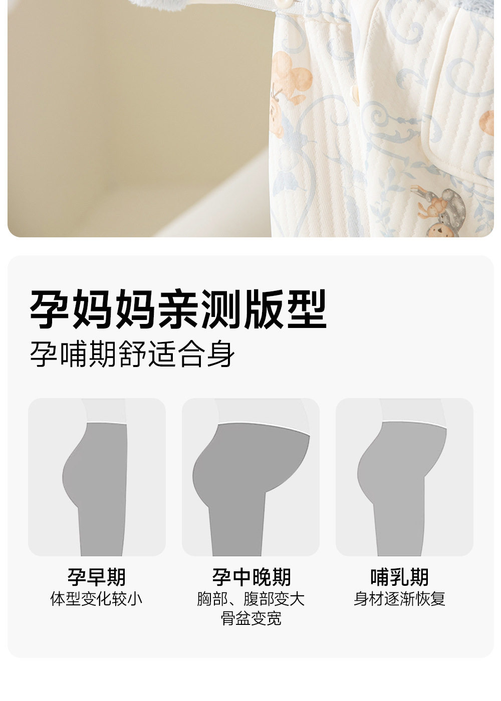 2025 Winter New Product Class a Pure Cotton Sandwich Air Cotton Confinement Clothing 10A Antibacterial Maternity Round Neck Cardigan Maternity Feeding