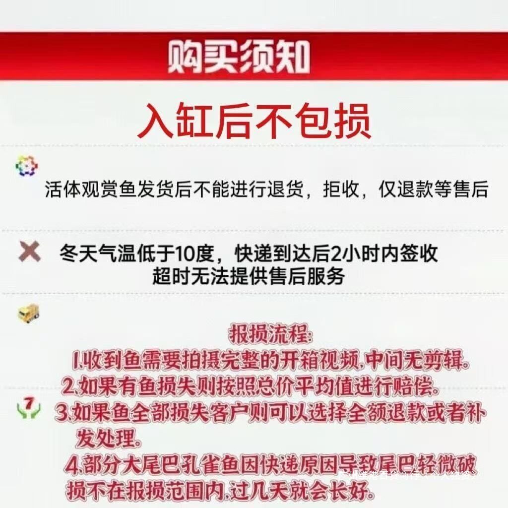 | Body shape | [2 random males and females] 2+/4 grams of fish food,[4 random males and females] four live packs + 1 spare + 4 grams of fish food,[6 tails randomly mixed] 6 pieces + 2 spare pieces + 4 grams of fish food |