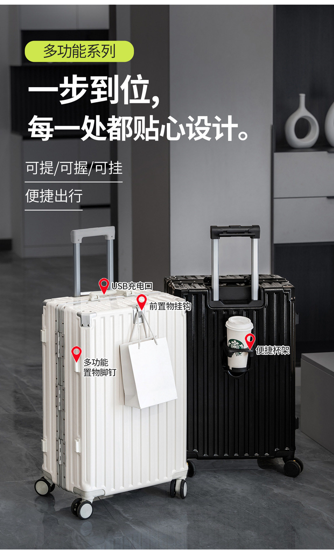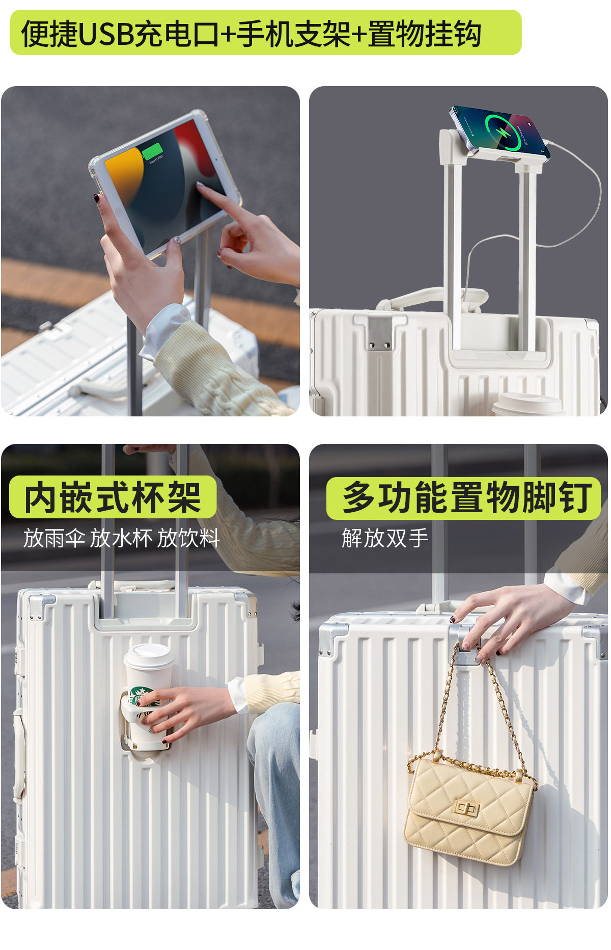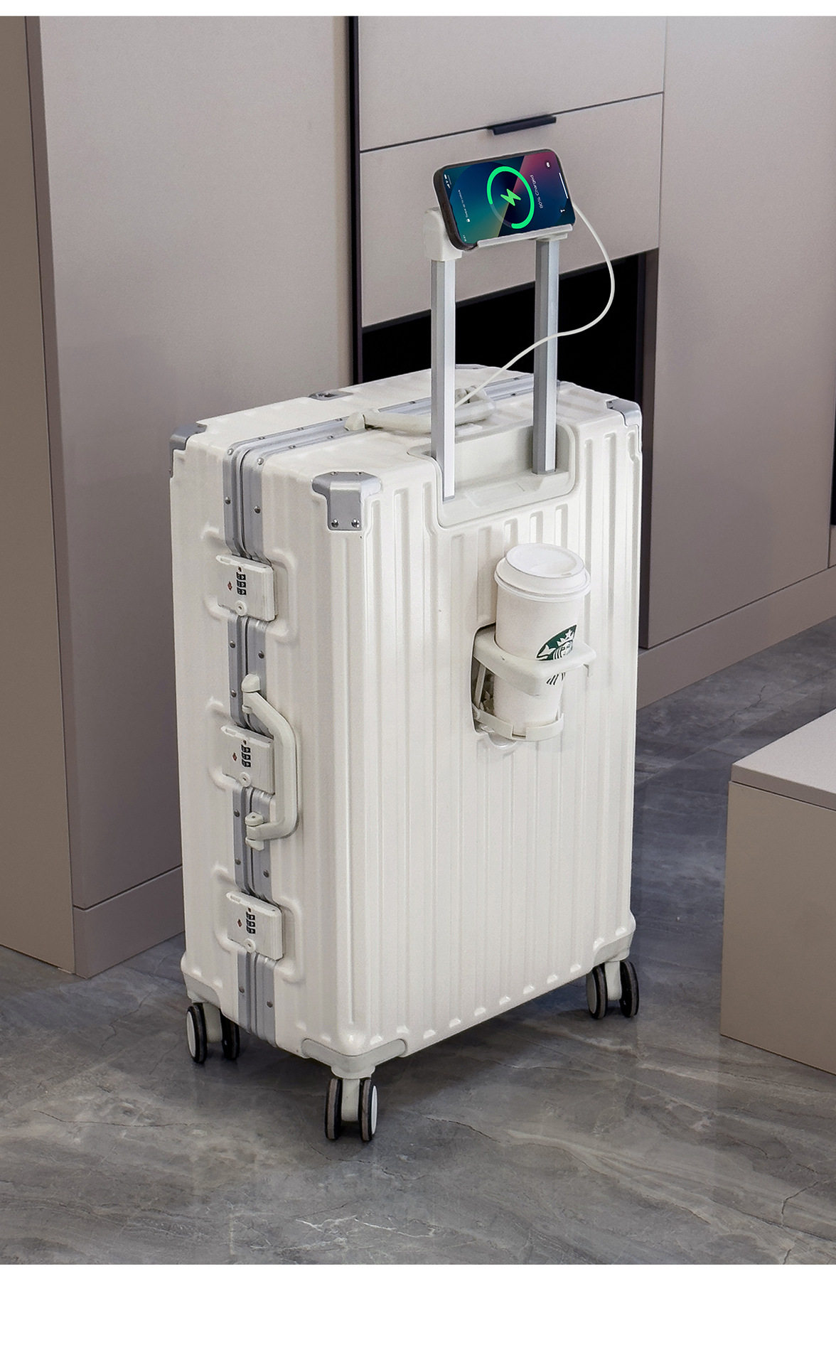 | Size | 22inch [three-lock explosion-proof + charging port + water cup holder],24inch [three-lock explosion-proof + charging port + water cup holder],26inch [three-lock explosion-proof + charging port + water cup holder],28inch [three-lock explosion-proof + charging port + water cup holder],30inch [three-lock explosion-proof + charging port + water cup holder],20inch [two locks explosion-proof + charging port + water cup holder] |