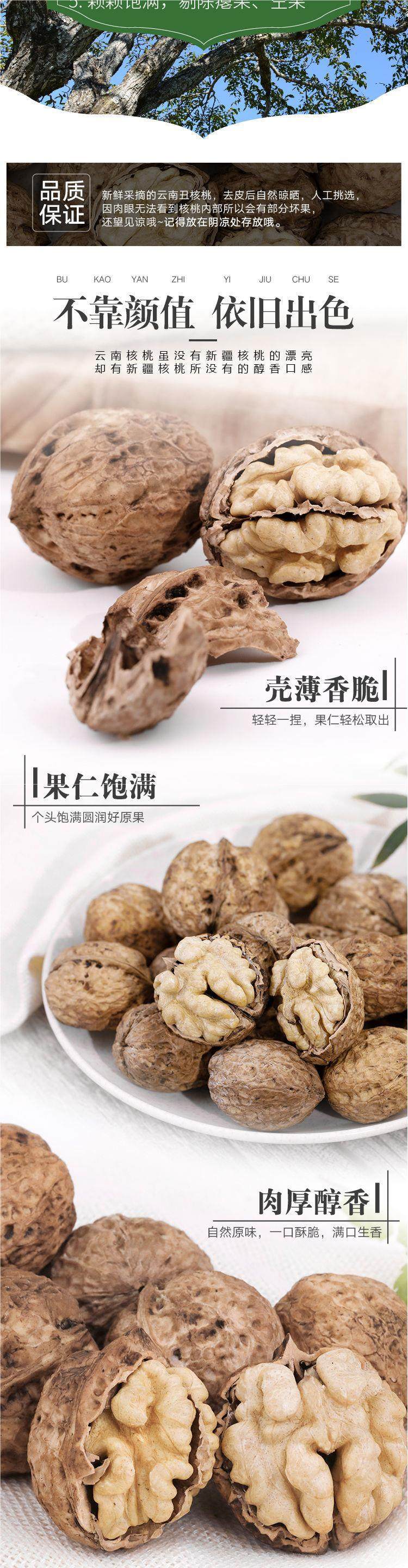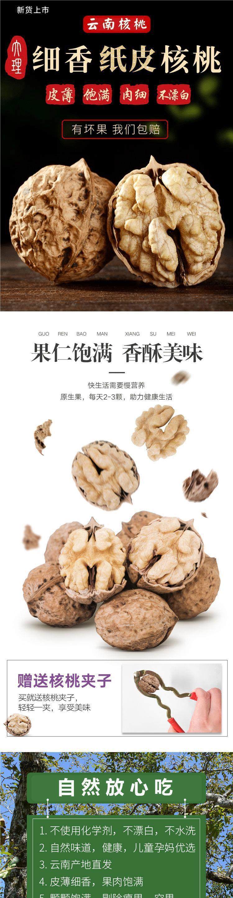 | Packaging specifications | §yunnan thin-skinned walnuts [net weight 2.5kg ] comes with clips ⚑ ⚑,§yunnan thin-skinned walnuts [net weight 1.5kg ] comes with clips ⚑ ⚑,§yunnan thin-skinned walnuts [net weight 1.0kg ] comes with clips ⚑ ⚑,§yunnan thin-skinned walnuts [net weight half a catty] comes with clips ⚑ ⚑ |