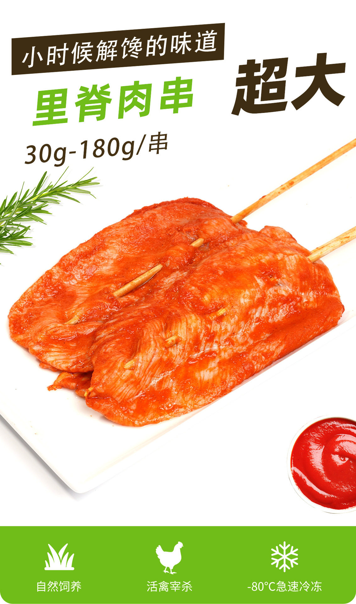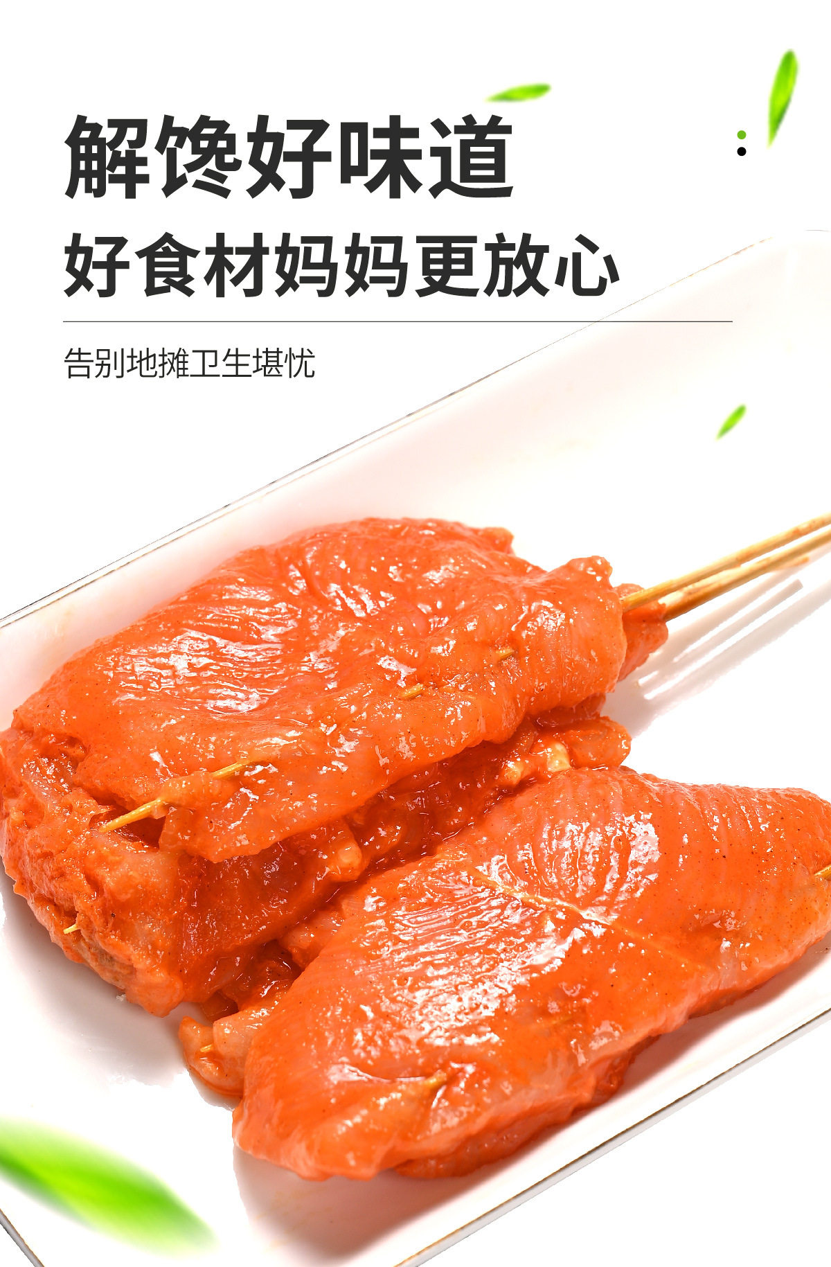Packaging specifications 28g/skewer 20 skewers/bag Orleans flavor (560g),50g/skewer 20 skewers/bag Orleans flavor (1.0kg),55g/skewer 20 skewers/bag curry flavor (1.1kg),65g/skewer 20 skewers/bag Orleans flavor (1.3kg),[180g-200g/skewer] 5 skewers/bag orleans flavor (0.9kg),[50g/piece] unlabeled 20 pieces/bag orleans flavor (1kg)