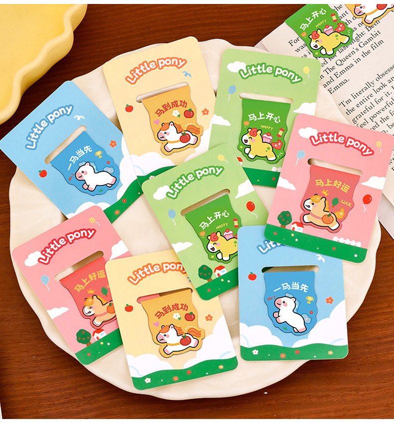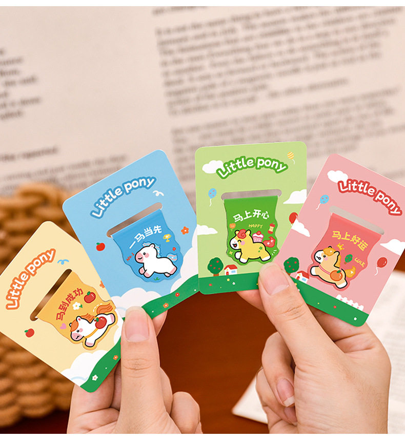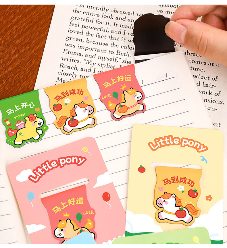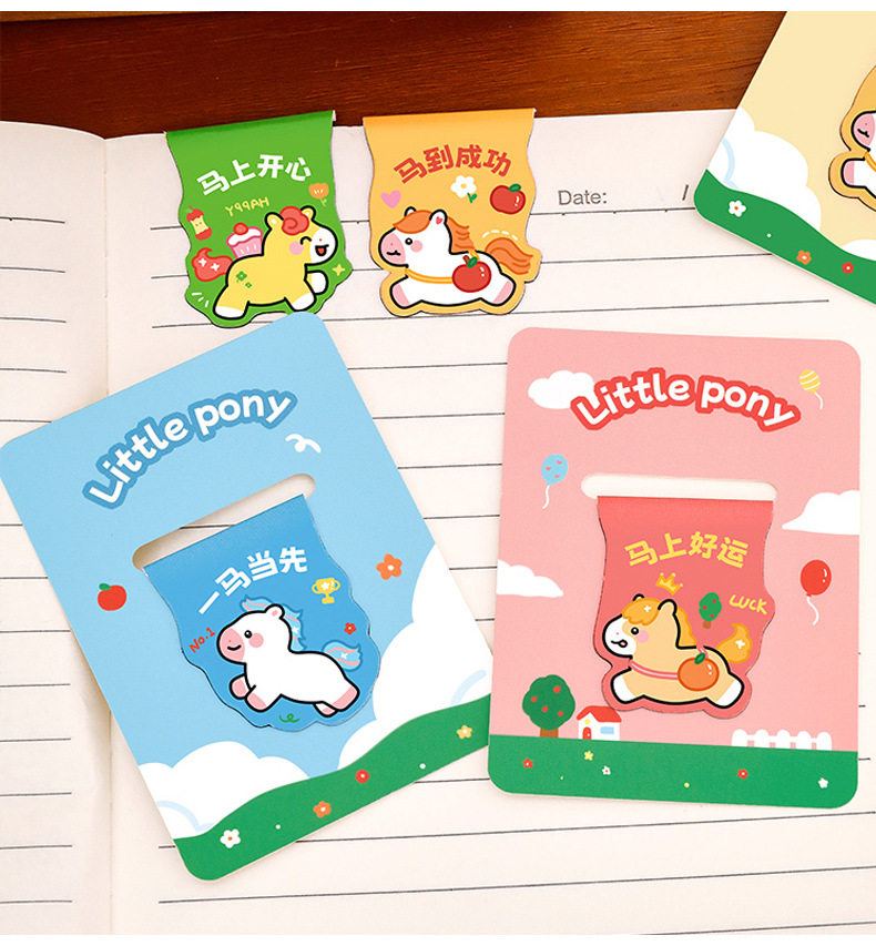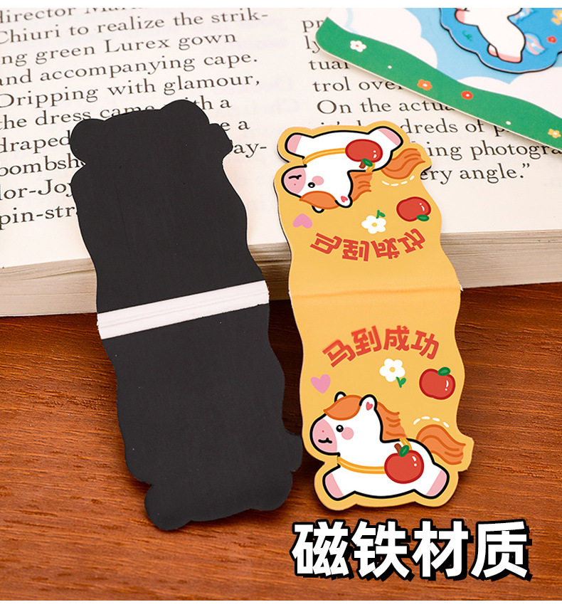 Pony Creative Magnetic Bookmark Student Reading Magnet Book Page Clip Cartoon Year of the Horse Stationery Bookmark High-Looking Label