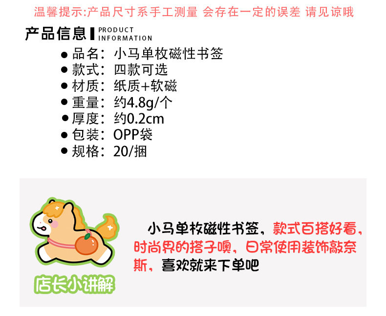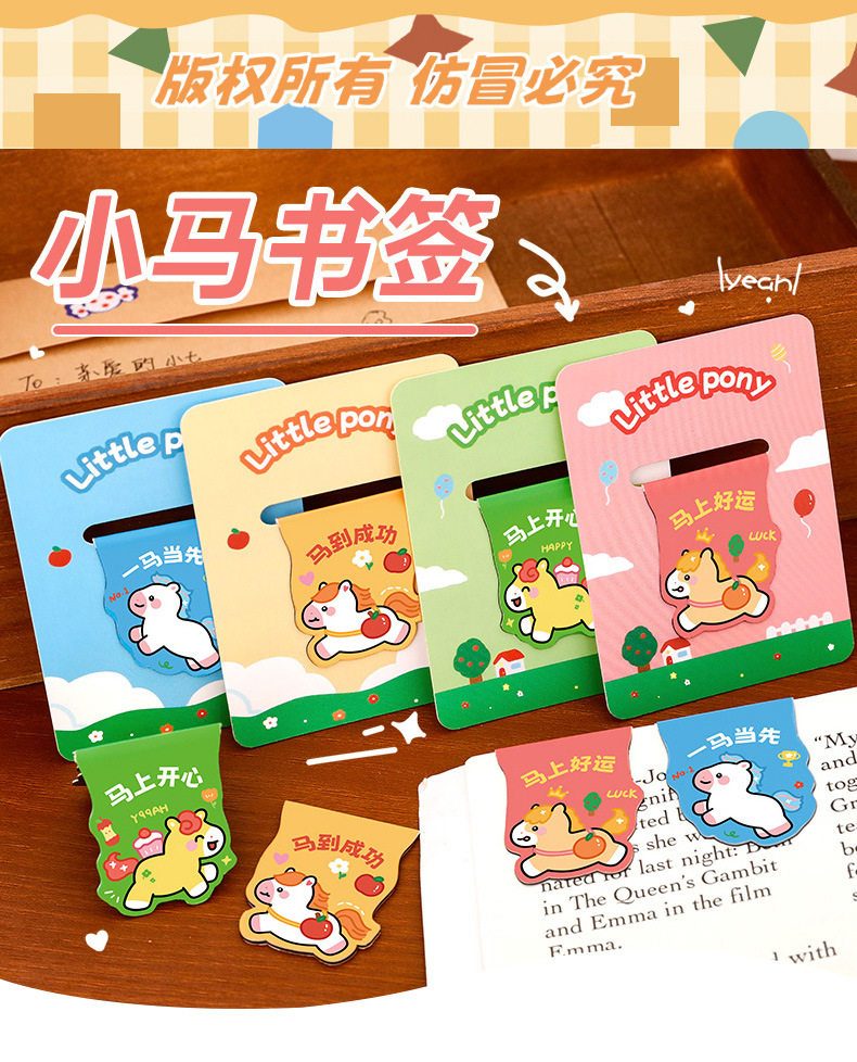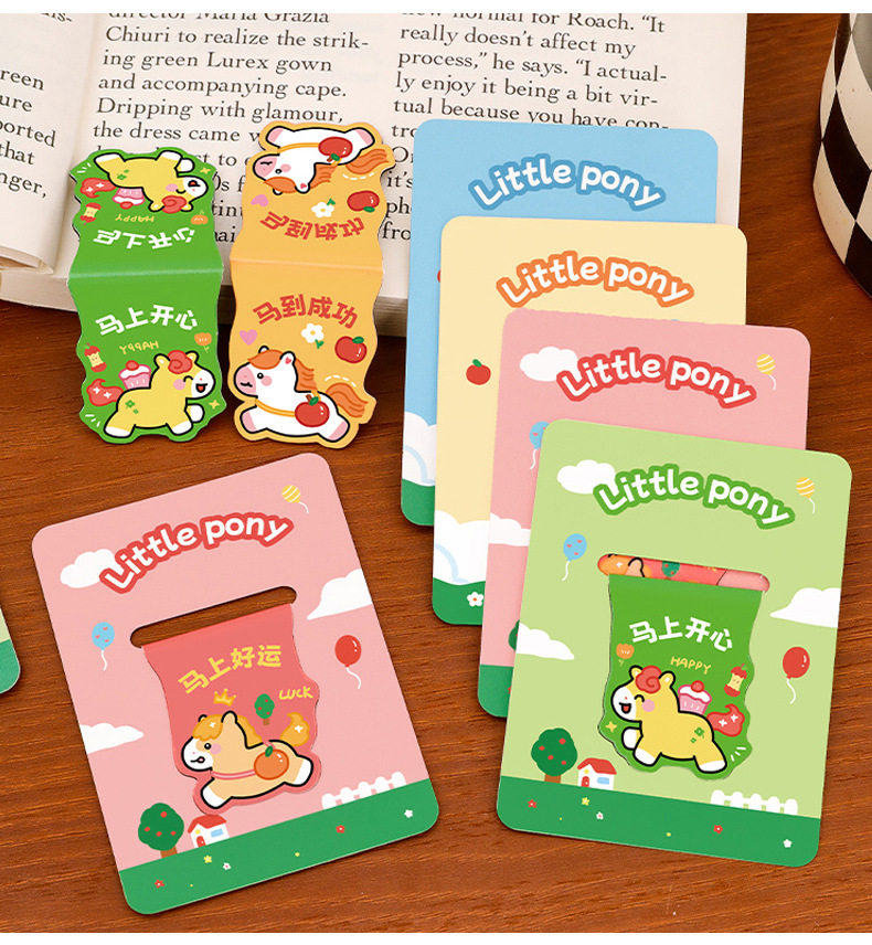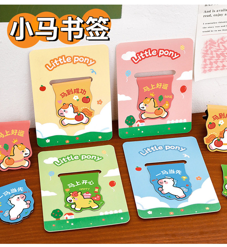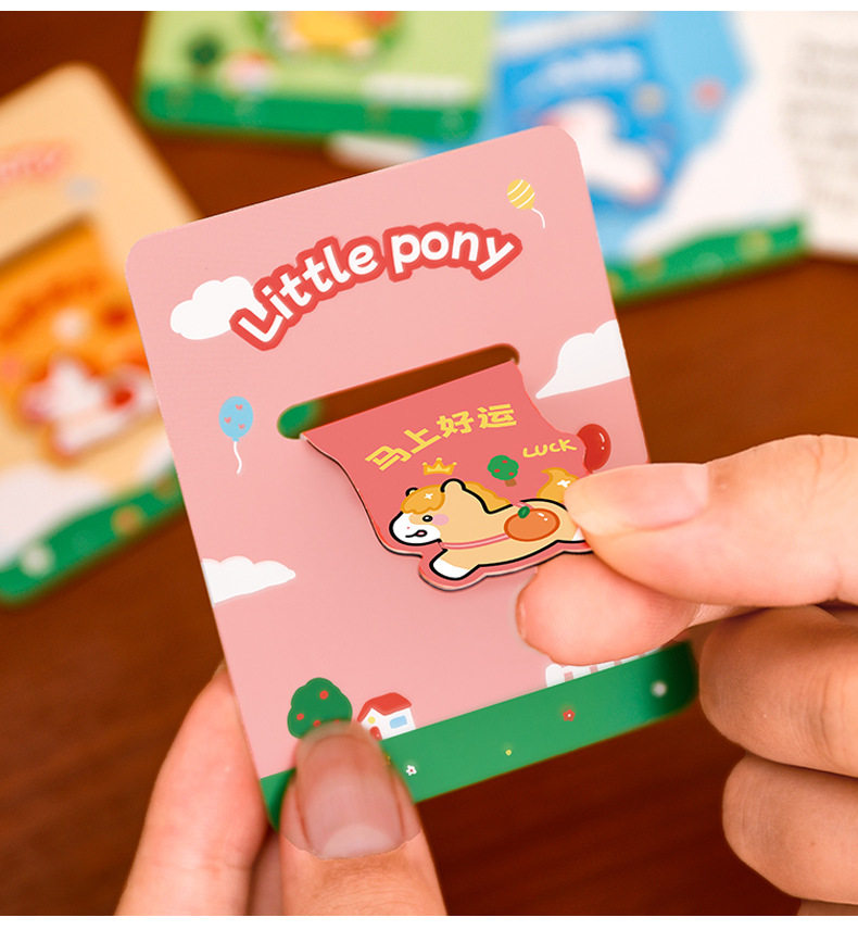 Pony Creative Magnetic Bookmark Student Reading Magnet Book Page Clip Cartoon Year of the Horse Stationery Bookmark High-Looking Label