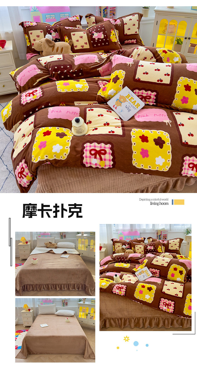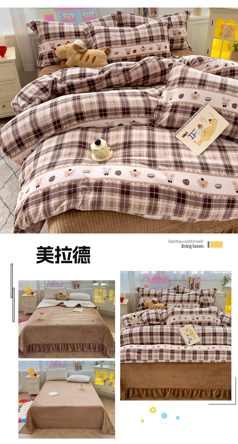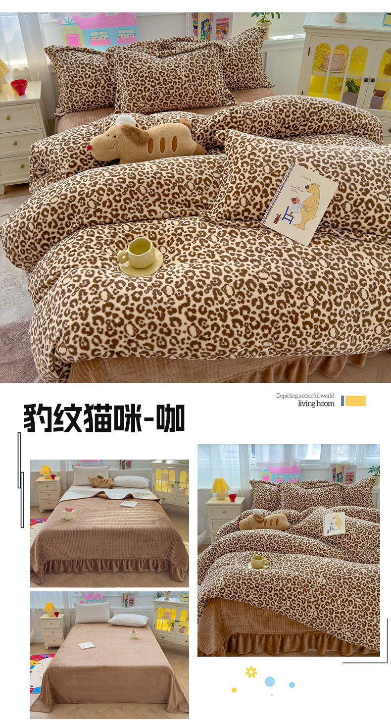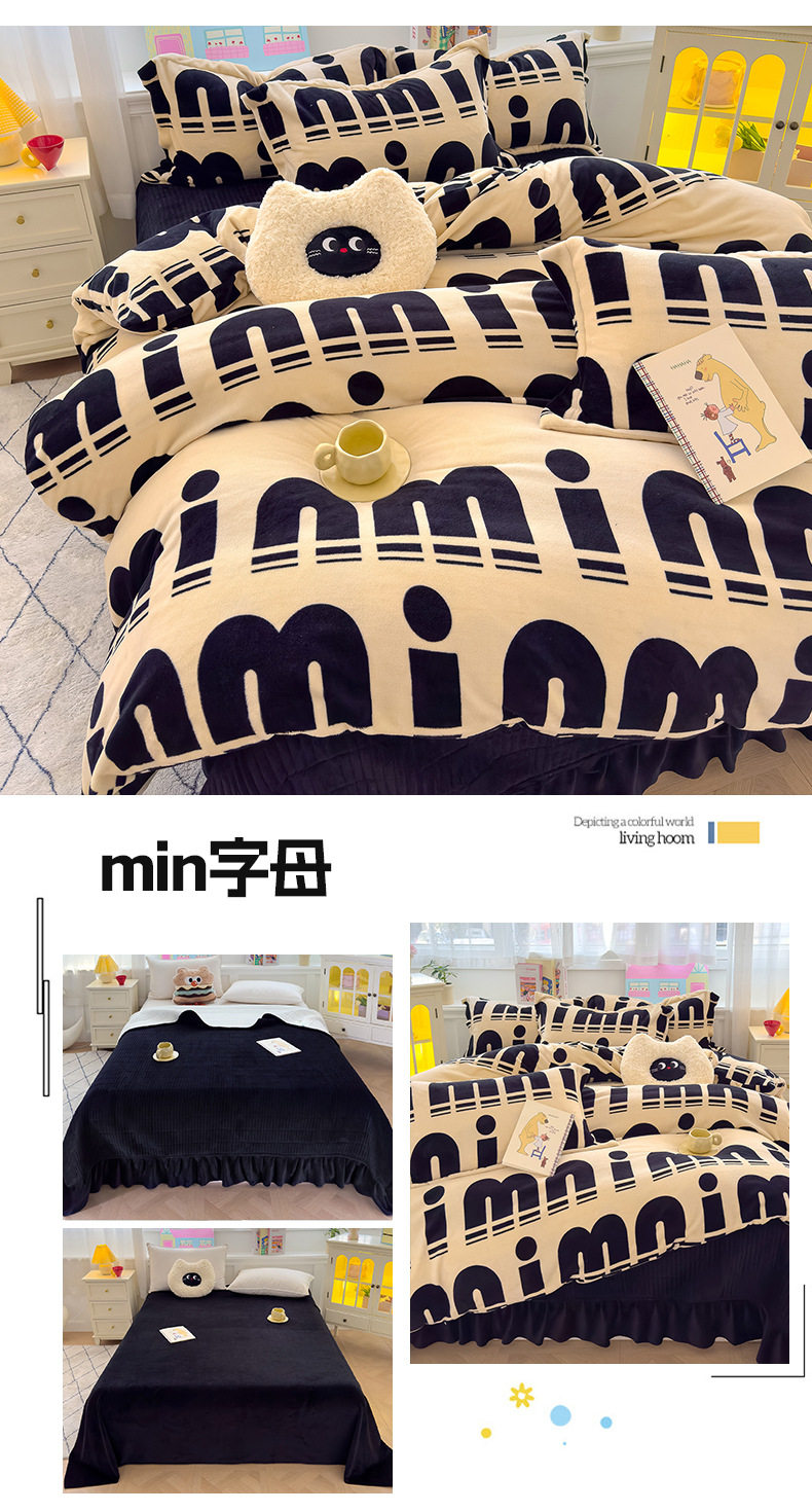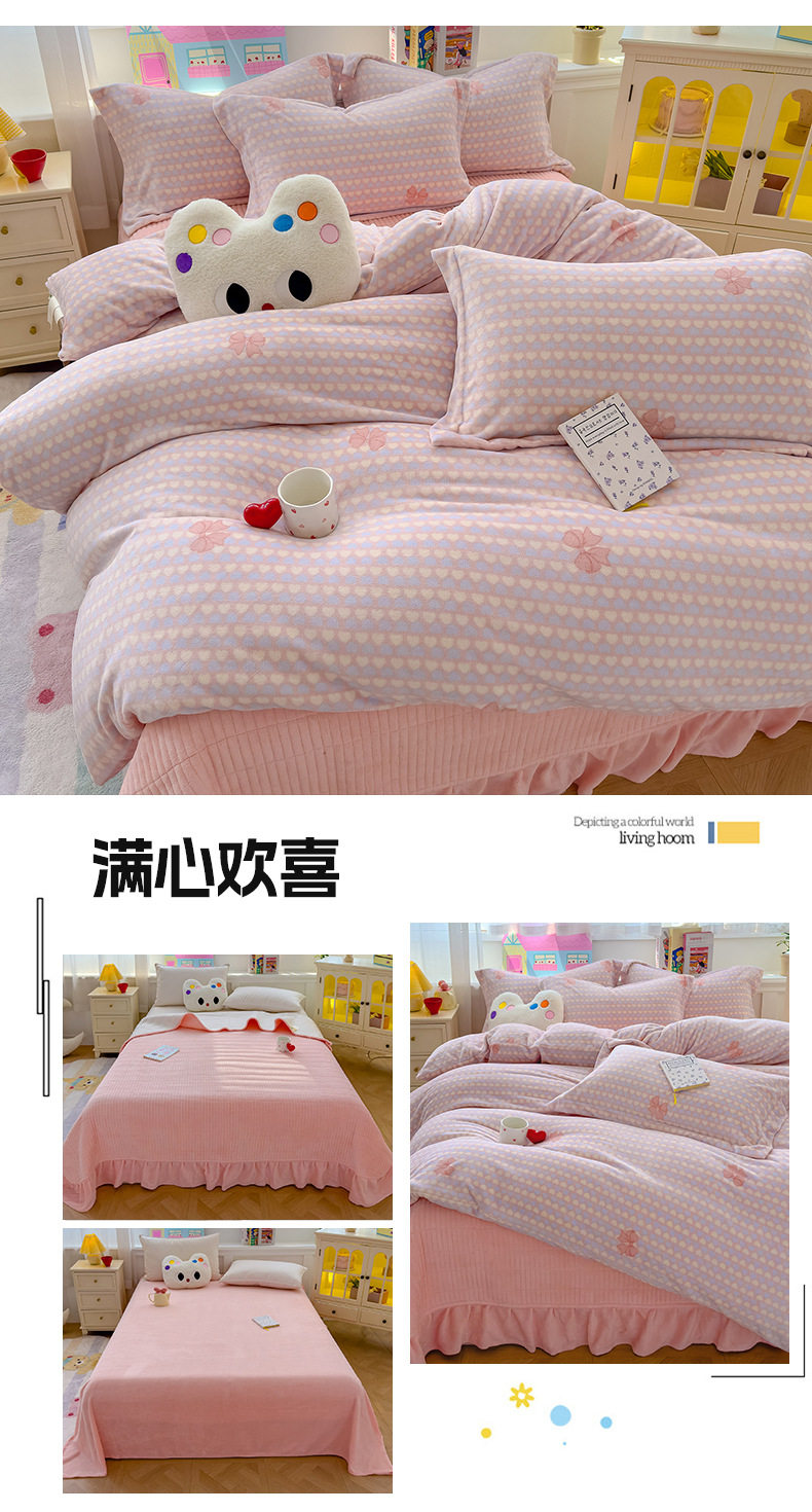 2025 New Autumn and Winter Thickeneded Skin-Friendly and Comfortable Milk Velvet Lace Bed Cover Four-Piece Warm Velvet Set