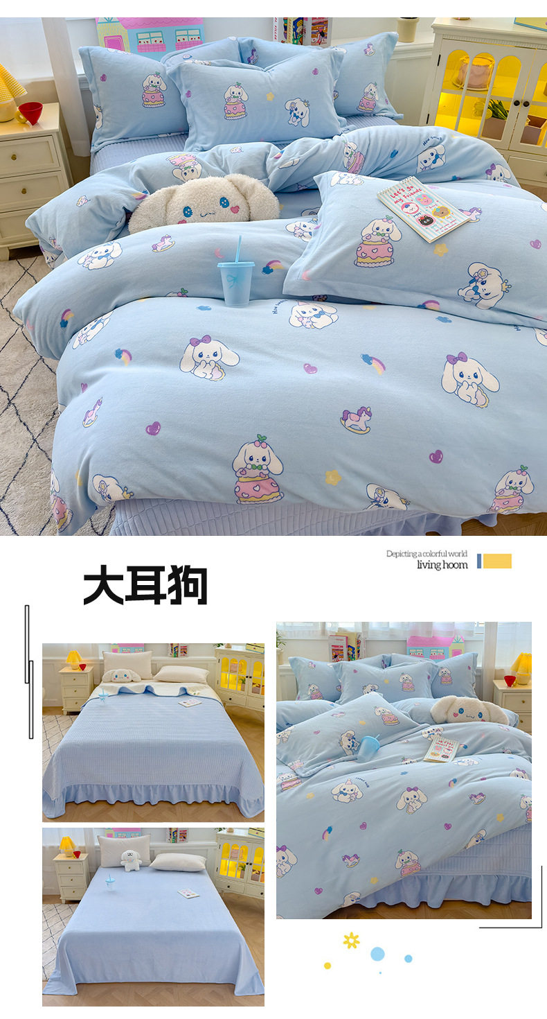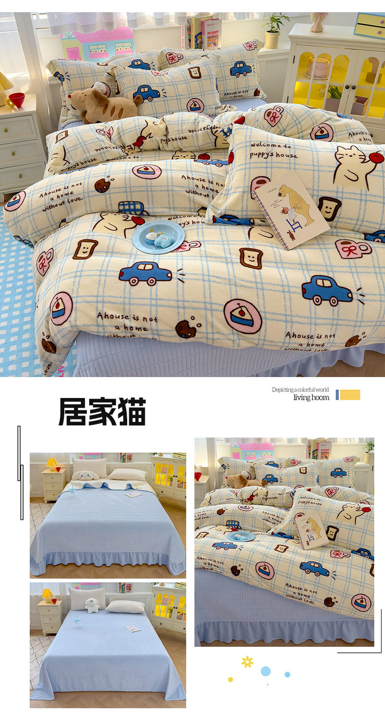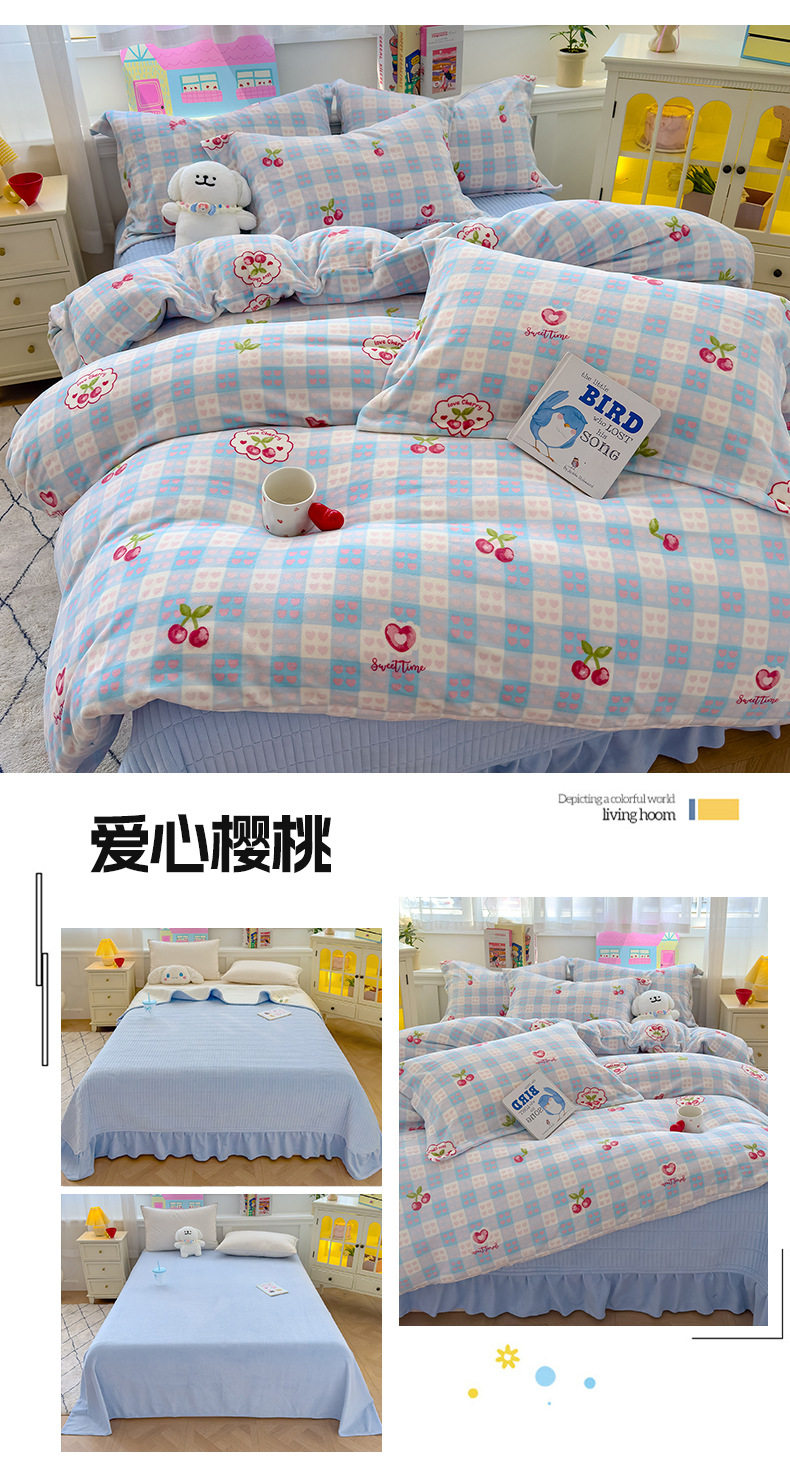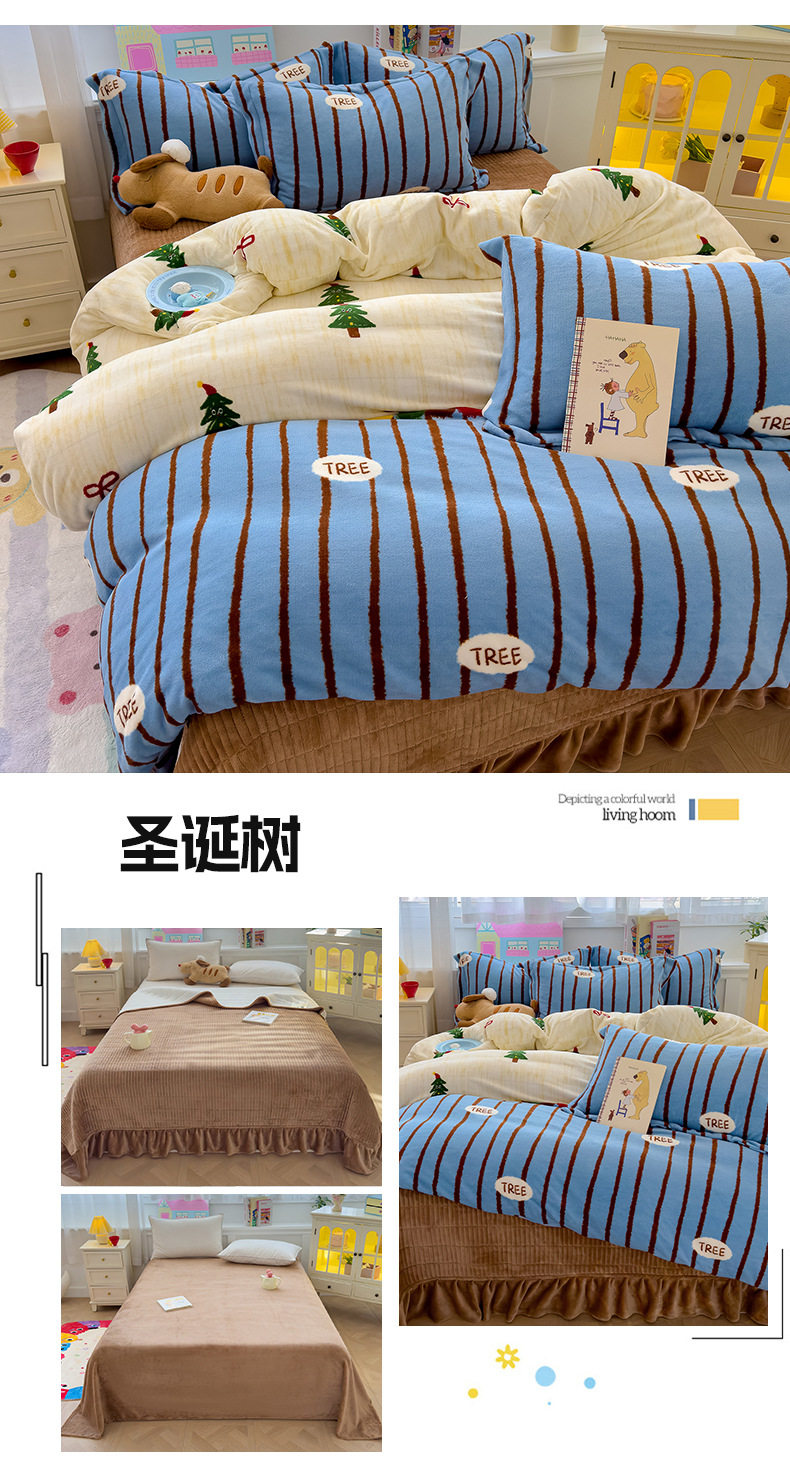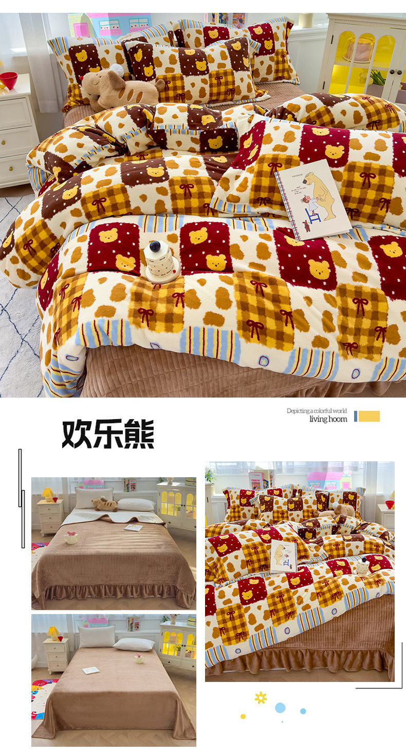 2025 New Autumn and Winter Thickeneded Skin-Friendly and Comfortable Milk Velvet Lace Bed Cover Four-Piece Warm Velvet Set