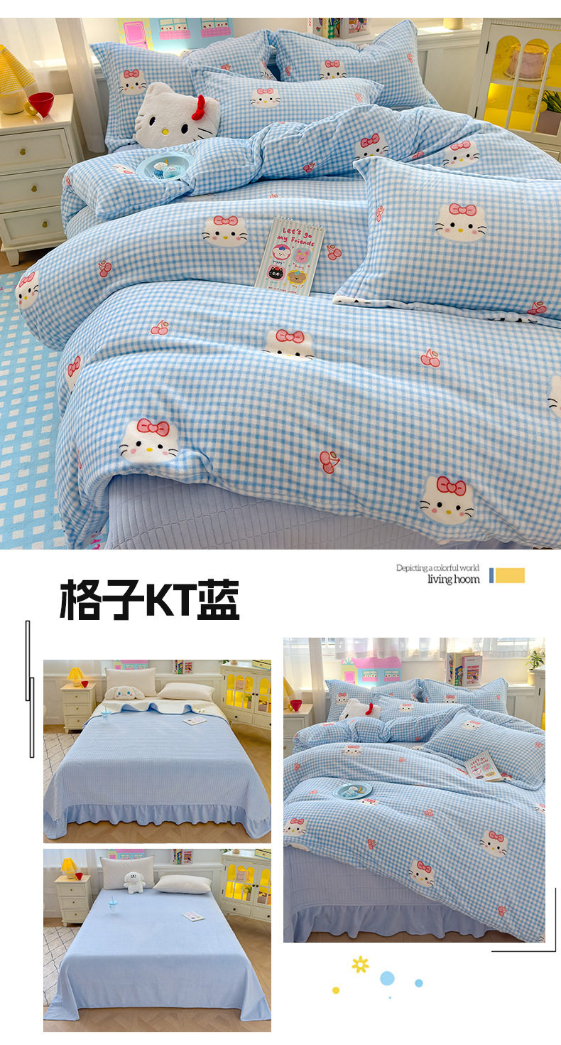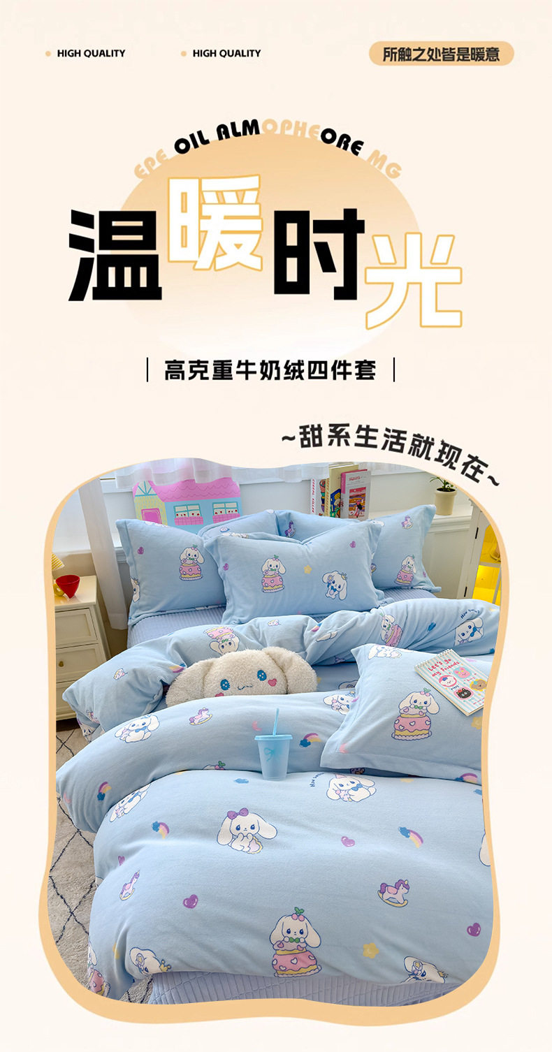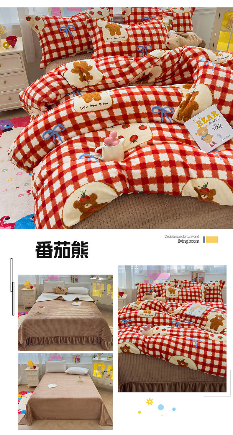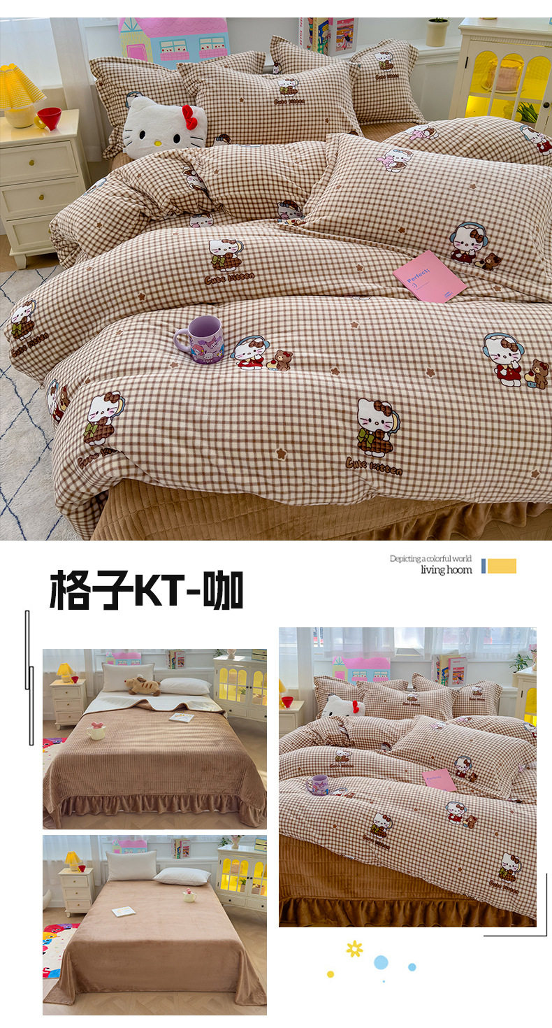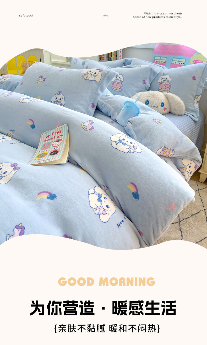 2025 New Autumn and Winter Thickeneded Skin-Friendly and Comfortable Milk Velvet Lace Bed Cover Four-Piece Warm Velvet Set