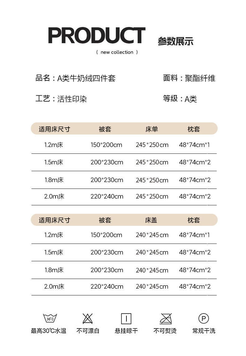 | Size specifications | 1.2m bed sheet four-piece quilt cover 150*200,1.5m bed sheet four-piece quilt cover 200*230,1.8m bed sheet four-piece quilt cover 200*230,2.0m bed sheet four-piece quilt cover 220*240,1.2m bed cover four-piece quilt cover 150*200,1.5m bed cover four-piece quilt cover 200*230,1.8m bed cover four-piece quilt cover 200*230,2.0m bed cover four-piece quilt cover 220*240 |