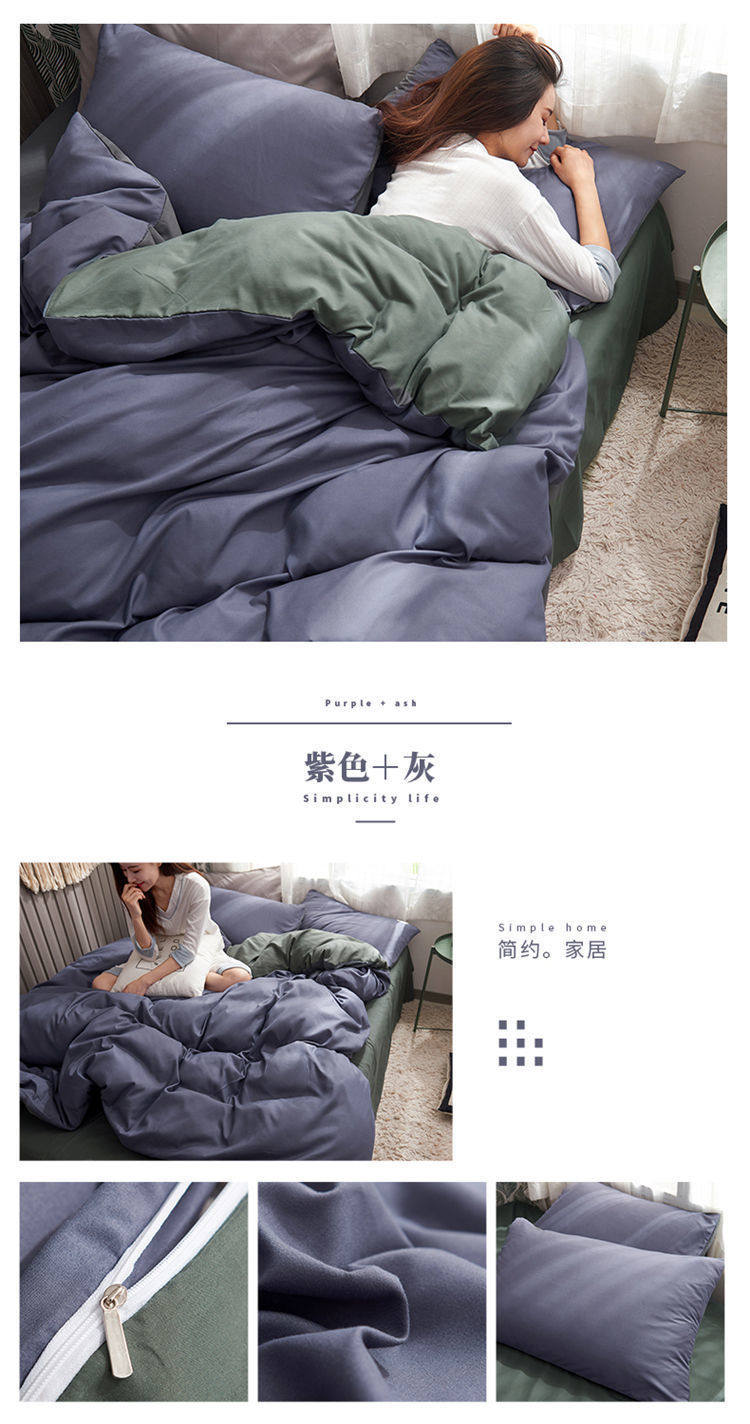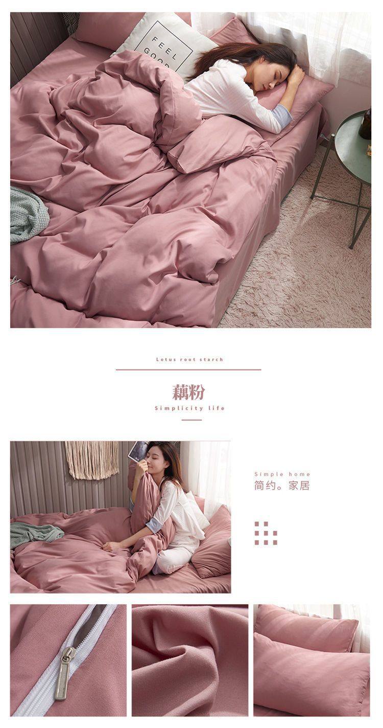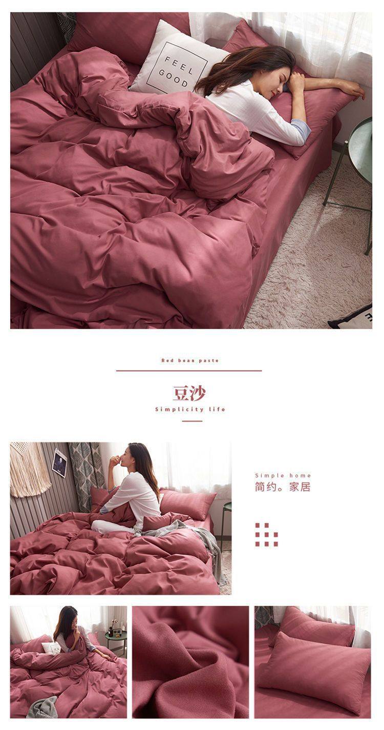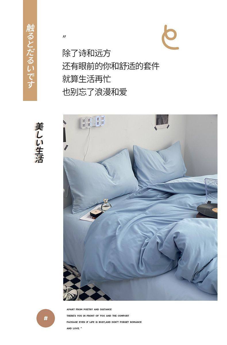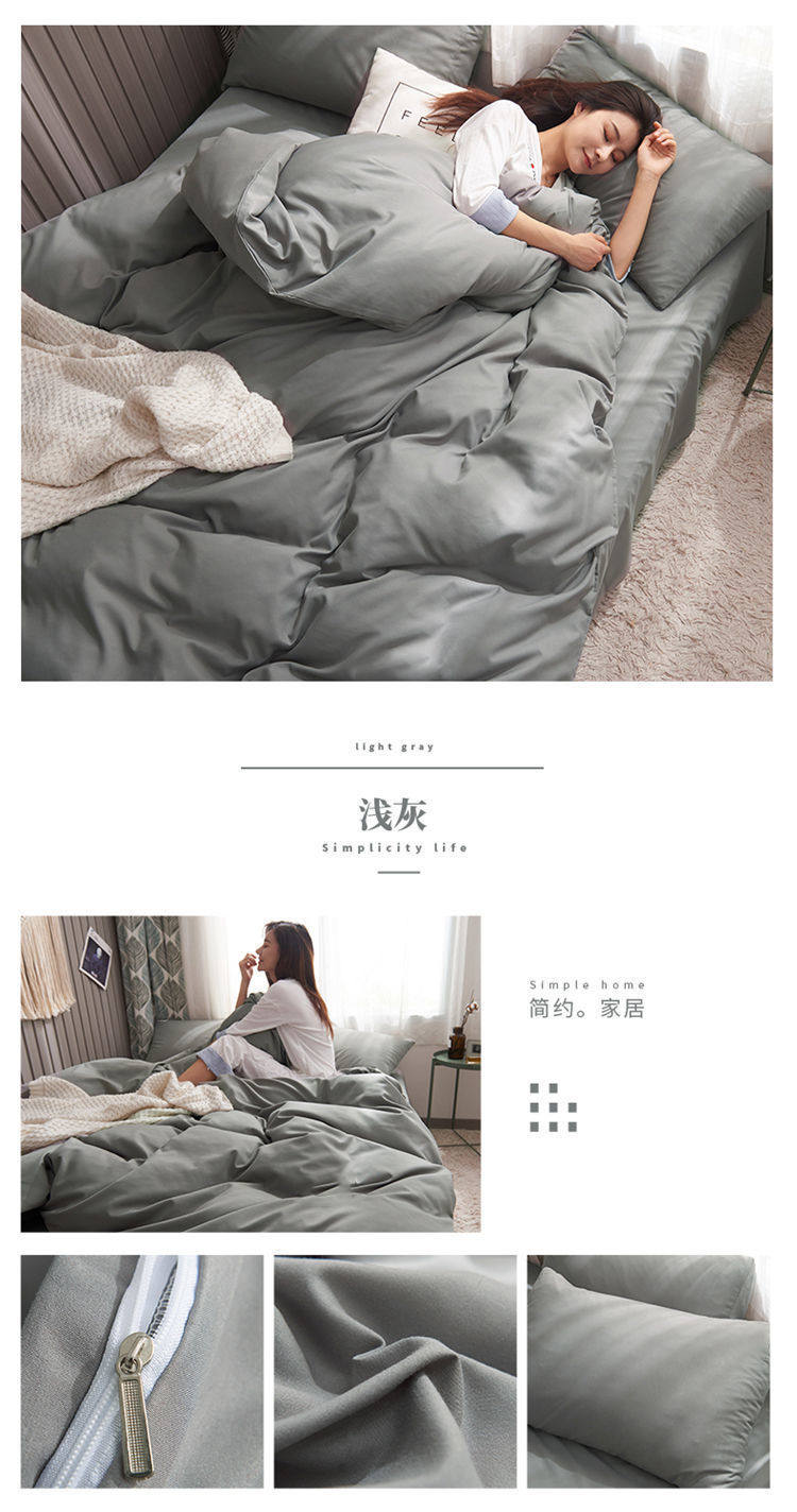 Casual Summer, Spring & Fall Washed Cotton Four-Piece Bed Bed Sheets Quilt Cover Student Dormitory Single Bed Three-Piece Set Pure Color