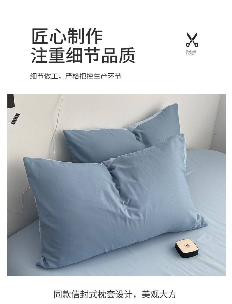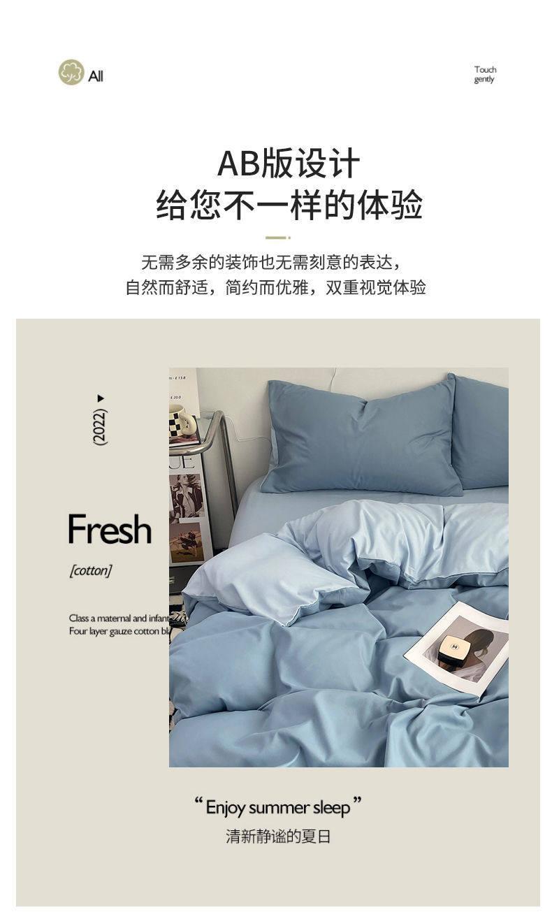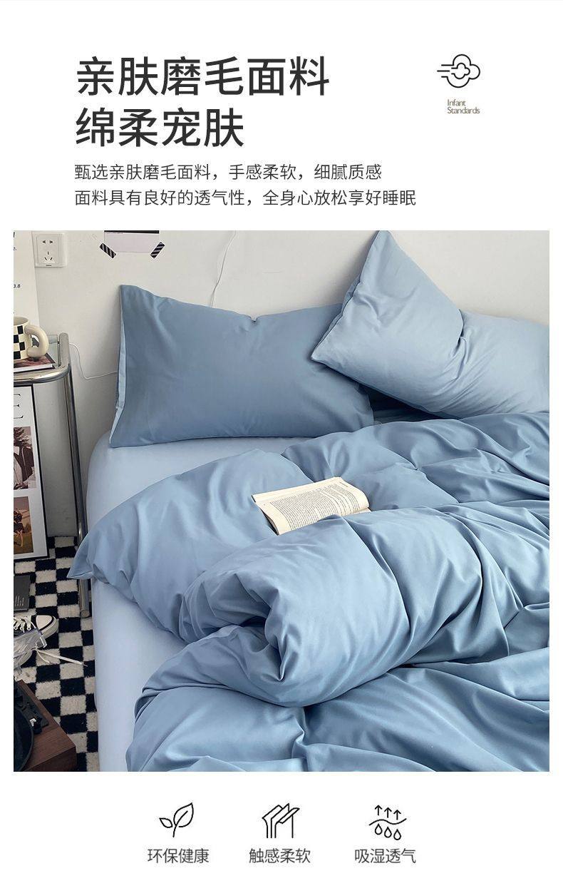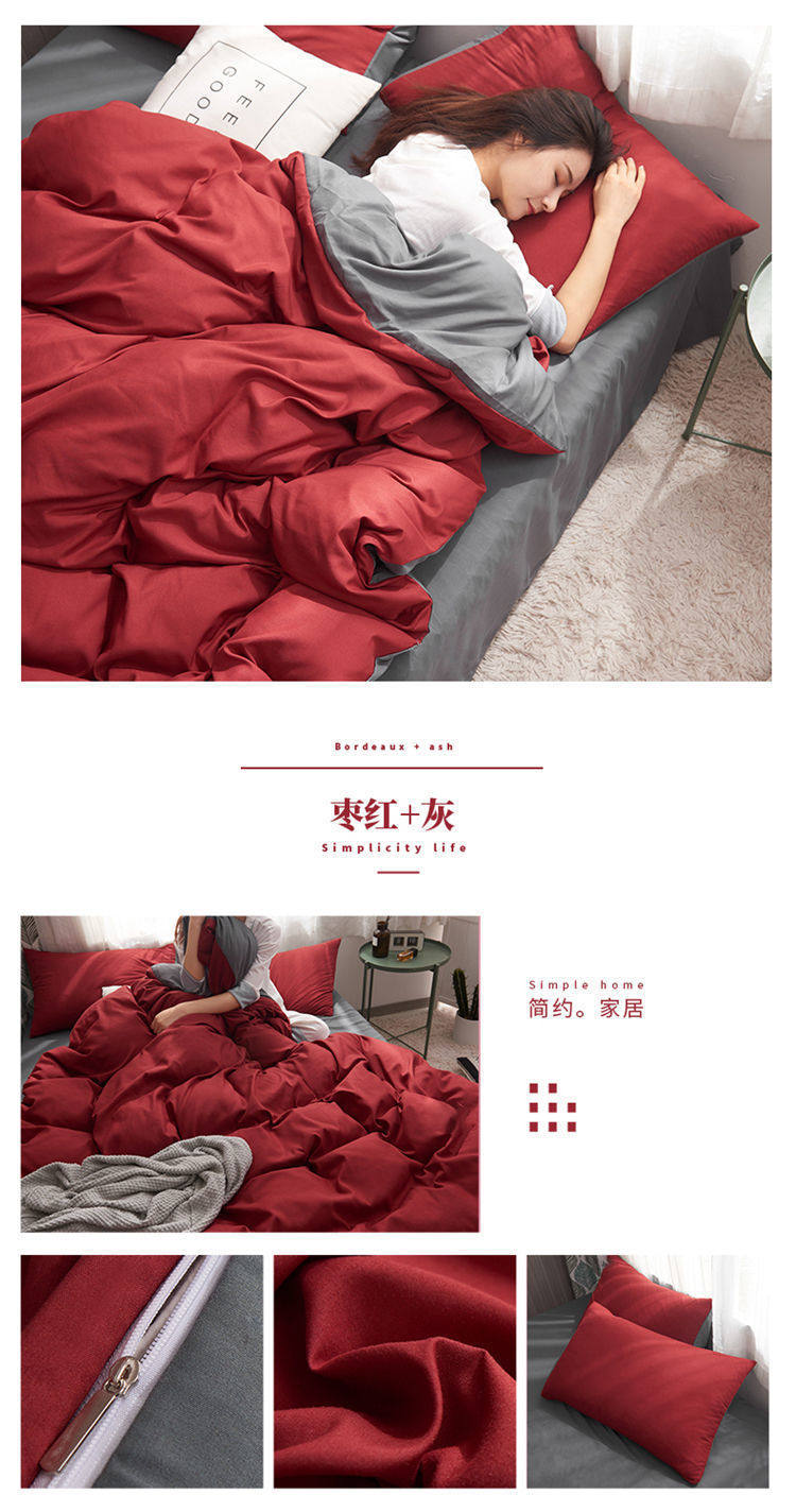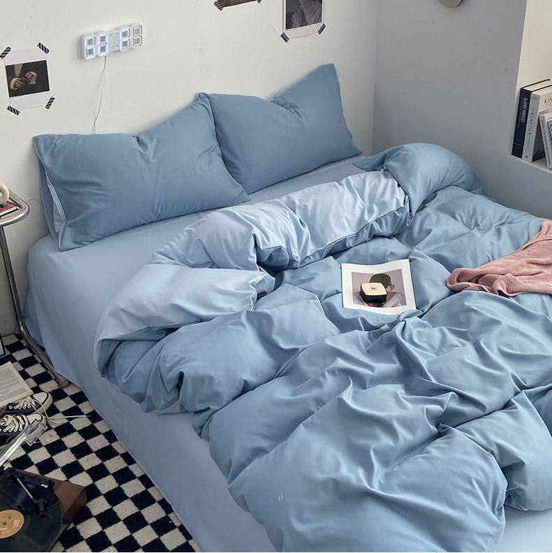Casual Summer, Spring & Fall Washed Cotton Four-Piece Bed Bed Sheets Quilt Cover Student Dormitory Single Bed Three-Piece Set Pure Color