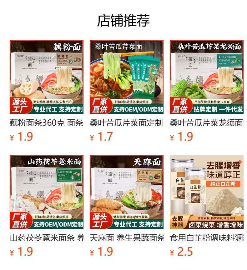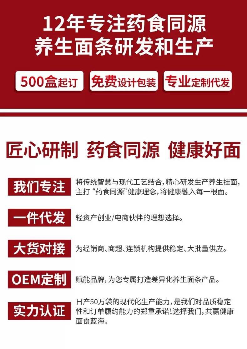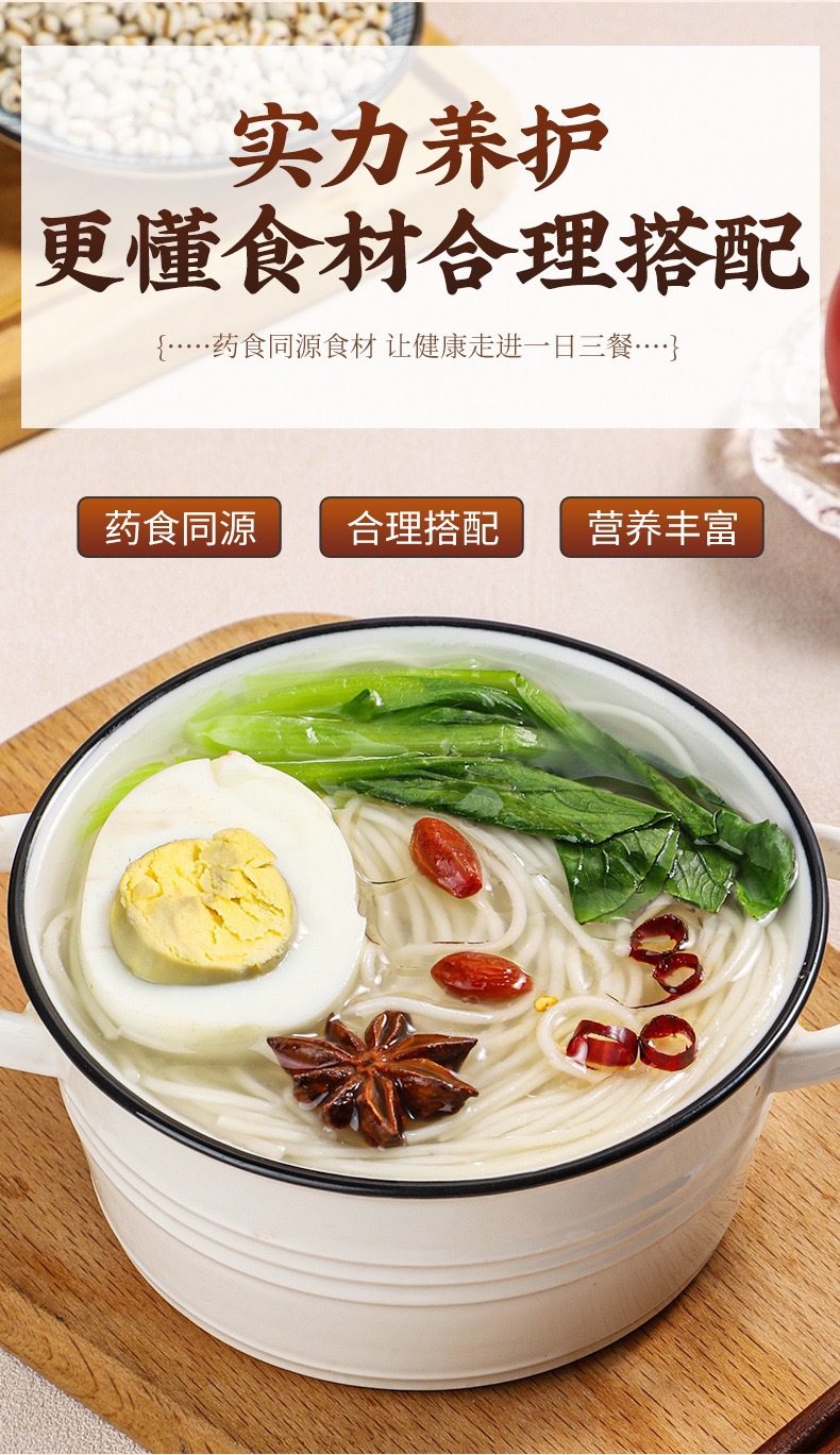 | Packaging specifications | Yam, poria and barley noodles [360g/bag],Yam, poria, barley noodles and dragon whisker noodles [360g/bag] |