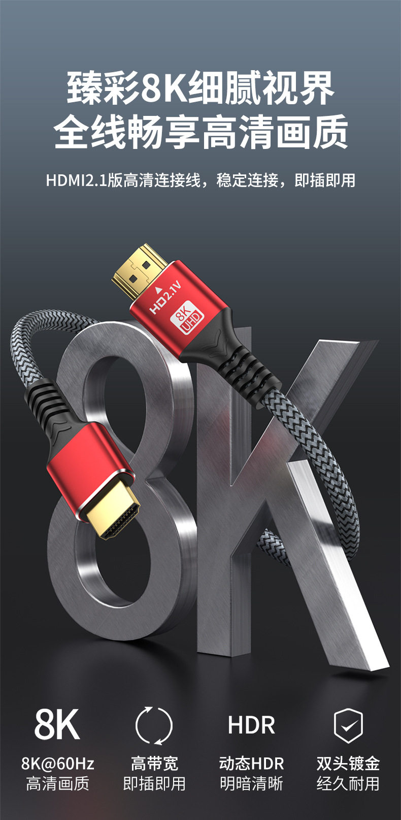 HDMI Cable Version 2.1 8K High-Definition Cable Monitor Screen Tv Computer Projector Set-Top Box Cable HDMI Cable