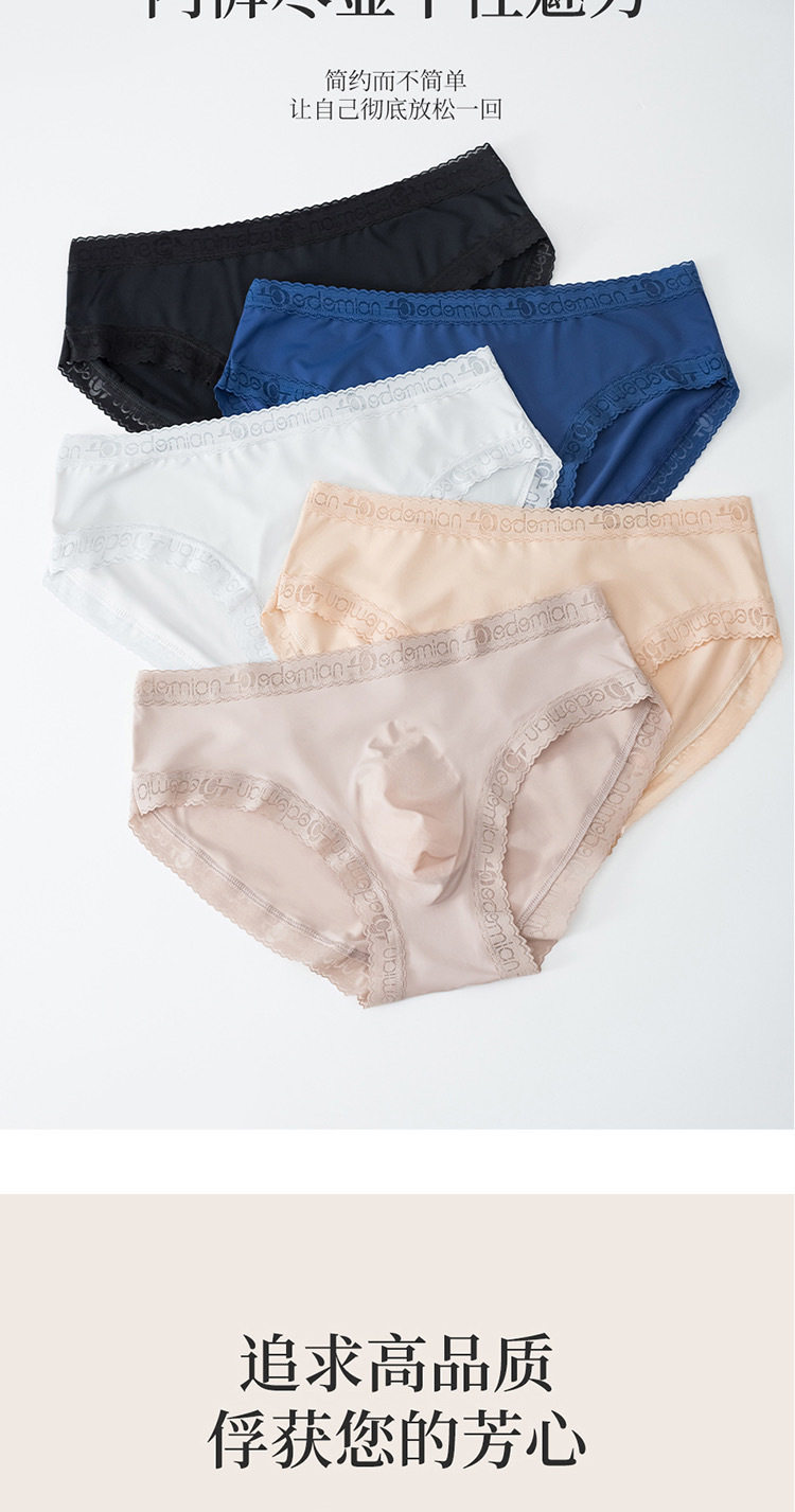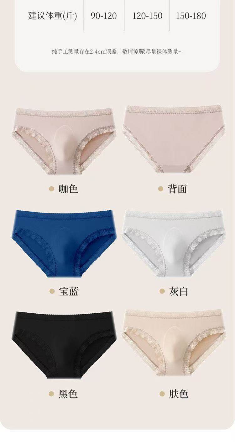 New Men's Underwear Ice Silk Sexy Soft Lace 3D Convex Bag Single Layer Translucent Briefs Wholesale
