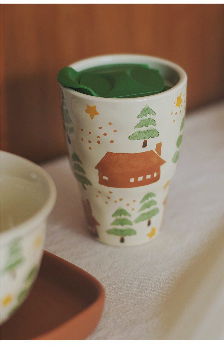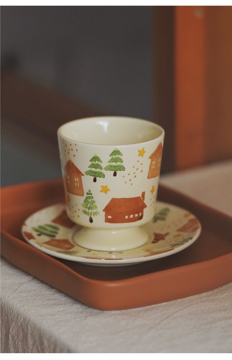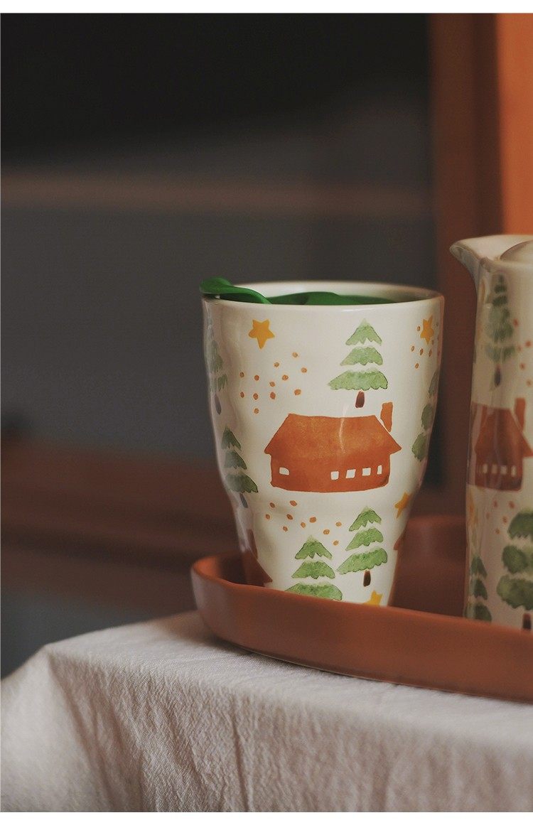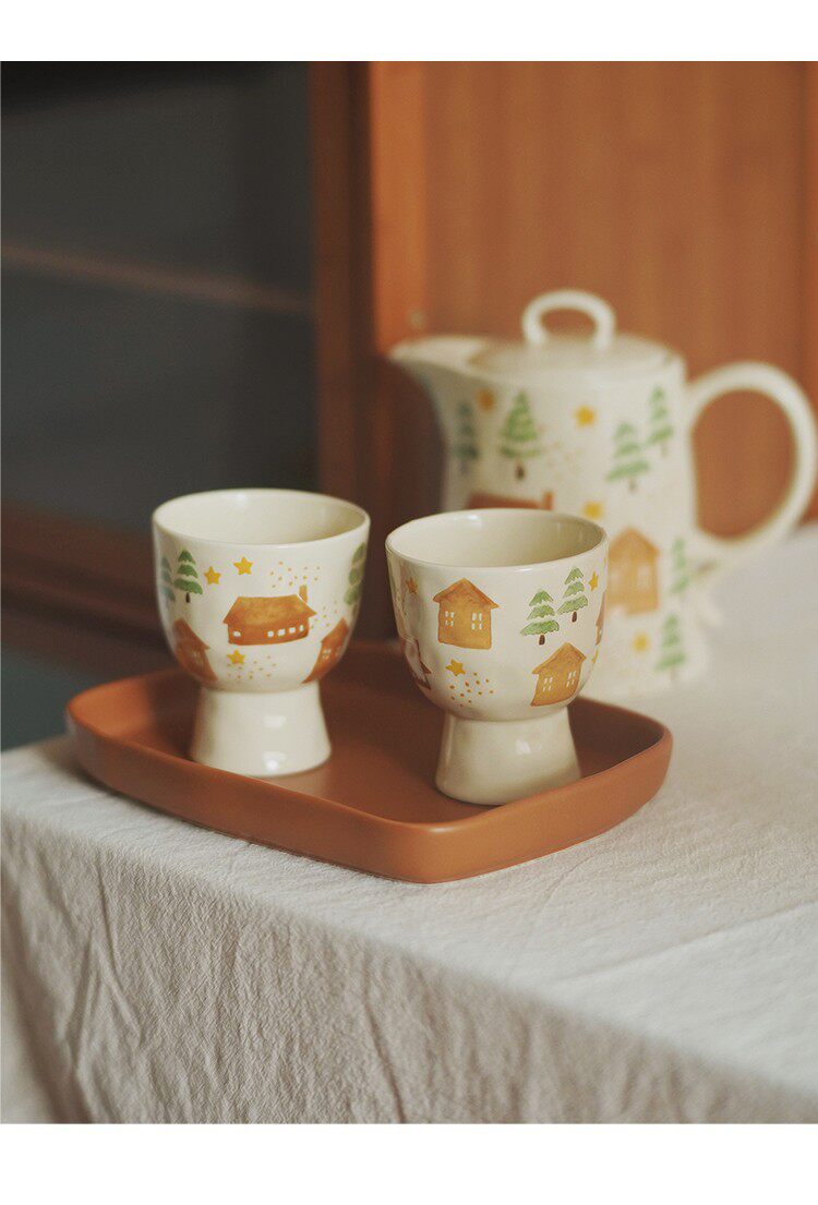 House and Tree Hand-Painted Ceramic Tableware Kettle Coffee Cup Set