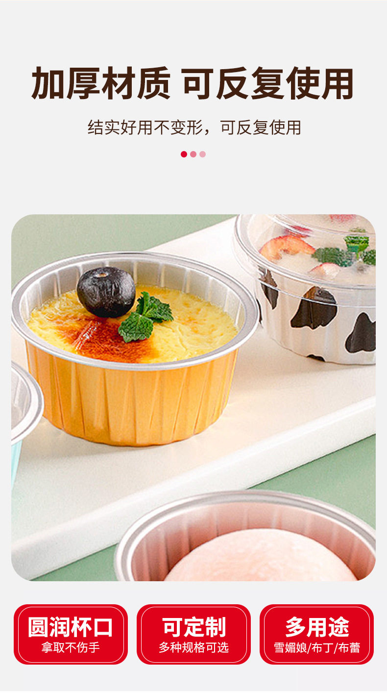 Tin Foil Cup Round Pudding Cup Baking Cup Baking Air Fryer Special Aluminum Foil Cup Mousse Cake Bowl Tin Foil Bowl