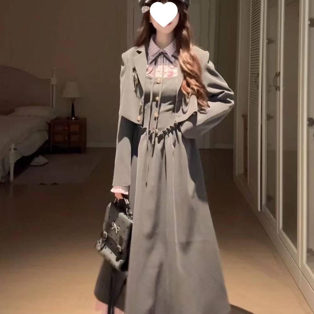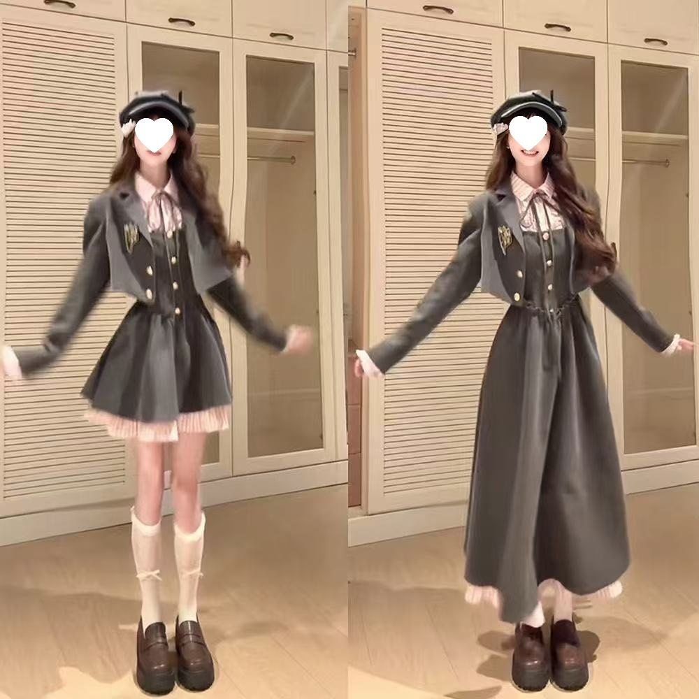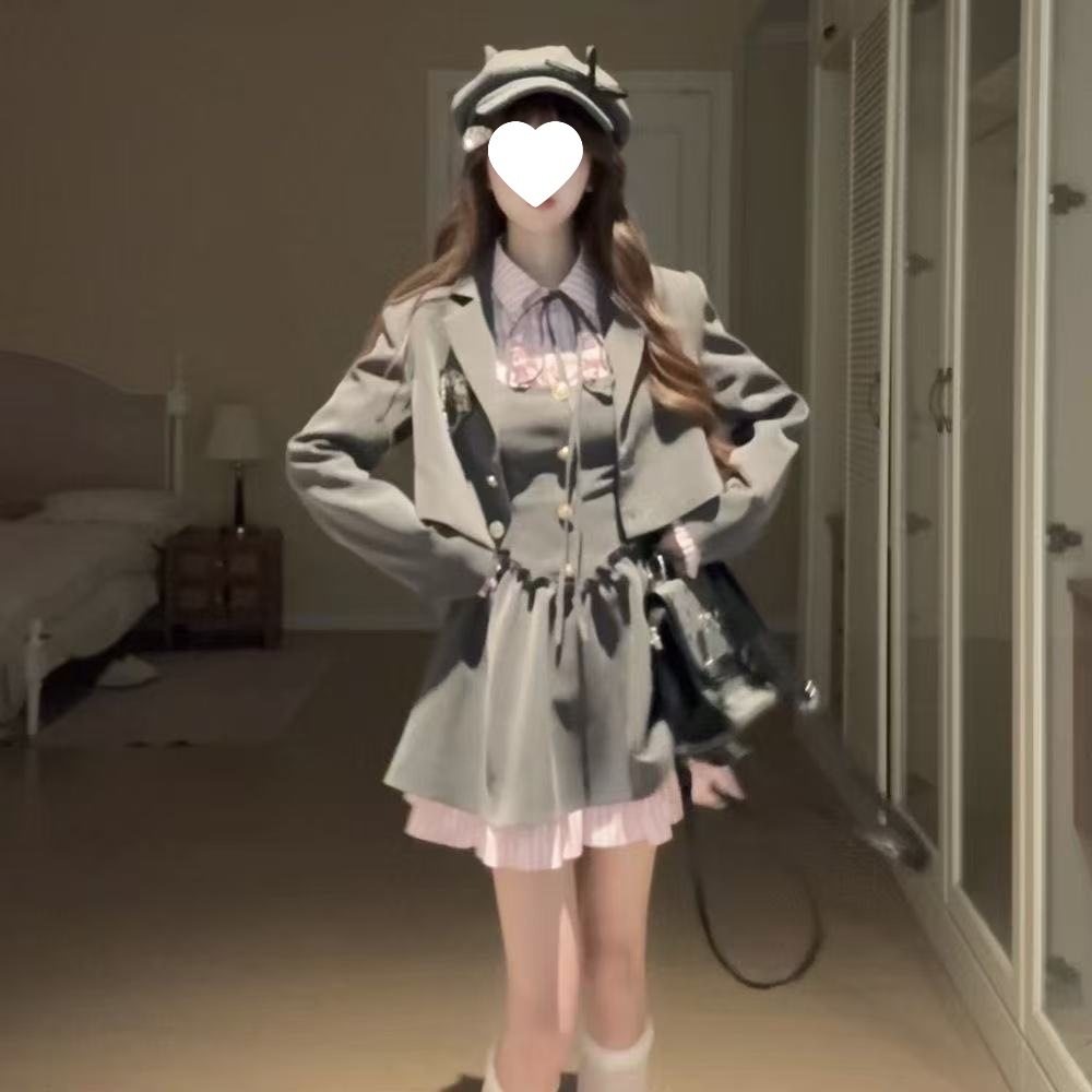 (High Quality) Watts College Jk Uniform Sweet Preppy Style Jacket Waist Dress Autum Two-Piece Set