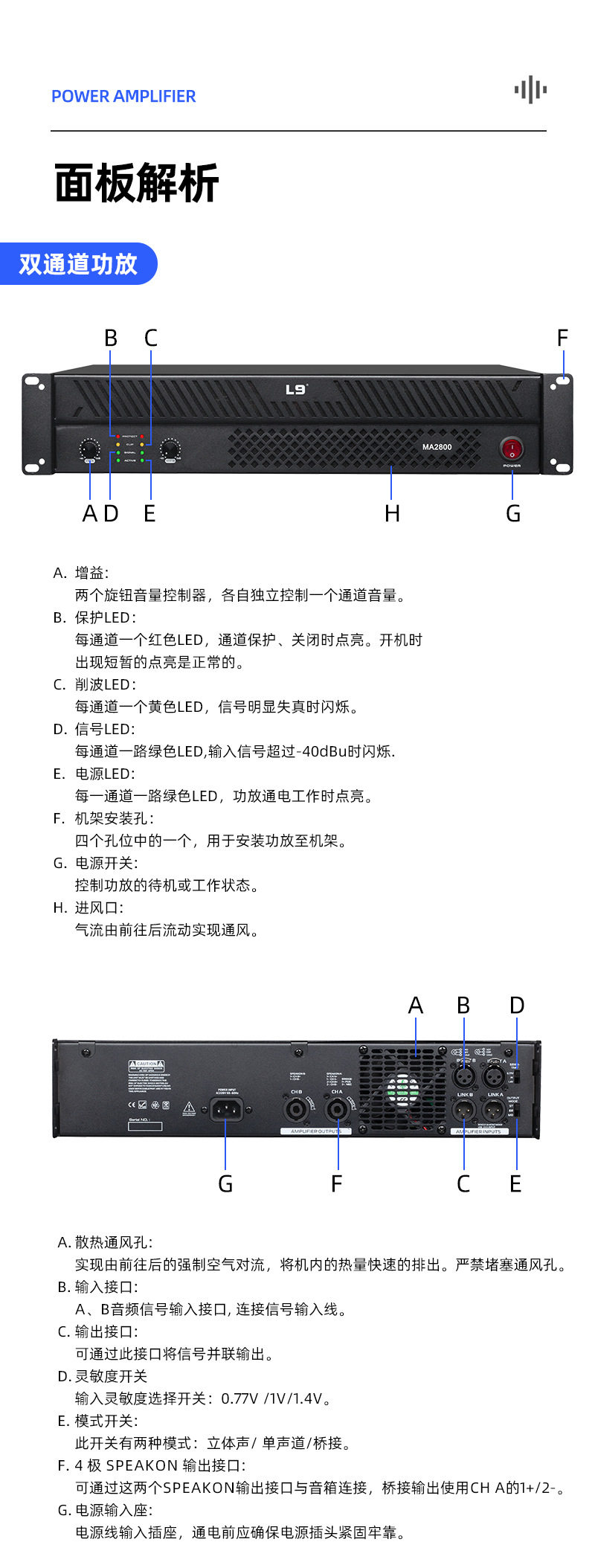 | Power amplifier type | Consult customer service |