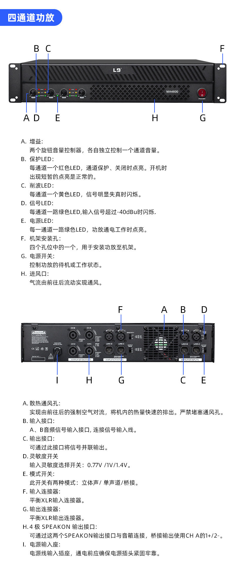 | Size | 482*332*88mm (2 channels), 482*378*88mm (4 channels) |