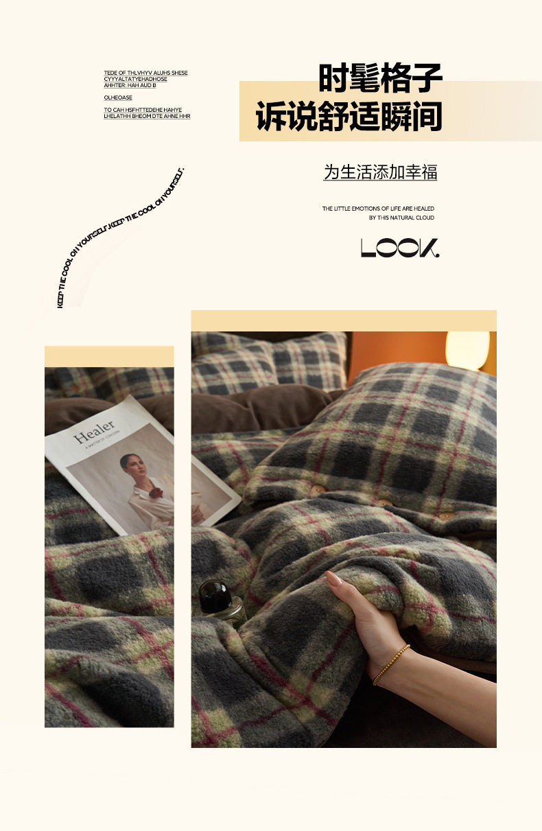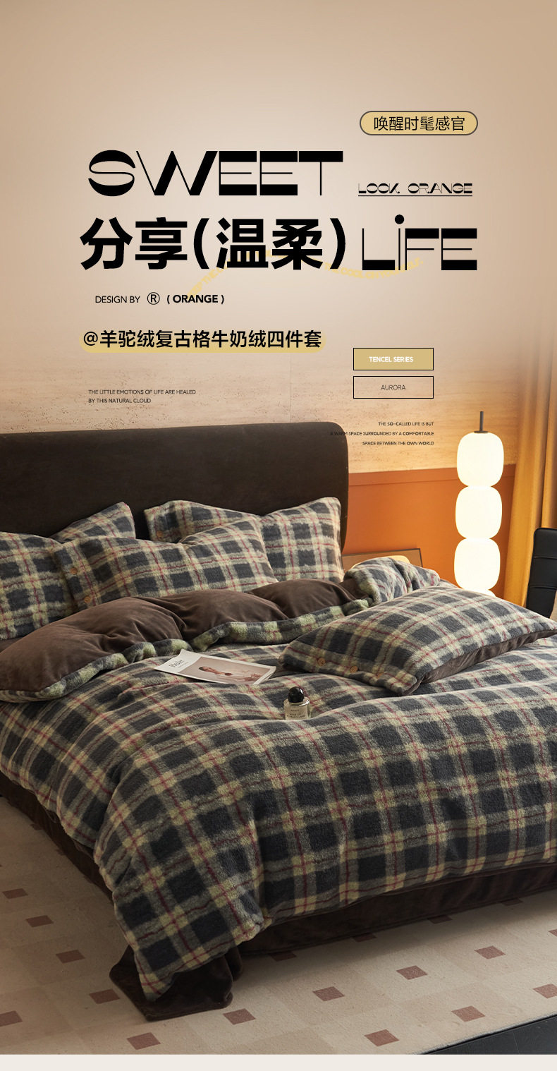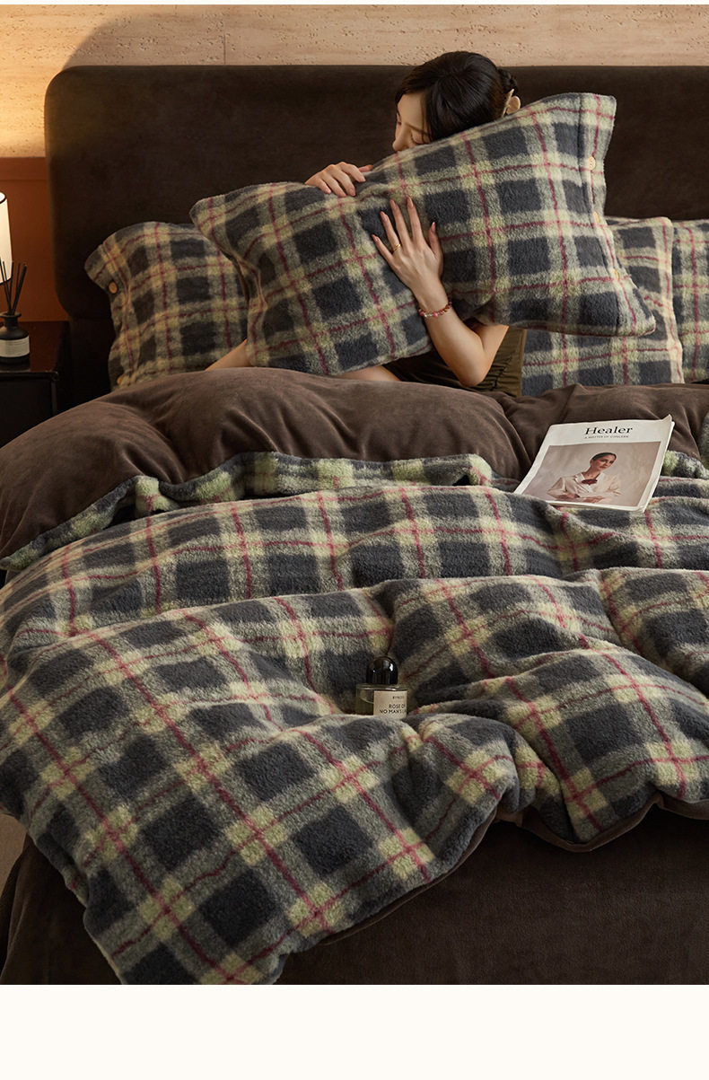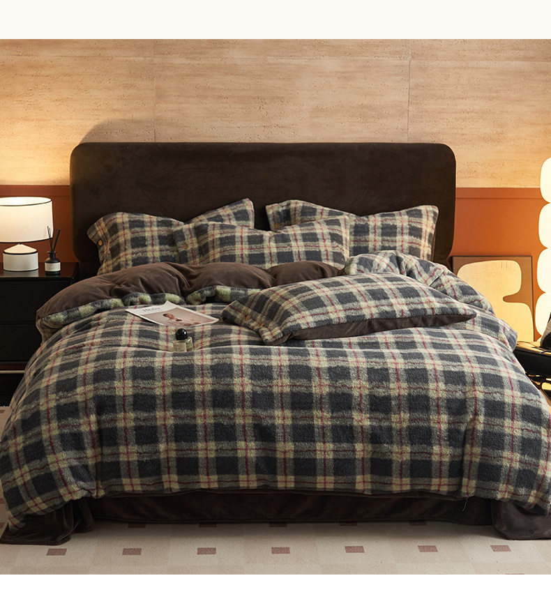 2025 New Winter Four-Piece Bed Set with High Weight, Thickeneded and Warm Retro Plaid Milk Velvet Bed Sheetss, Fitted Bed Sheetss and Quilt Covers