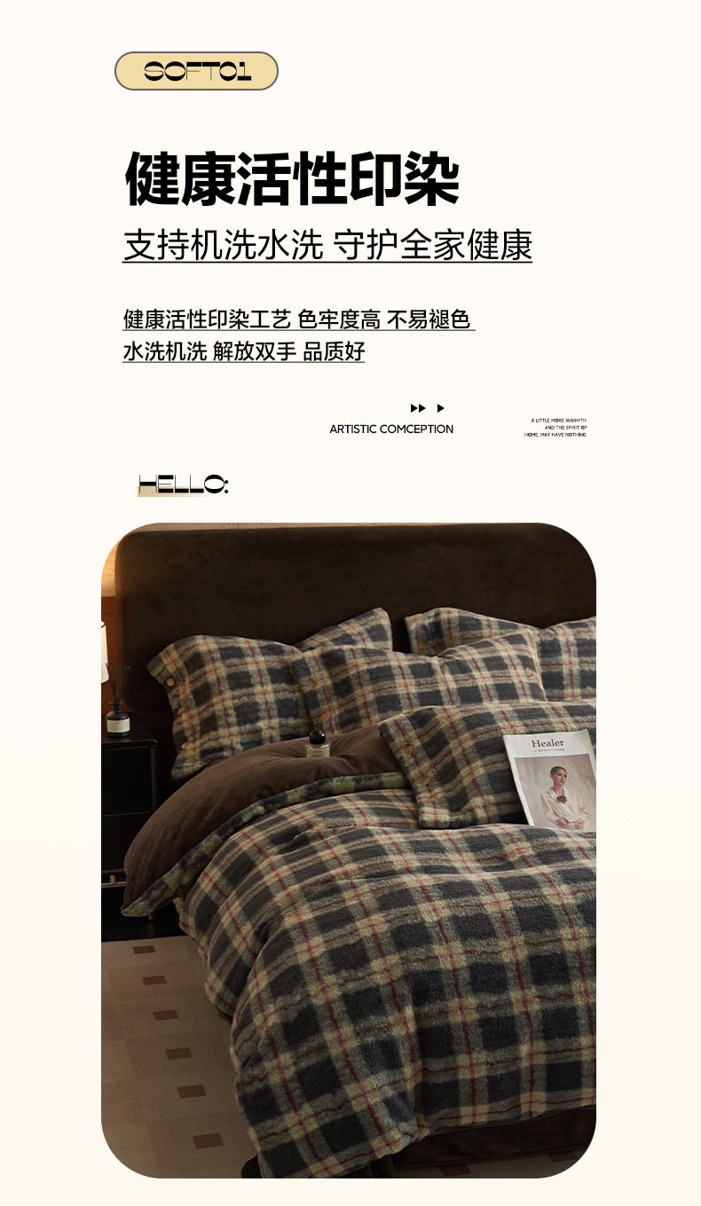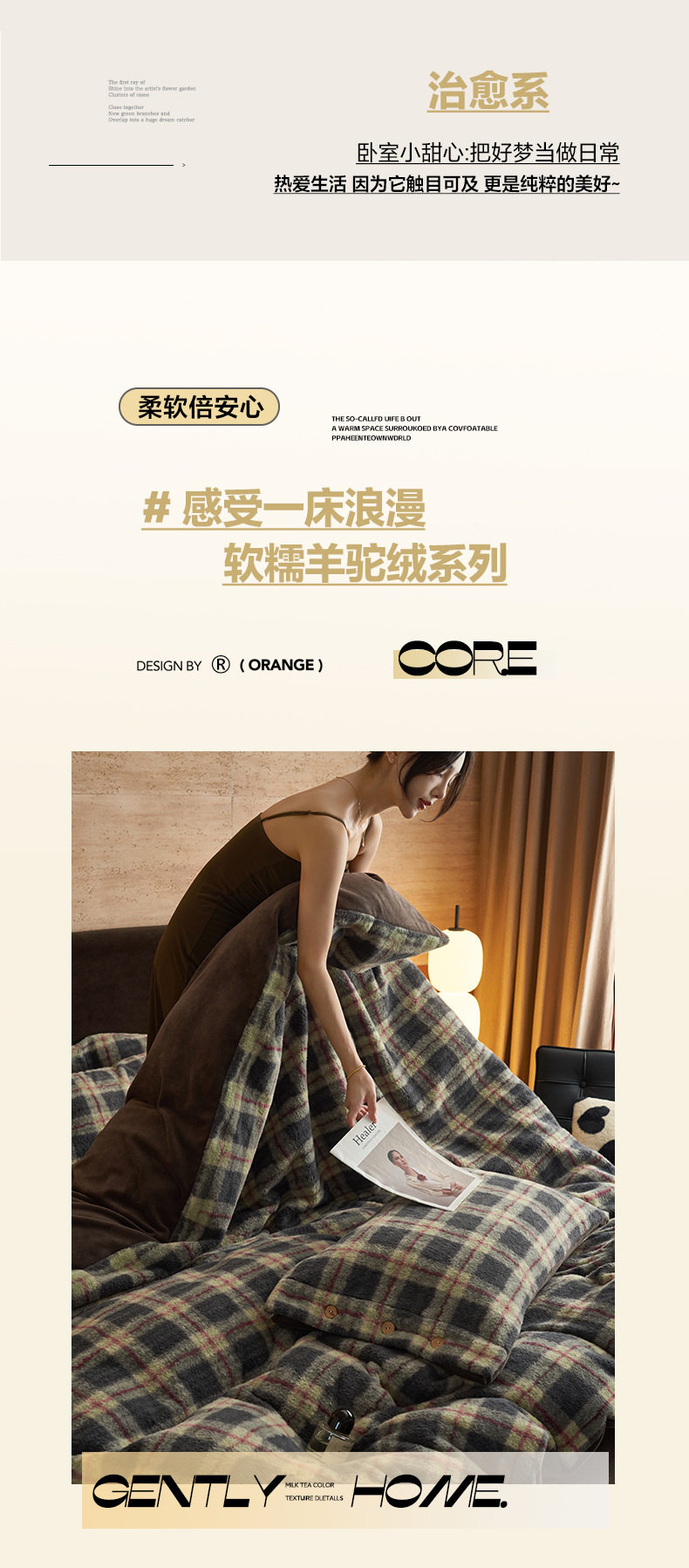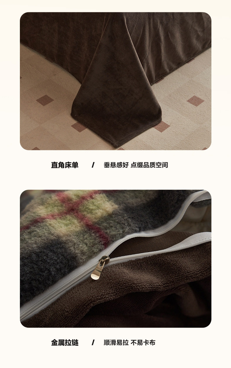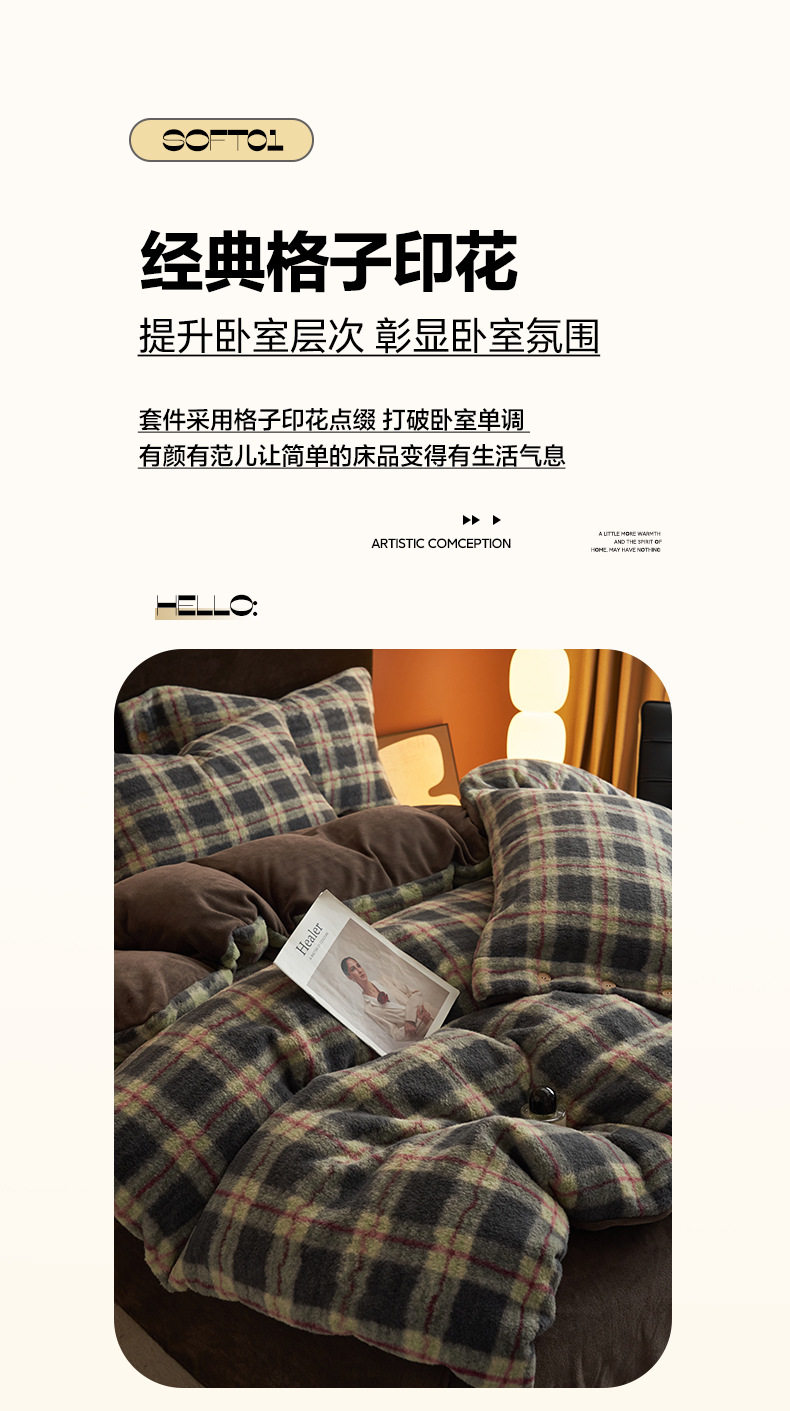 2025 New Winter Four-Piece Bed Set with High Weight, Thickeneded and Warm Retro Plaid Milk Velvet Bed Sheetss, Fitted Bed Sheetss and Quilt Covers