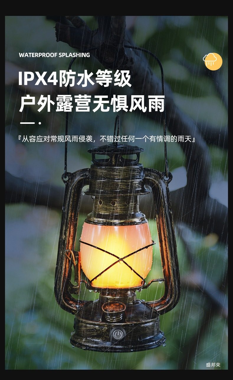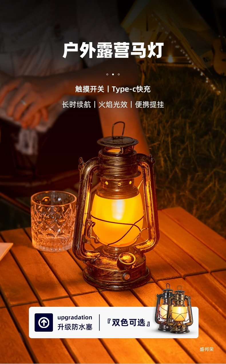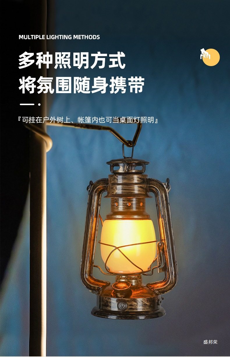 Camping lamp, camping lamp, retro horse lantern, atmosphere lamp, portable lamp, tent lamp, rechargeable kerosene lamp, solar outdoor lamp