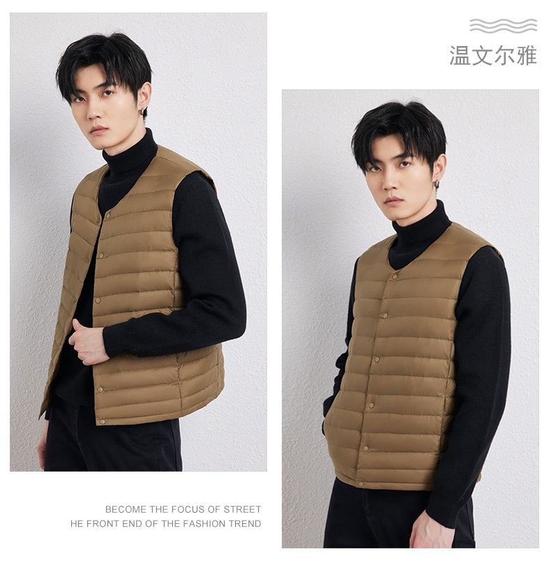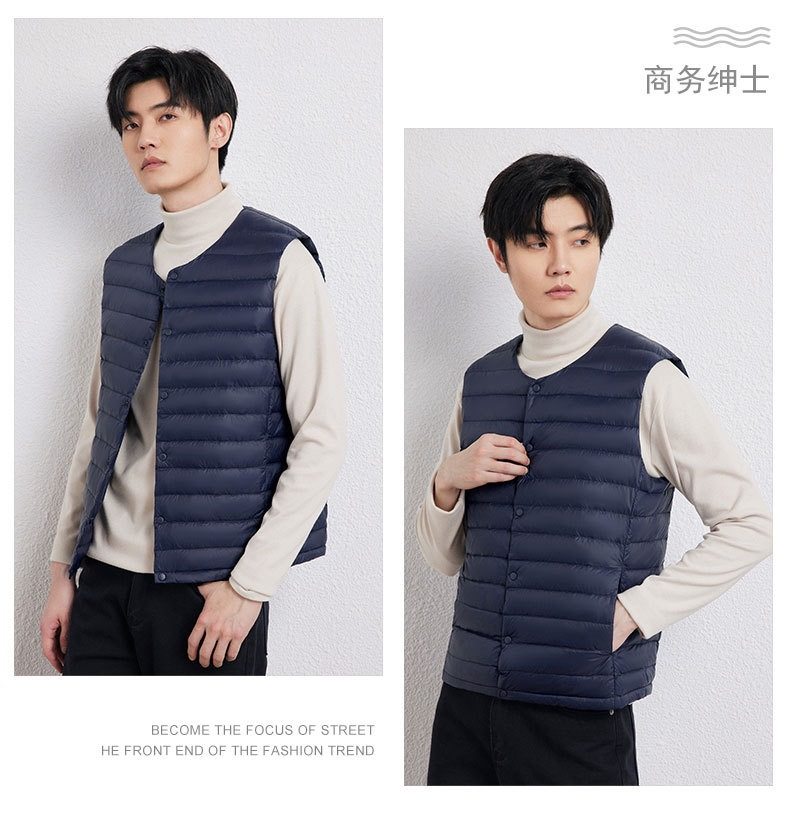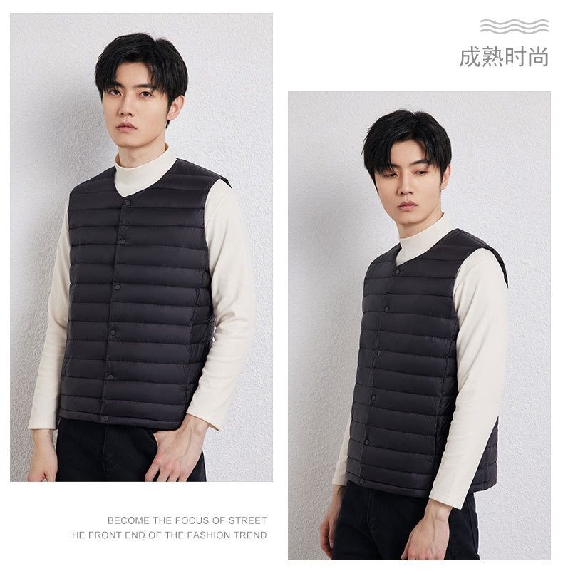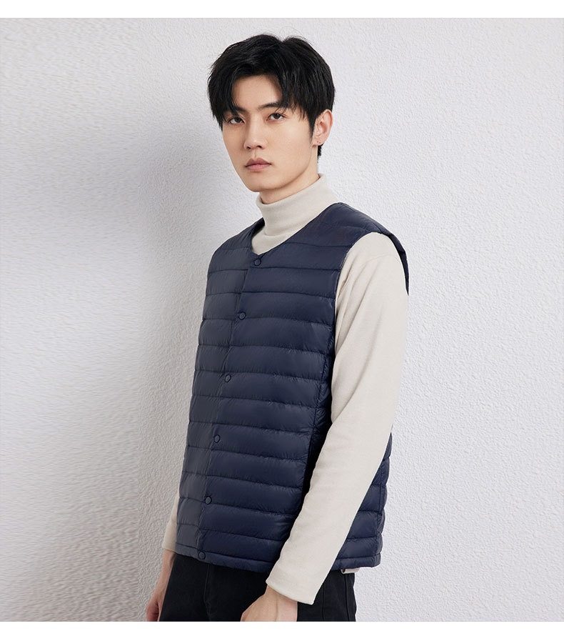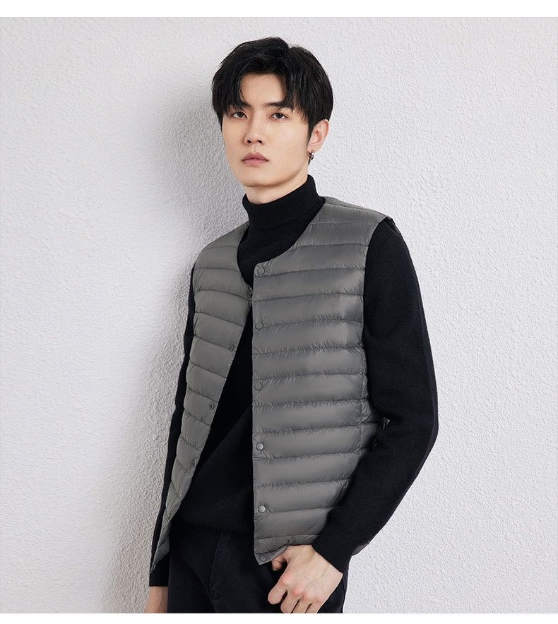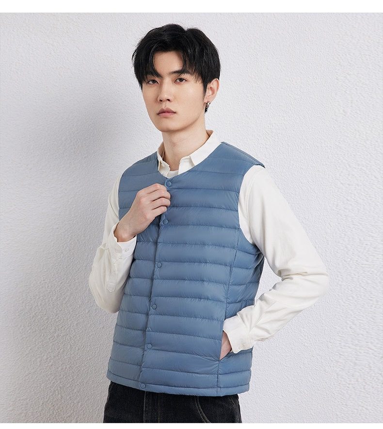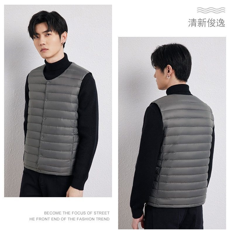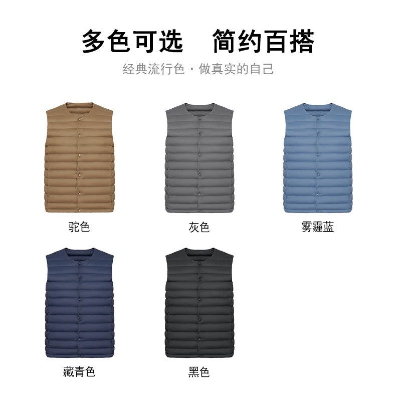 2025 Autumn/Winter New Men's Collarless Lightweight down Vest Gilet Inner Jacket Wholesale Pinghu