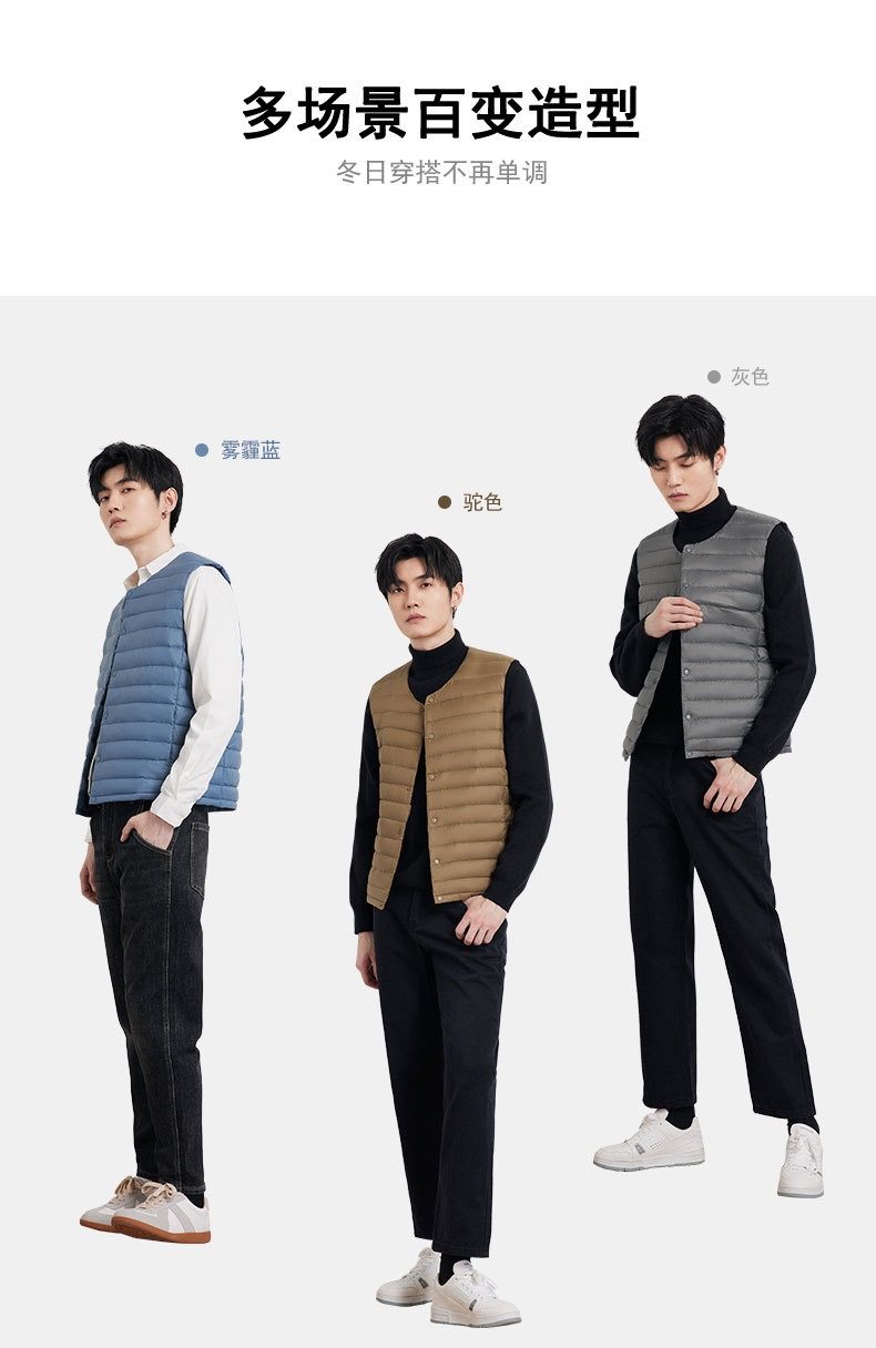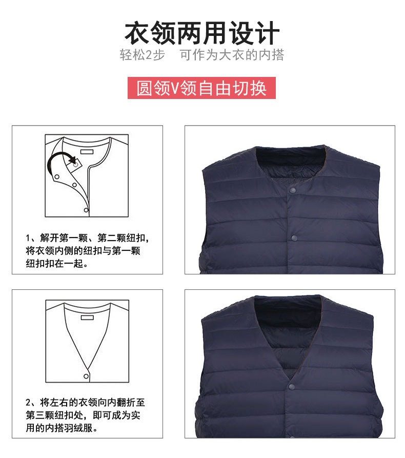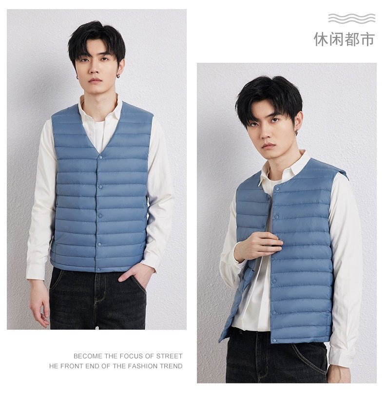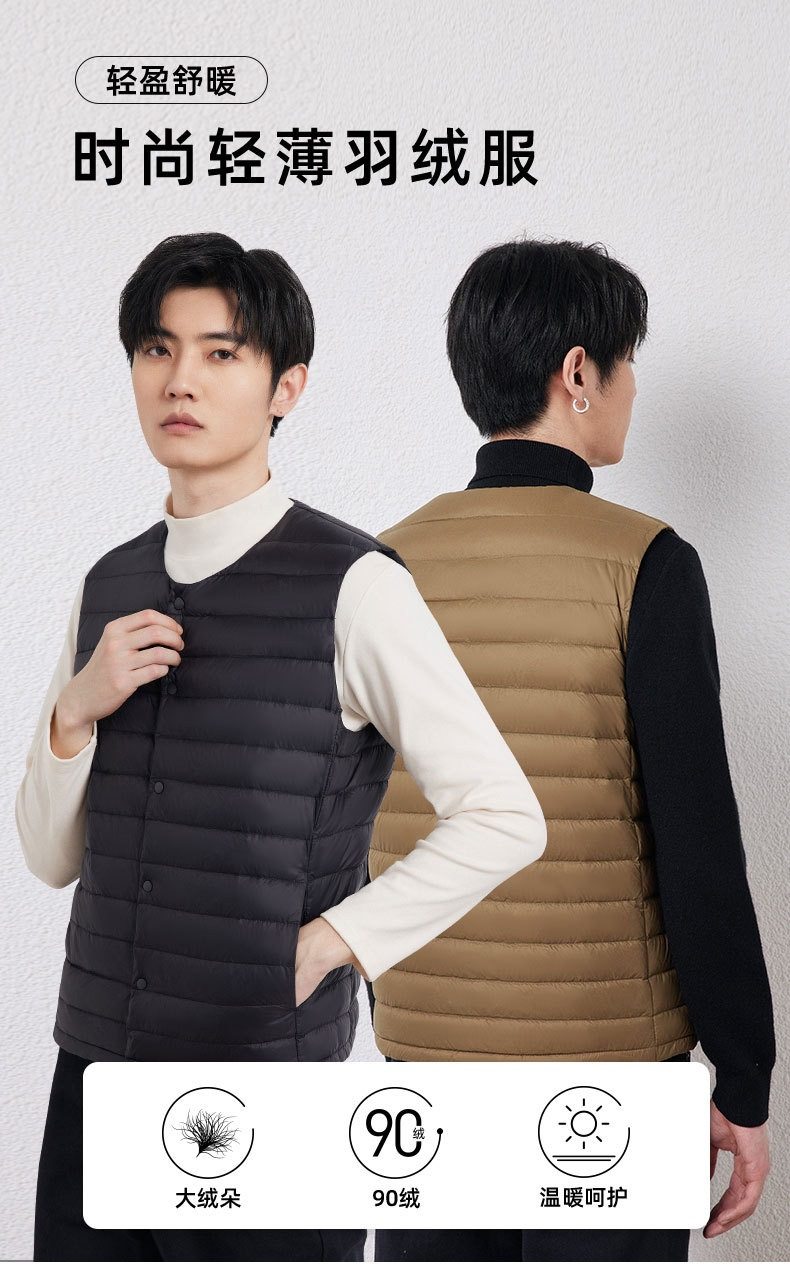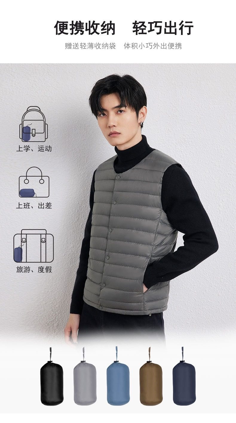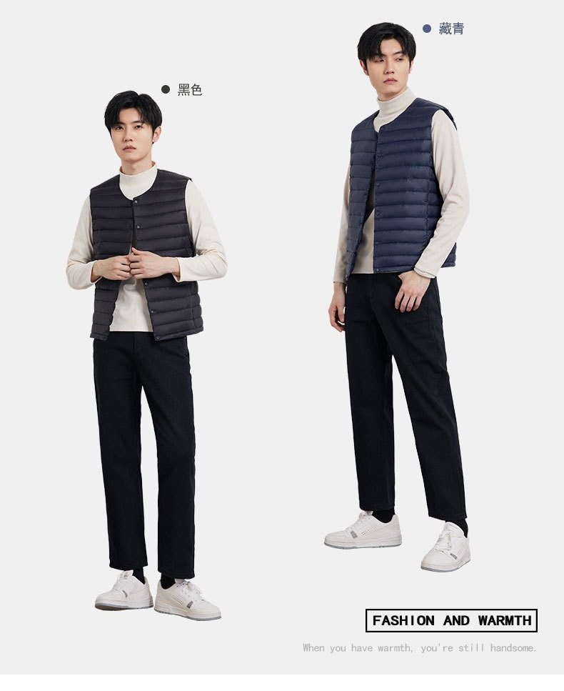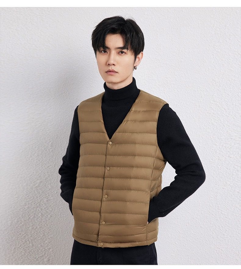2025 Autumn/Winter New Men's Collarless Lightweight down Vest Gilet Inner Jacket Wholesale Pinghu