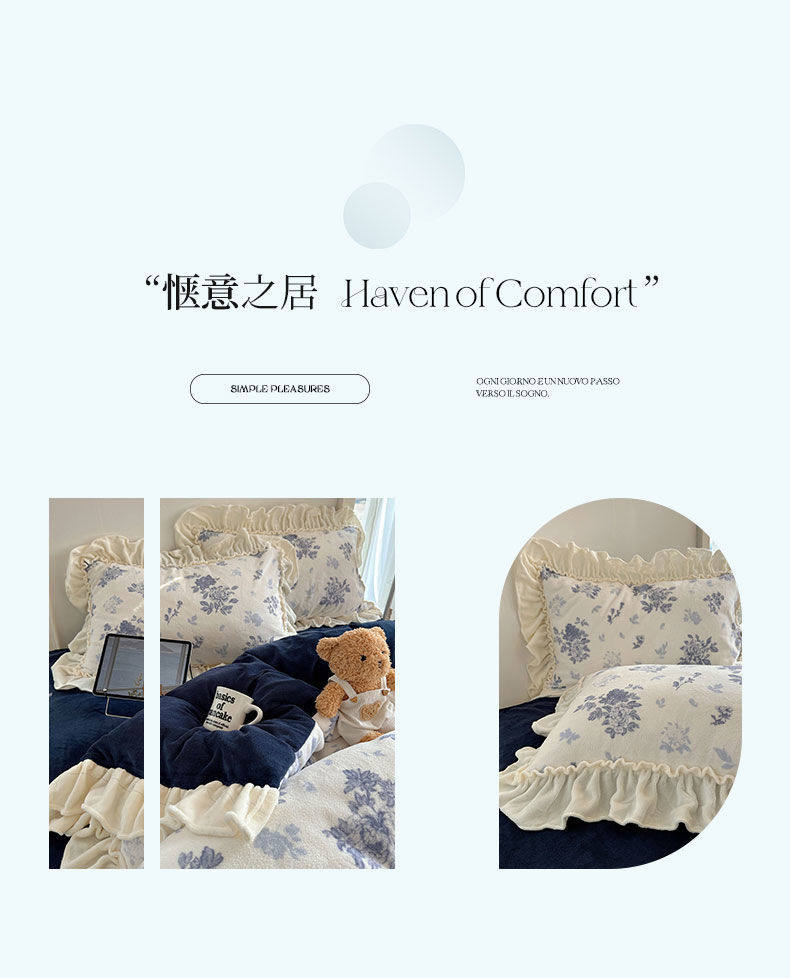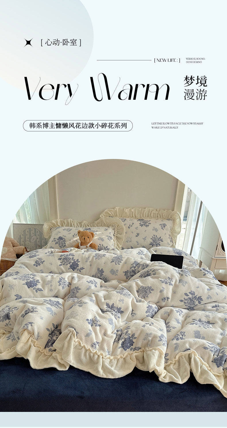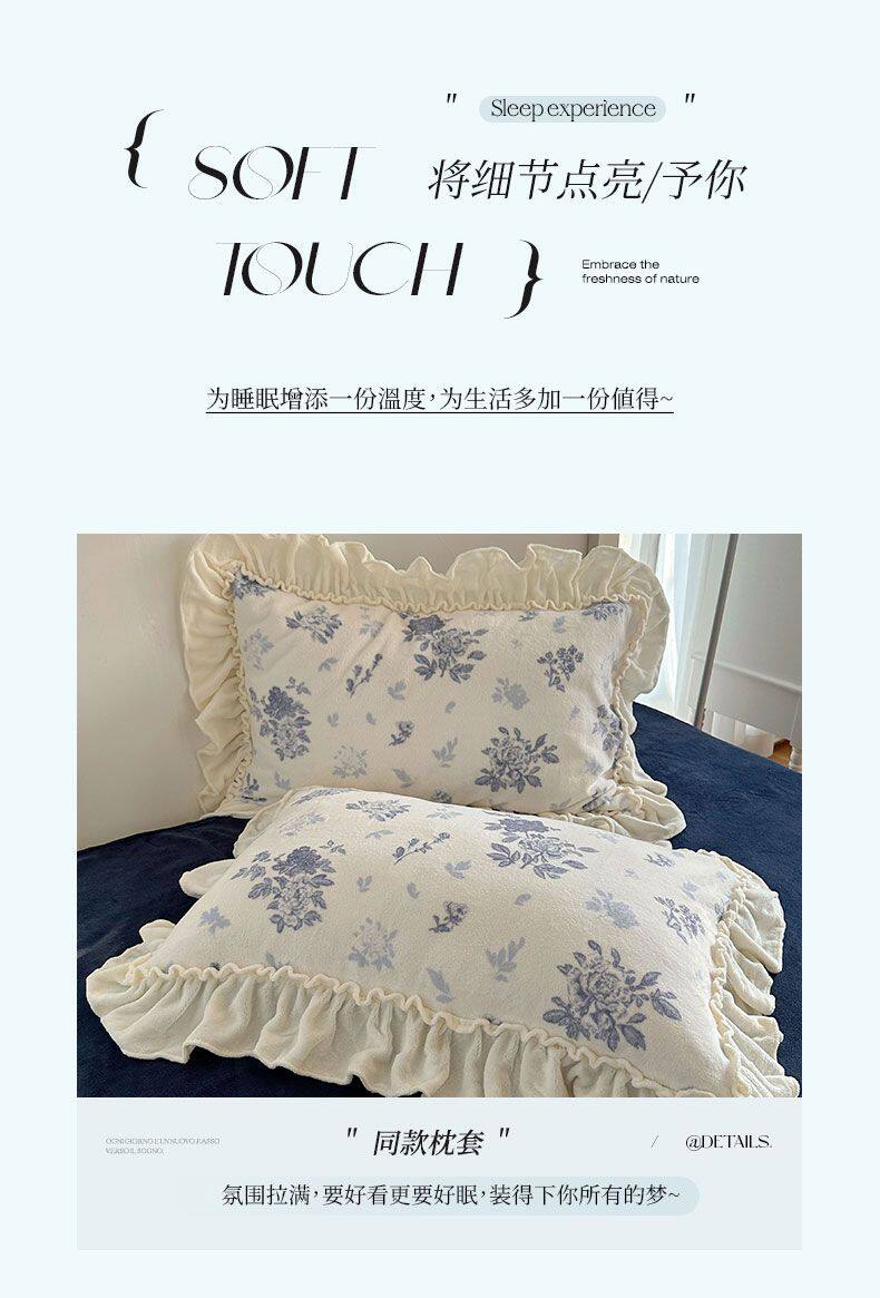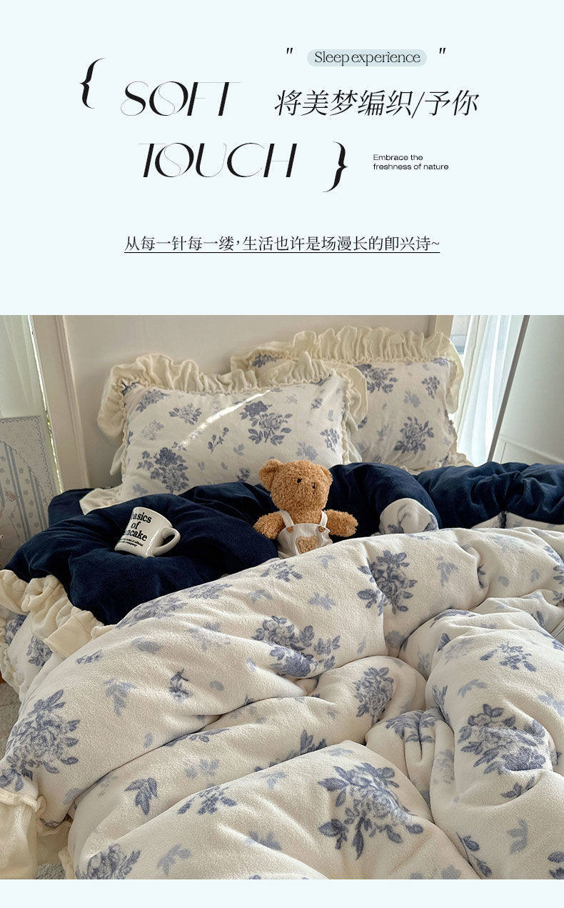 Korean Floral Lace Milk Velvet Four-Piece Winter Thickeneded Coral Velvet Quilt Cover Bed Sheets Flannel Three-Piece Set