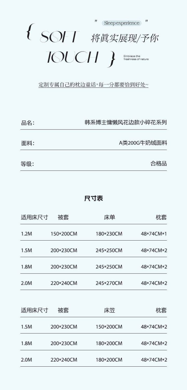 | Flower type | [sheet style] 0.9 three-piece set - quilt cover 150x200,[sheet style] 1.2 three-piece set - quilt cover 150x200,【bed sheet style】1.5m four-piece bedding set - duvet cover 200x230 cm,[sheet style] 1.8 four-piece set - quilt cover 200x230,[sheet style] 2.0 four-piece set - quilt cover 220x240,【fitted sheet style】1.5m four-piece bedding set - duvet cover 200x230 cm,【fitted sheet style】1.8m four-piece bedding set - duvet cover 200x230 cm |