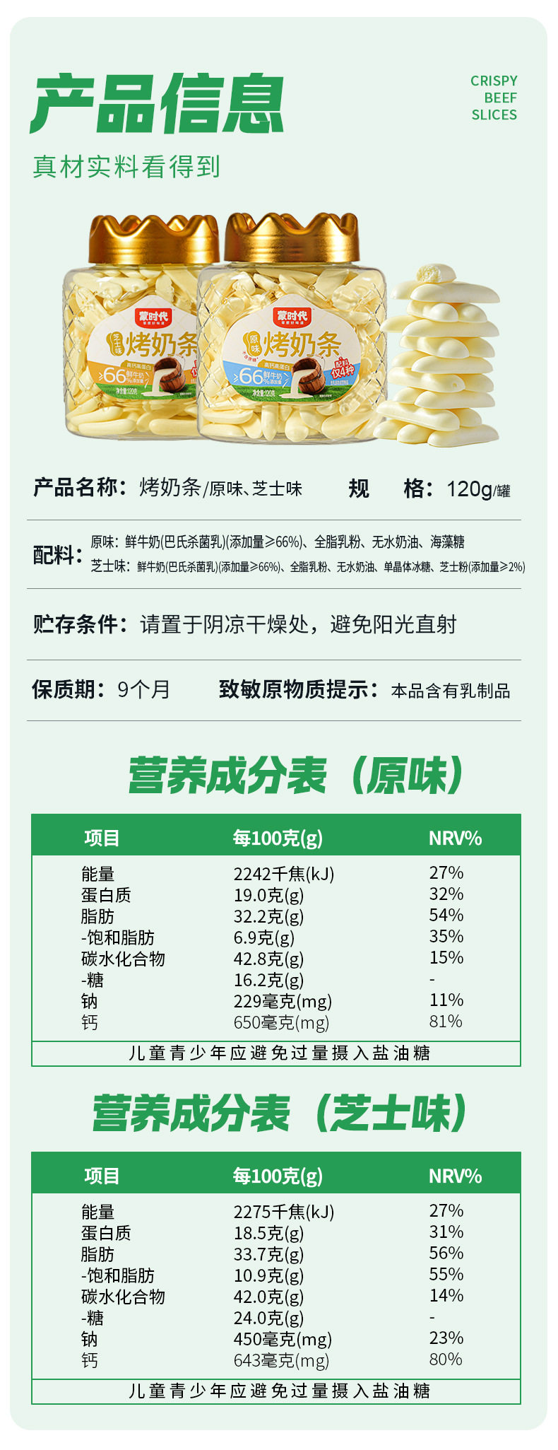 | Raw materials and ingredients | Fresh milk (pasteurized milk), whole milk powder, anhydrous butter |