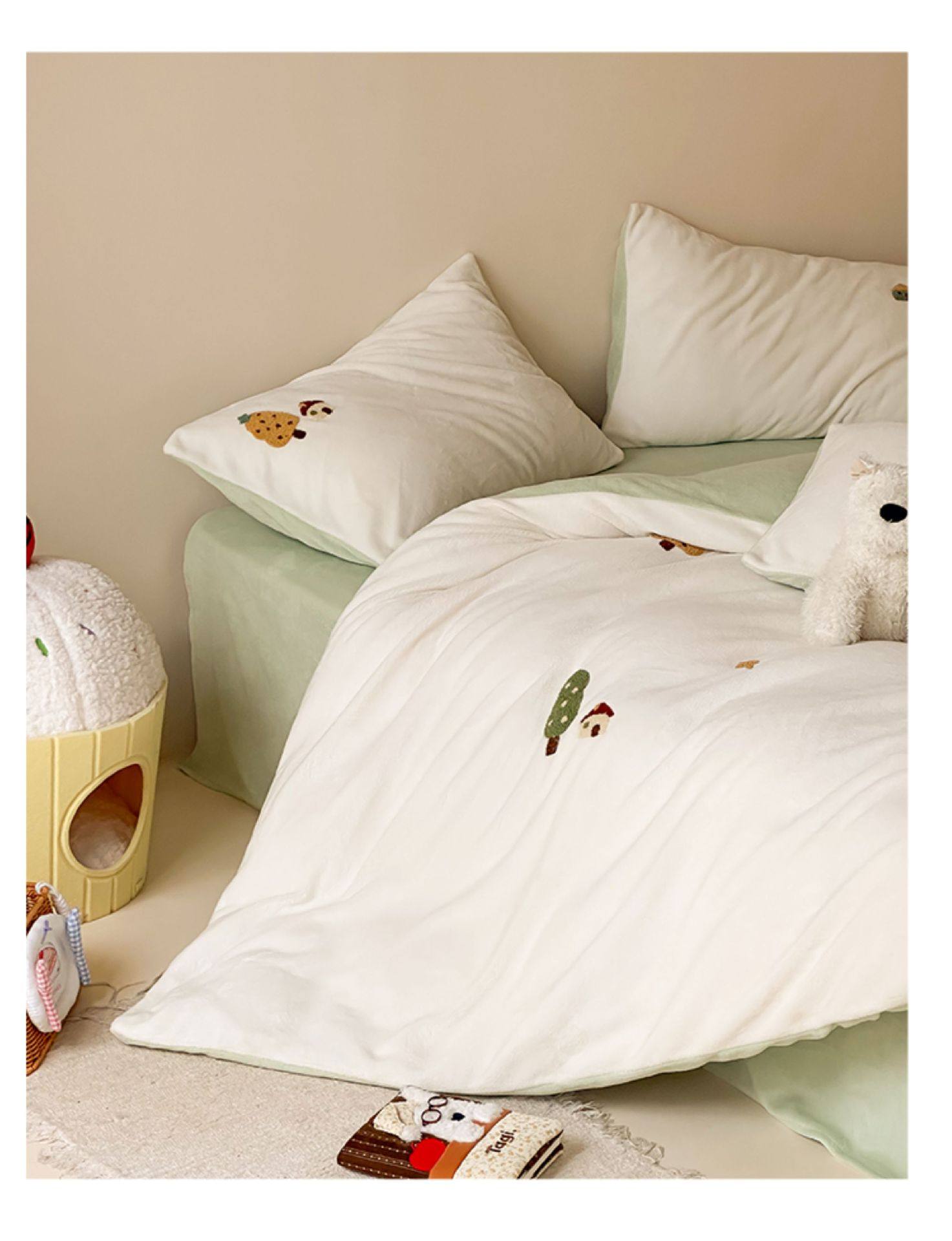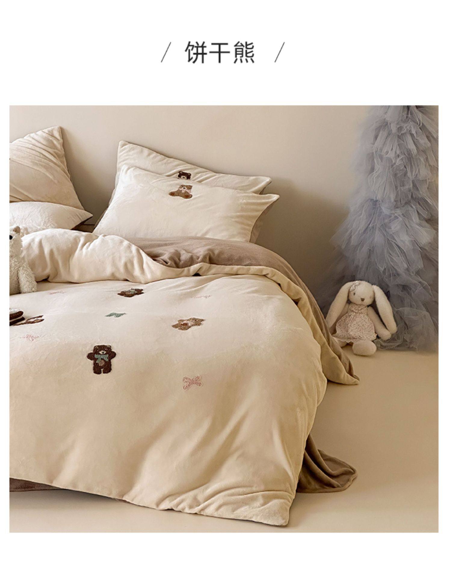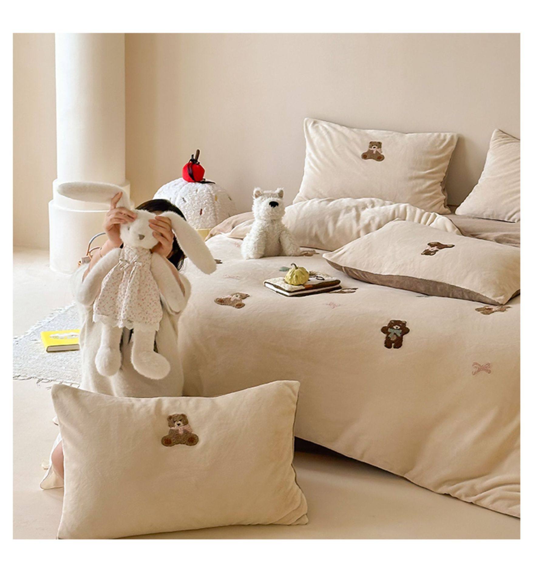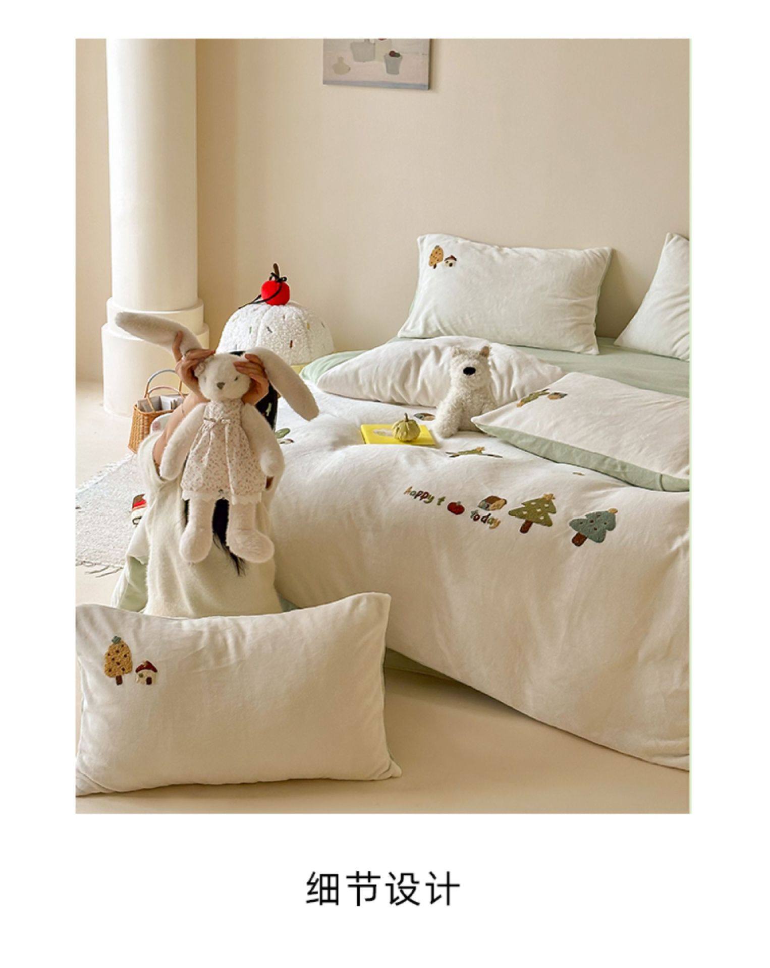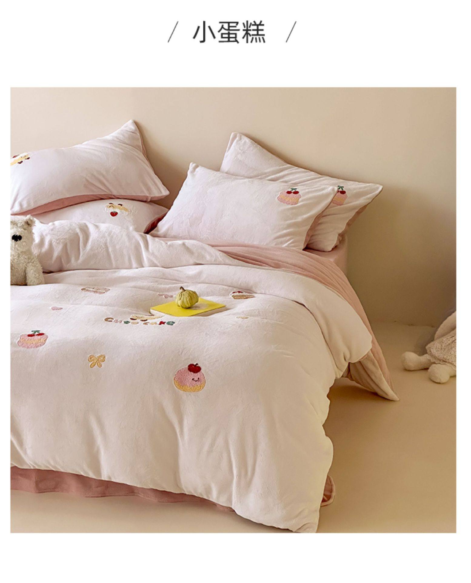 High Weight Milk Velvet Cartoon Towel Embroidered Four-Piece Set Double-Sided Velvet Anti-Static Coral Velvet Quilt Cover Kidsren's Three-Piece Set